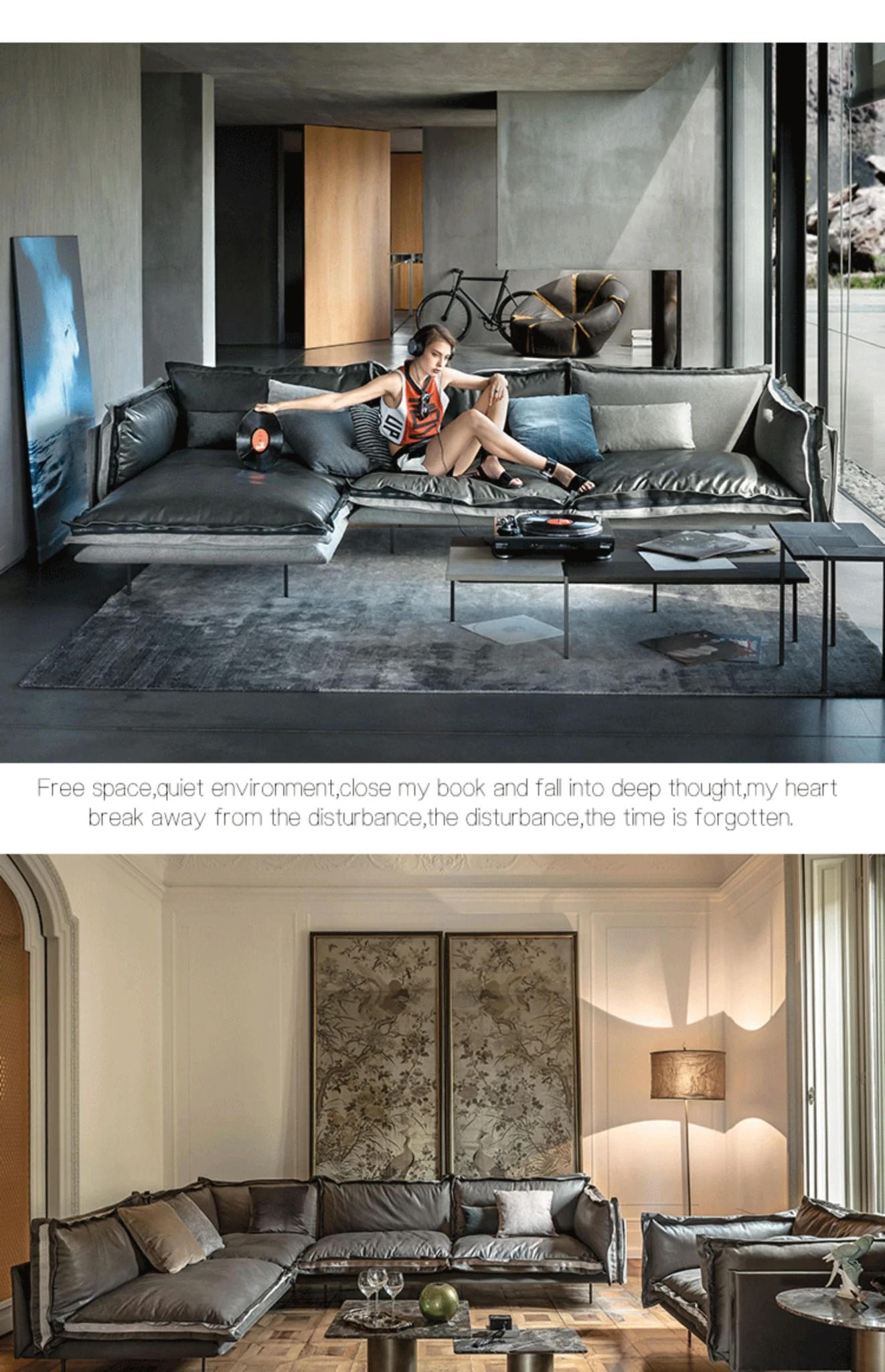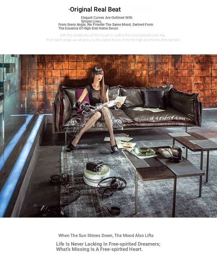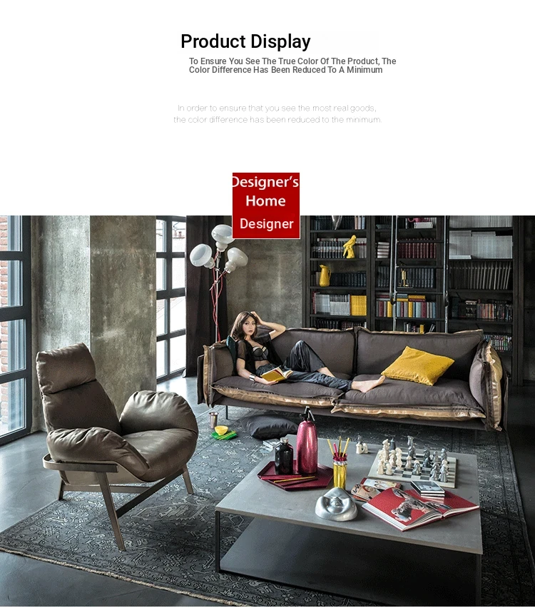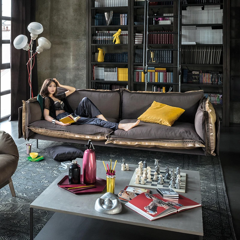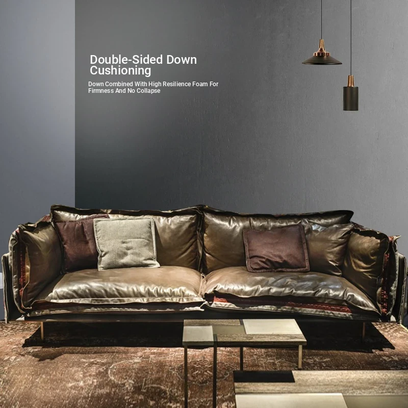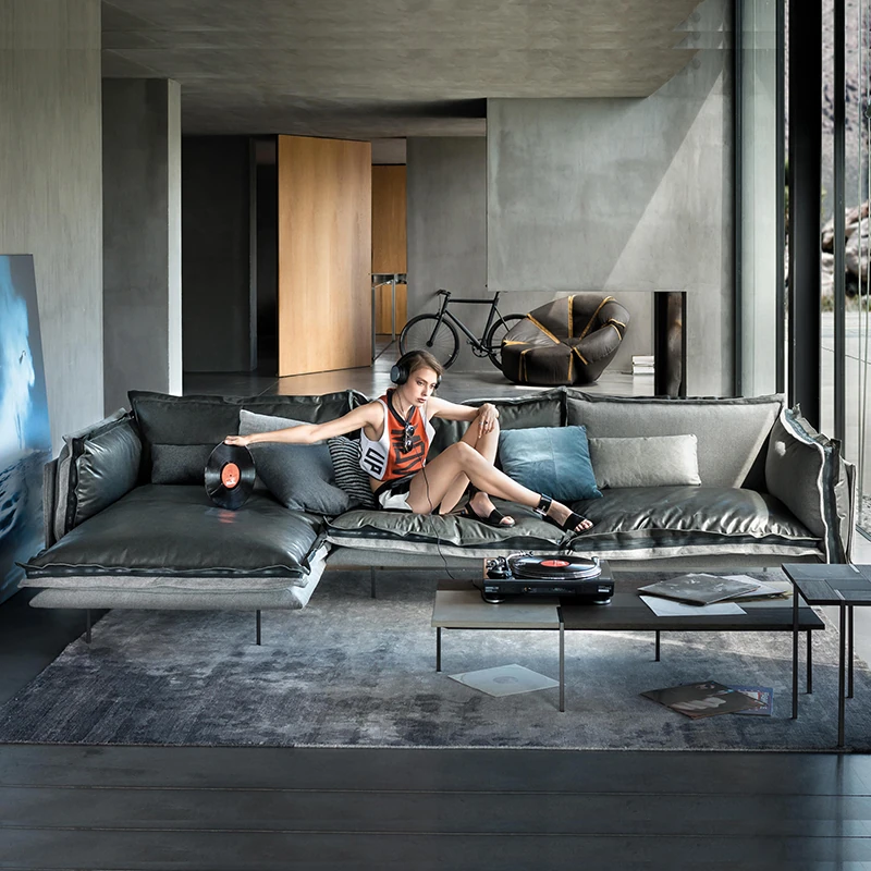 Nordic Style Double Three-Seat Sofa with Fabric and Leather Corner Combination for Sample Room - Industrial Chic Italian Luxury with Top-Grade Cowhide for Your Living Room