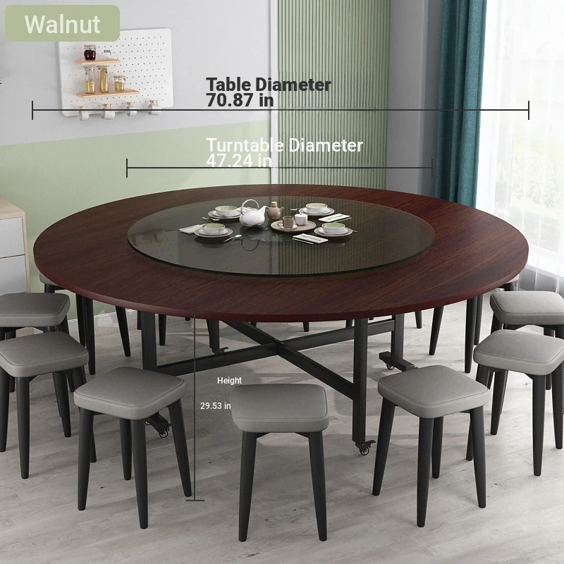 70.87 in Black Walnut +47.24 in tempered glass turntable +12 square stool