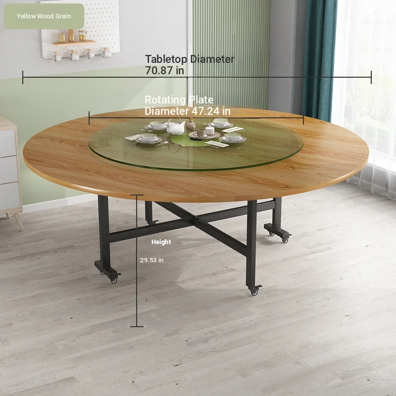 70.87 in yellow wood grain +47.24 in tempered glass turntable