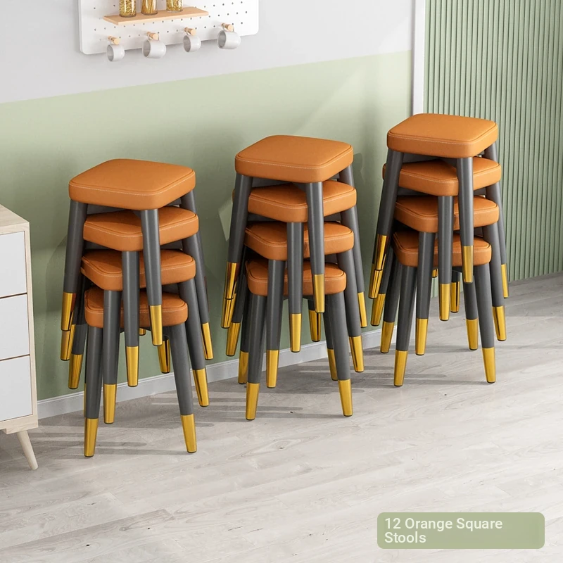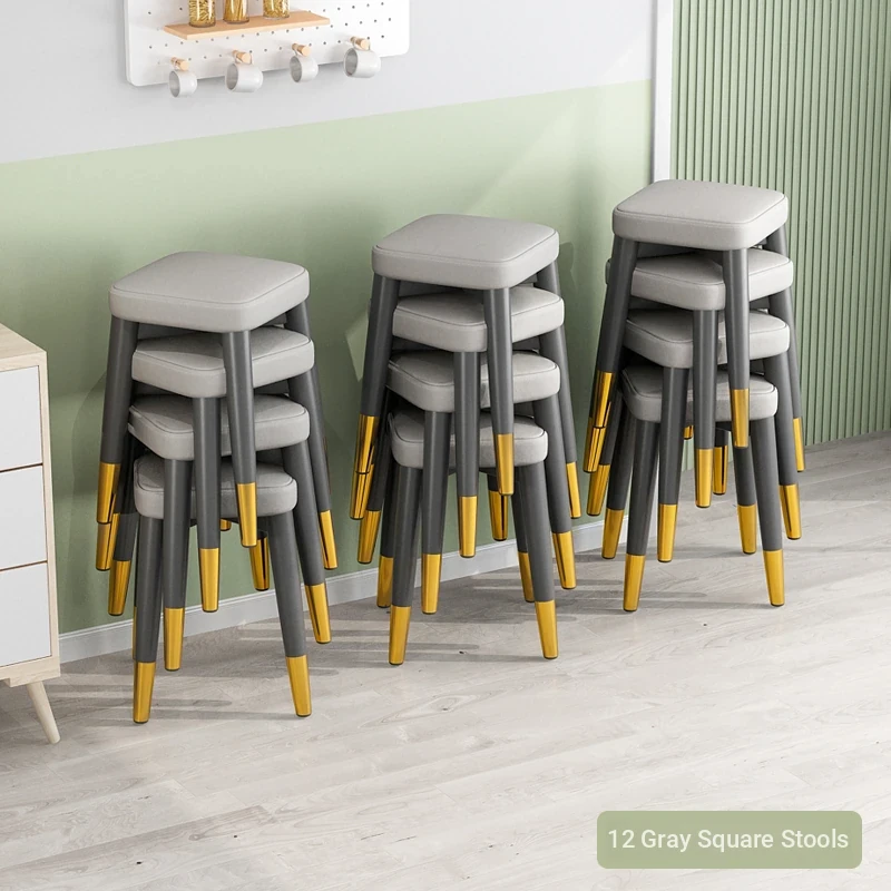 12 square stool-Gray technology cloth stool surface-black gold legs