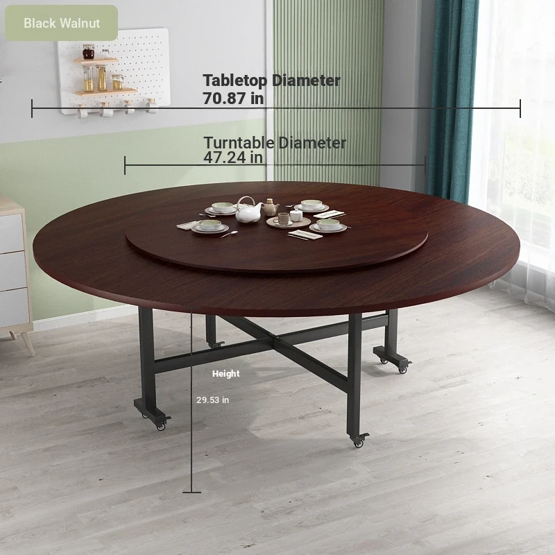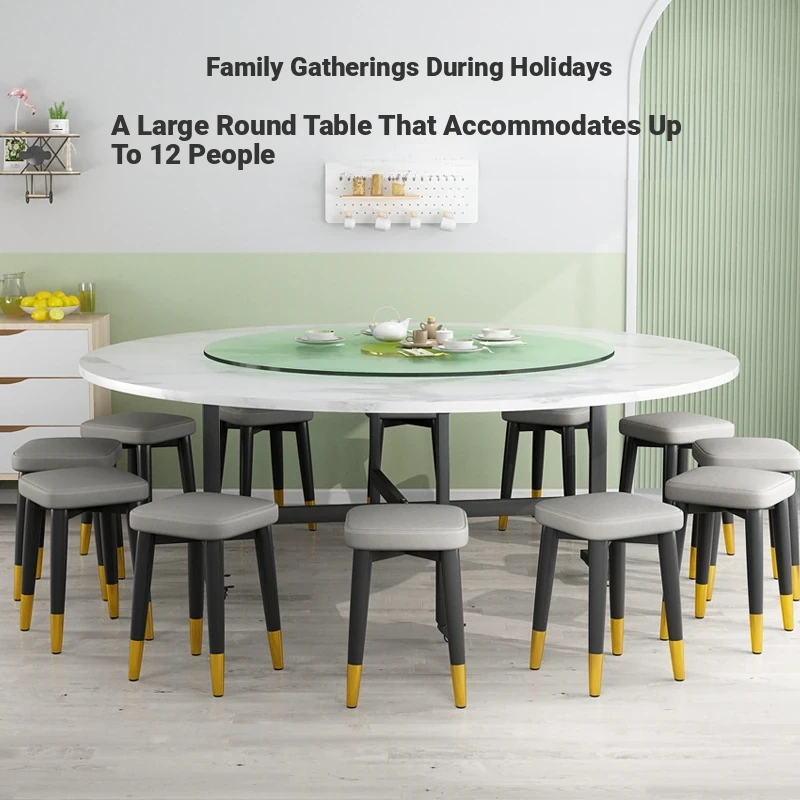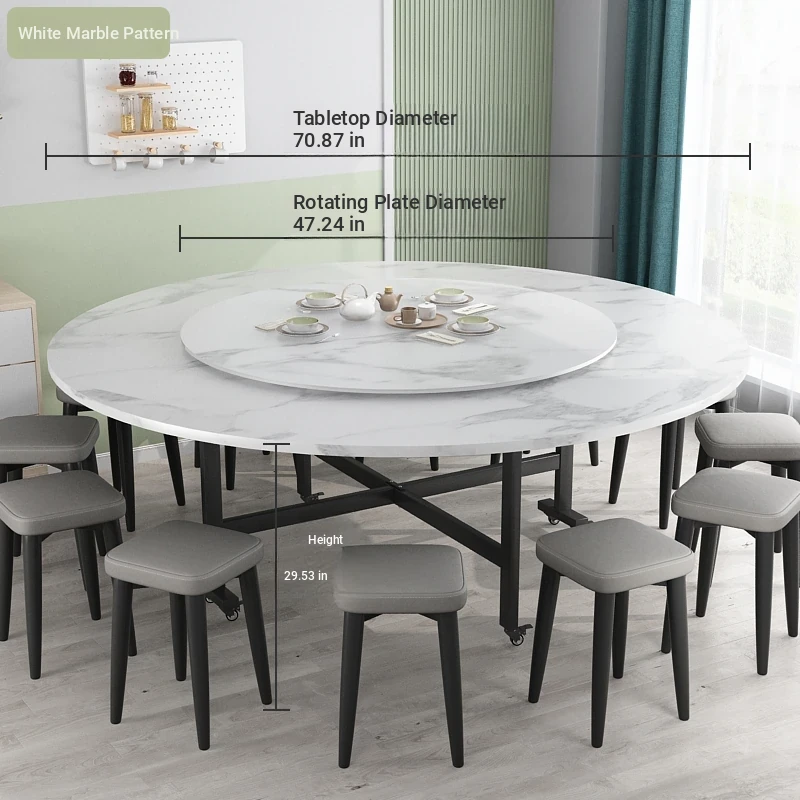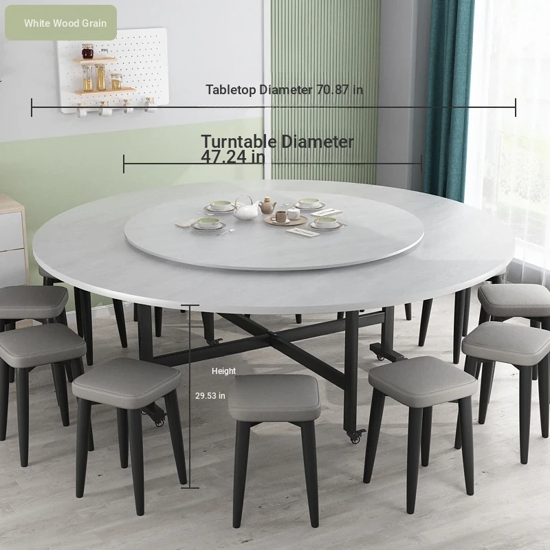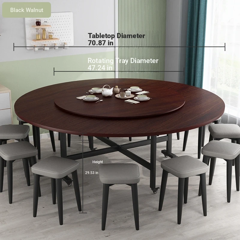 Space-Saving Foldable Round Dining Table with Rotating Tray - Perfect for Family Gatherings, Seats Up to 12 People, Ideal for Small Homes