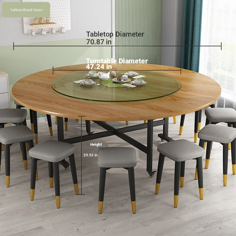 70.87 in yellow wood grain +47.24 in tempered glass turntable +12 square stool