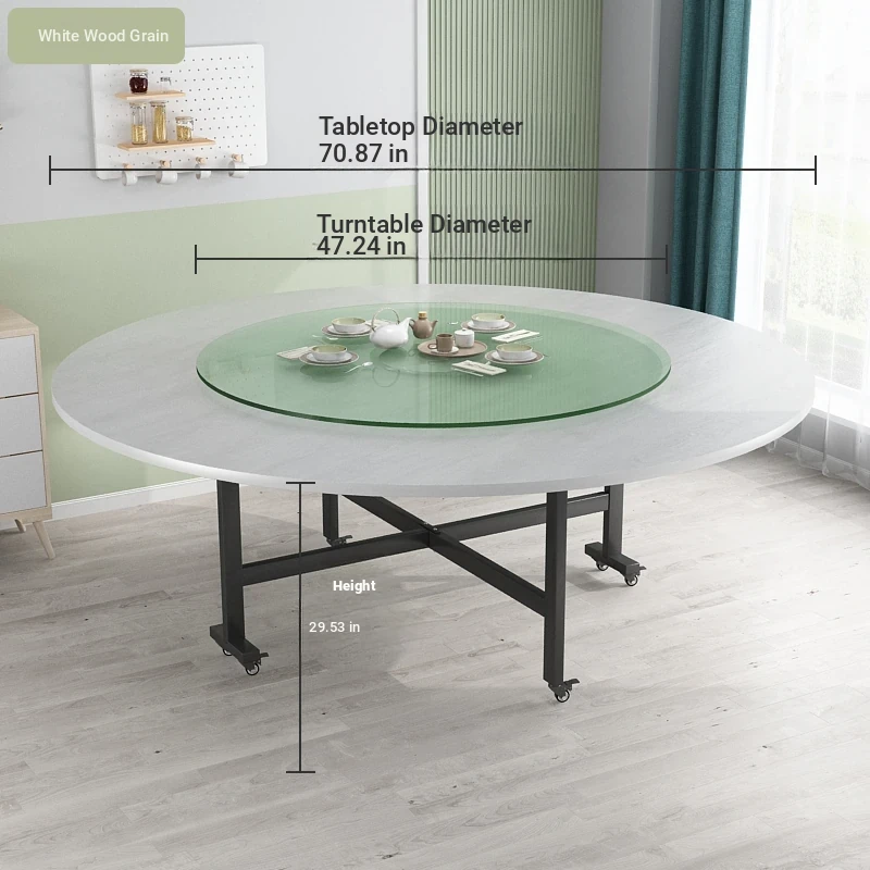 70.87 in white wood grain +47.24 in tempered glass turntable +12 square stool (