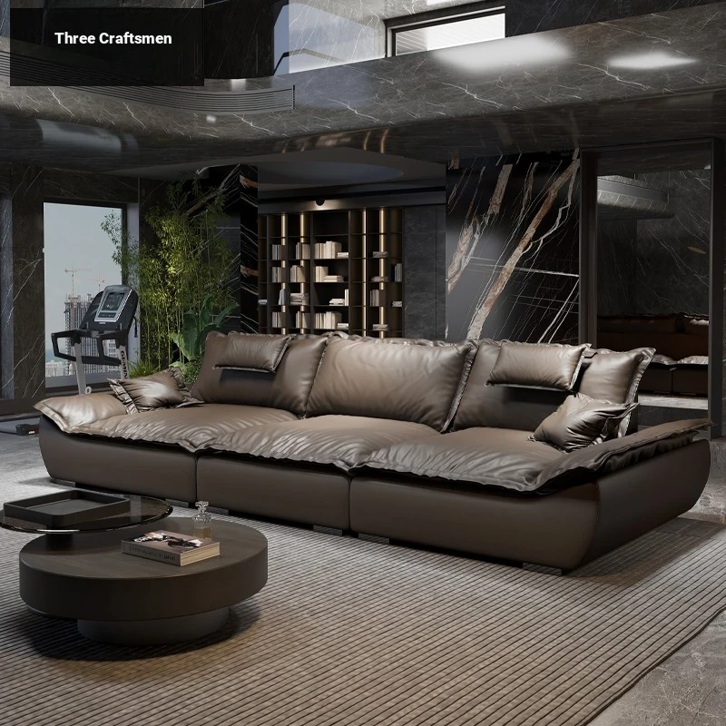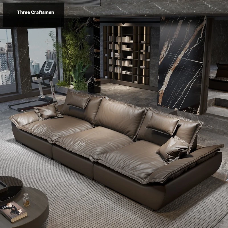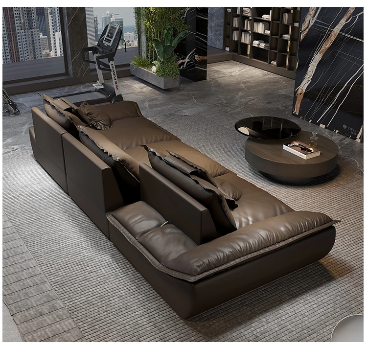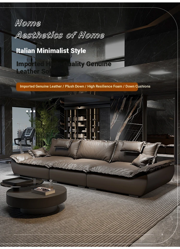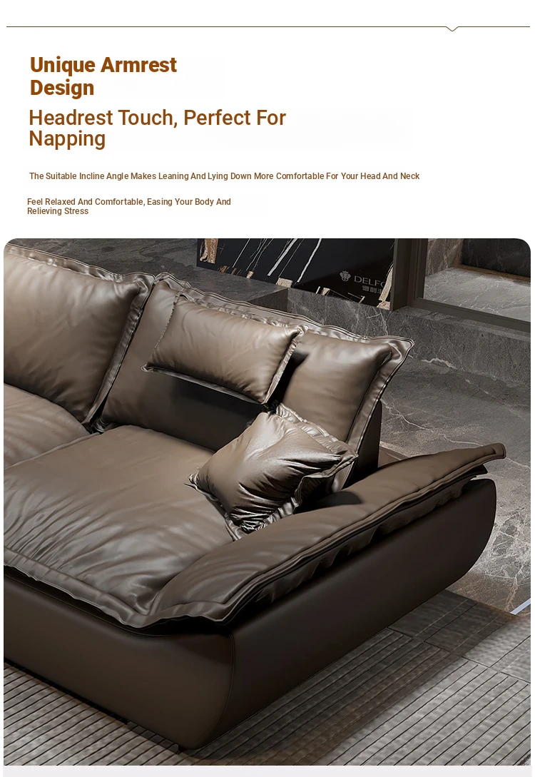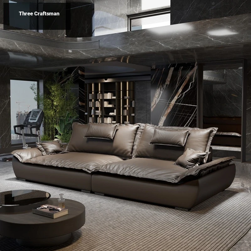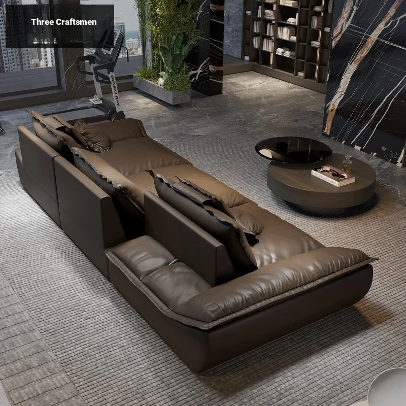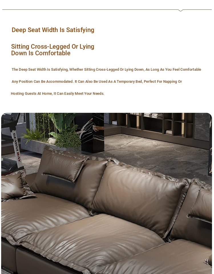 Ultra-Deep Sailboat Sofa with Adjustable Backrest - Minimalist Design, Spacious Seating, Real Leather Upholstery for a Luxurious Living Room Experience