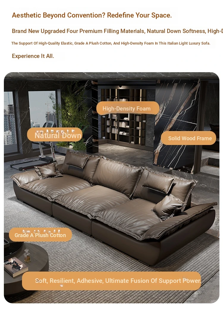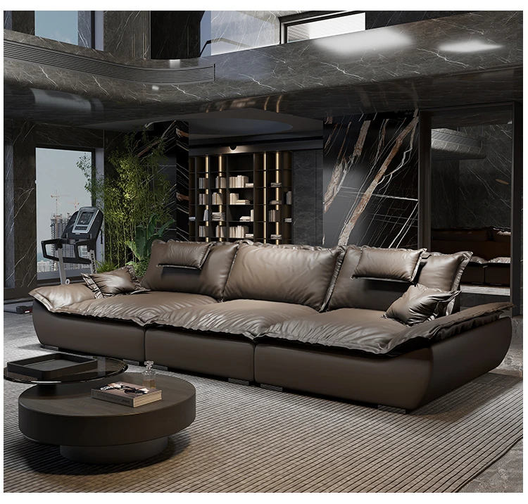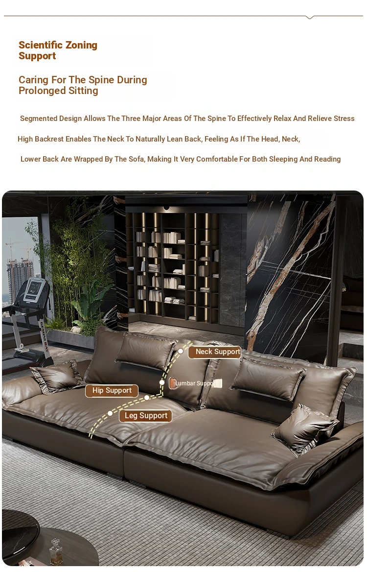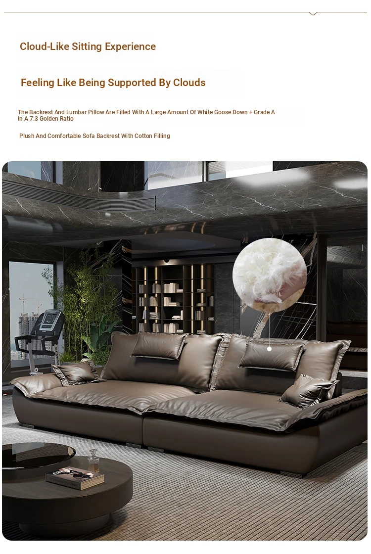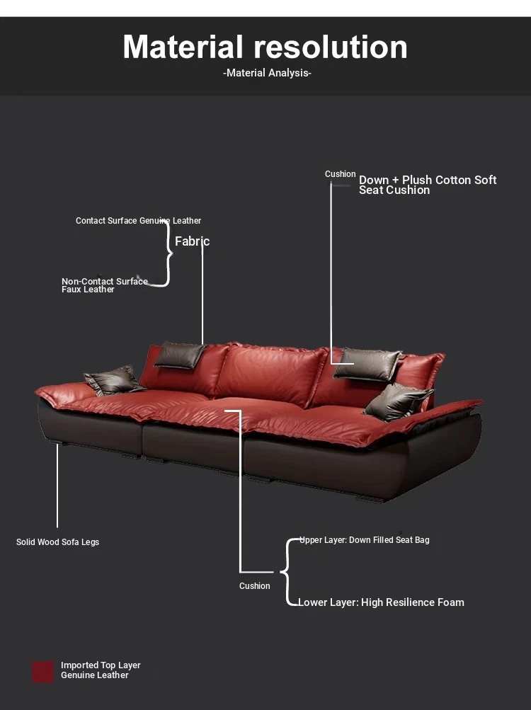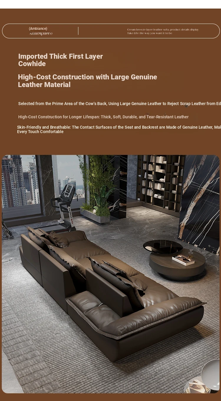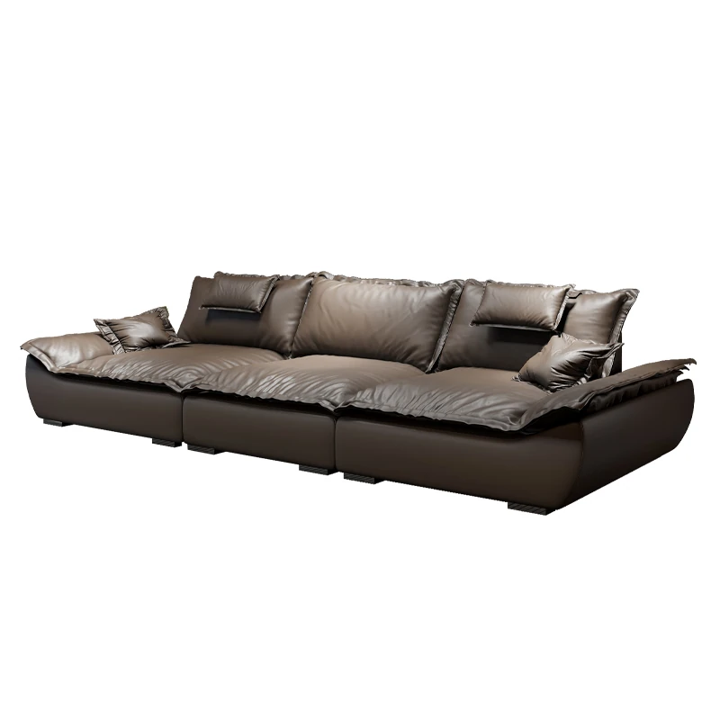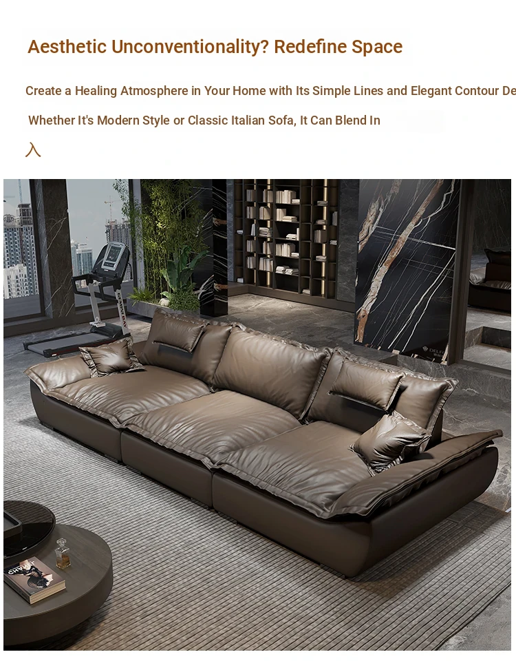 Ultra-Deep Sailboat Sofa with Adjustable Backrest - Minimalist Design, Spacious Seating, Real Leather Upholstery for a Luxurious Living Room Experience