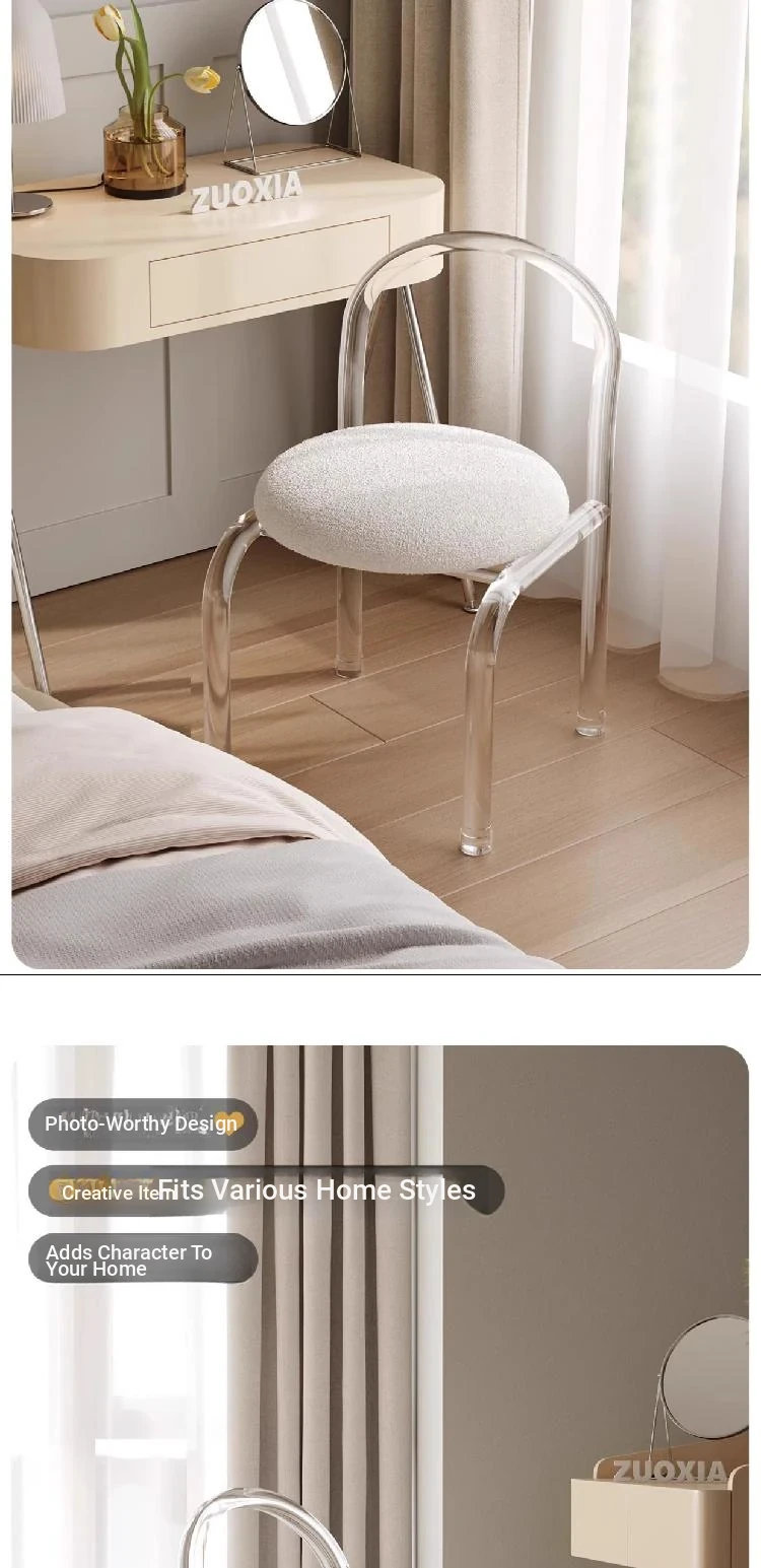 Xishan Creations Nordic Minimalist Bedroom Makeup Chair - Stylish Home Backrest Acrylic Transparent Vanity Stool for a Chic and Modern Touch