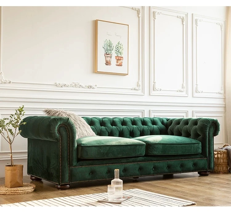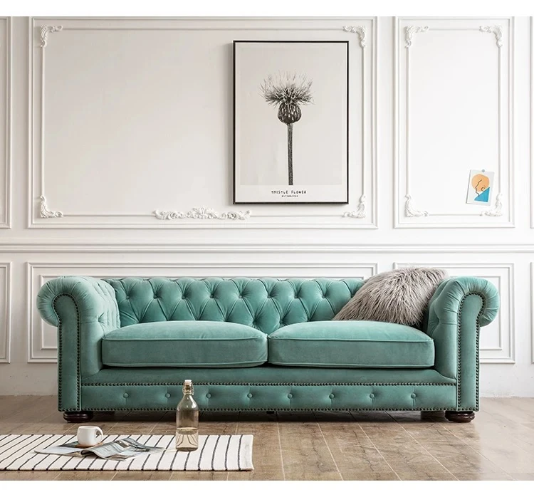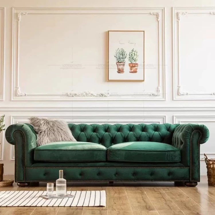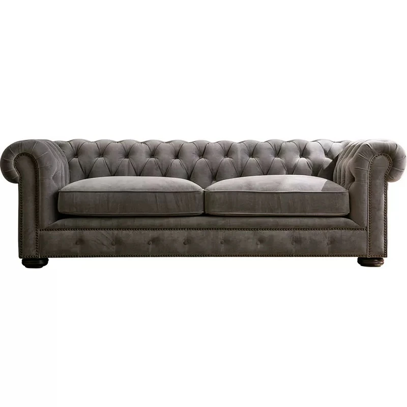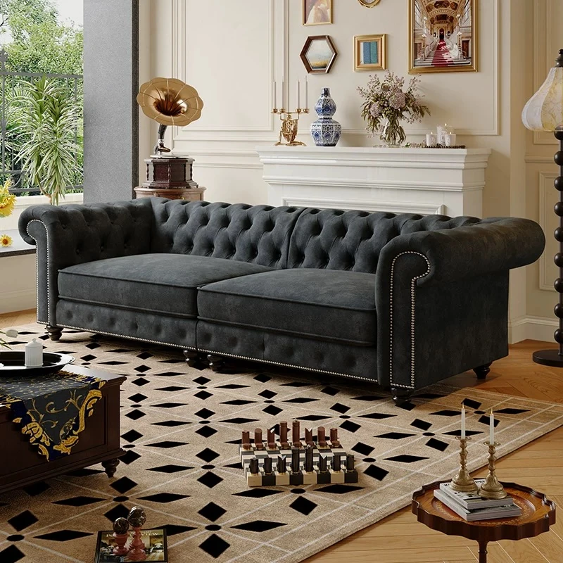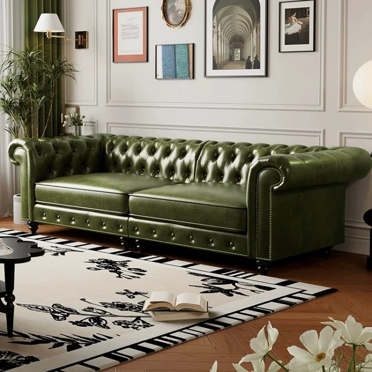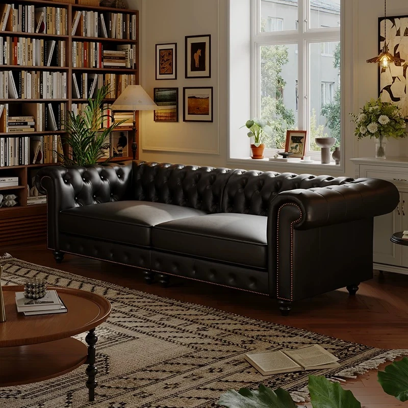 American Vintage Luxury Genuine Leather Sofa - Waxed Leather, European Style, Perfect for Small Villas and Living Rooms, Straight Design for Cozy Spaces