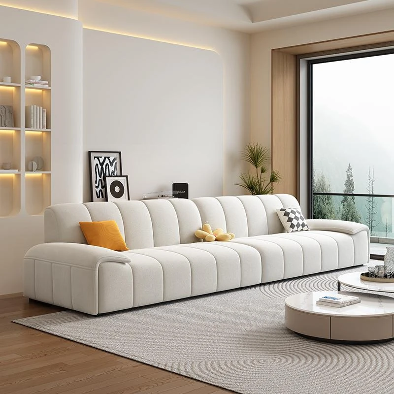 クリーム風クッションソファ|リビングにぴったりな優雅な貴妃ソファ|雲のようなふわふわ感の小型布製ソファ|高級感溢れるレザーソファで、心地よいくつろぎの空間を実現!