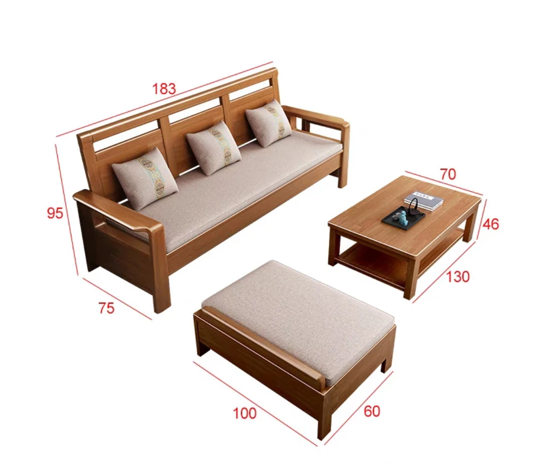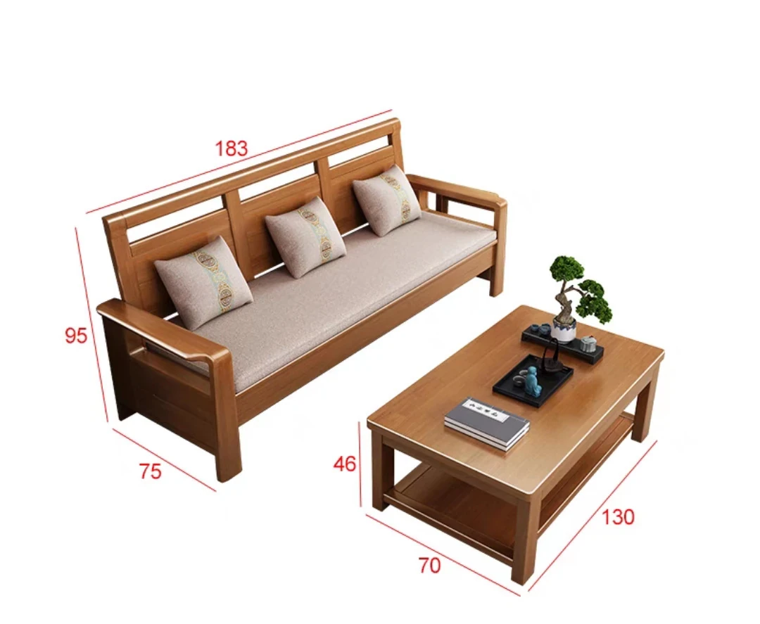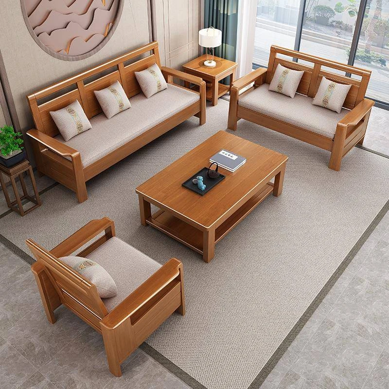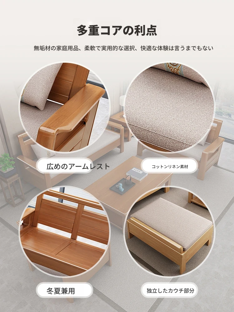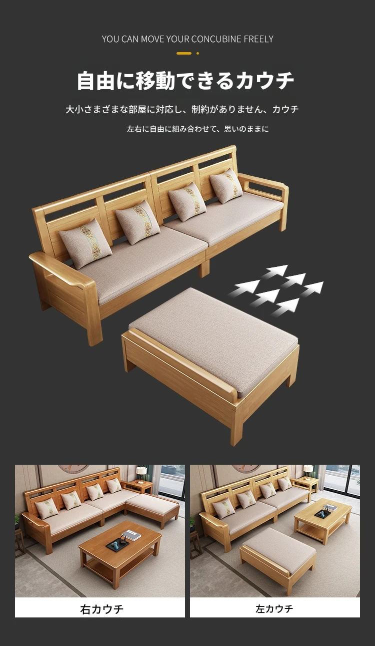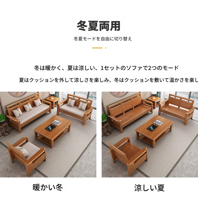 【お得な価格】冬夏兼用の天然木製ソファ+オットマン+コーヒーテーブルセット - 小さなリビングにぴったりなシンプルモダンデザイン!快適さとスタイルを兼ね備えた理想的な組み合わせ。