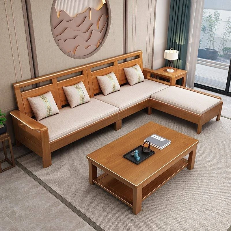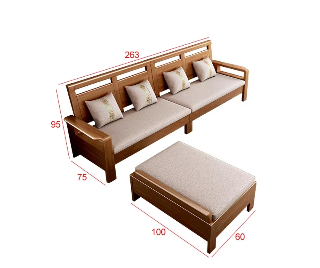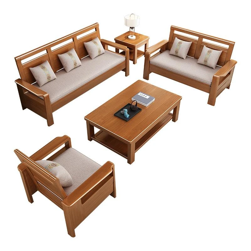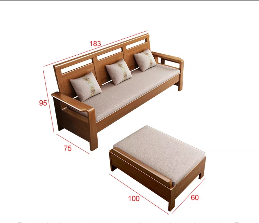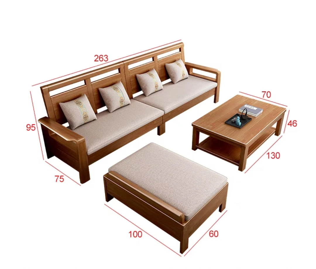 【お得な価格】冬夏兼用の天然木製ソファ+オットマン+コーヒーテーブルセット - 小さなリビングにぴったりなシンプルモダンデザイン!快適さとスタイルを兼ね備えた理想的な組み合わせ。