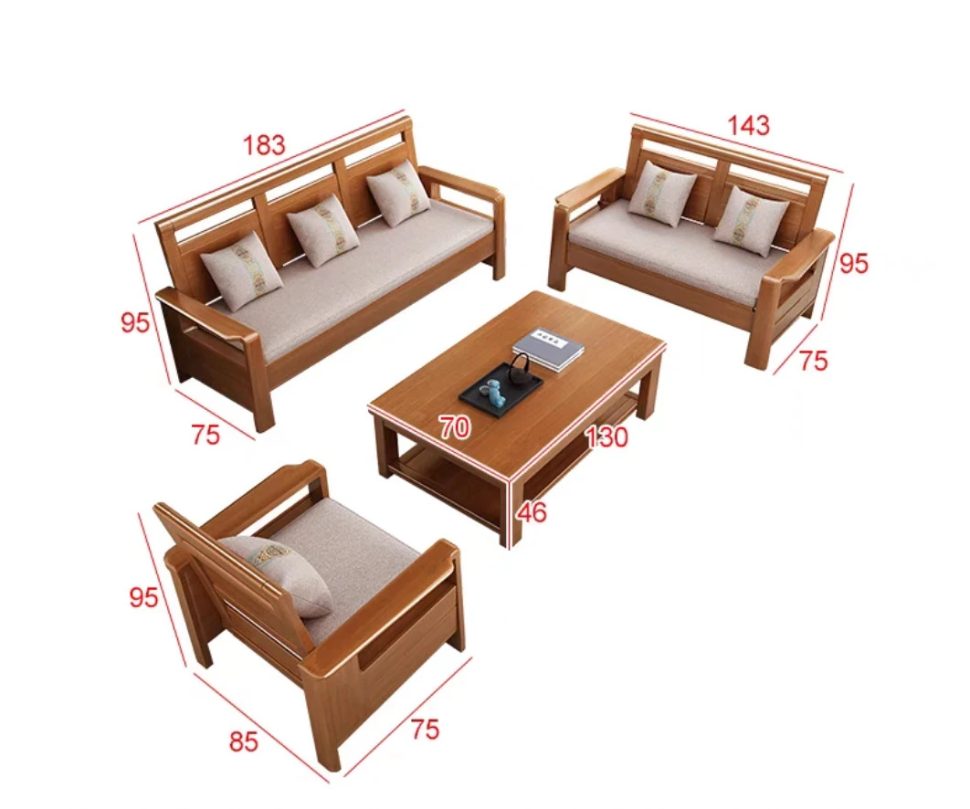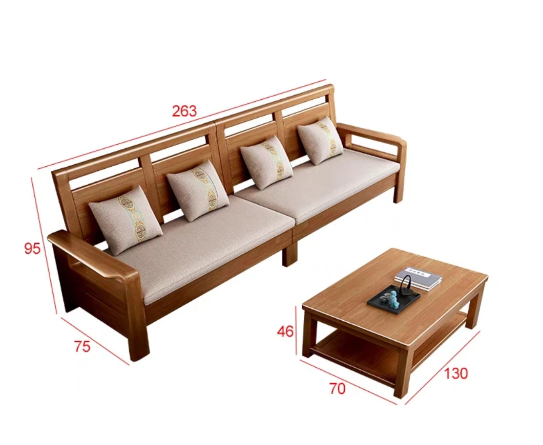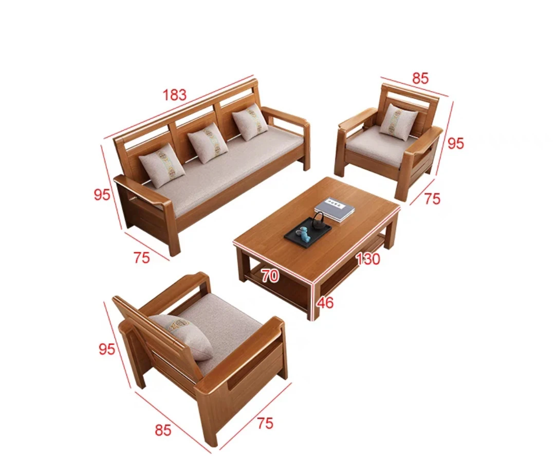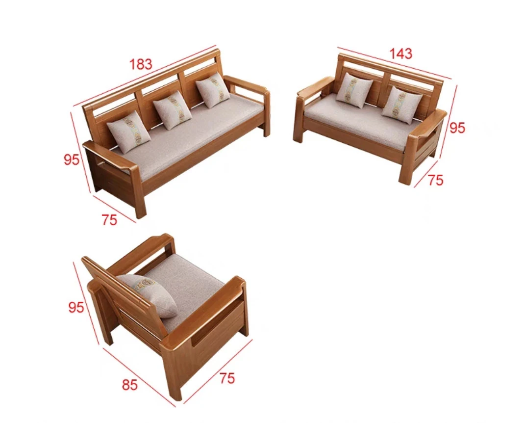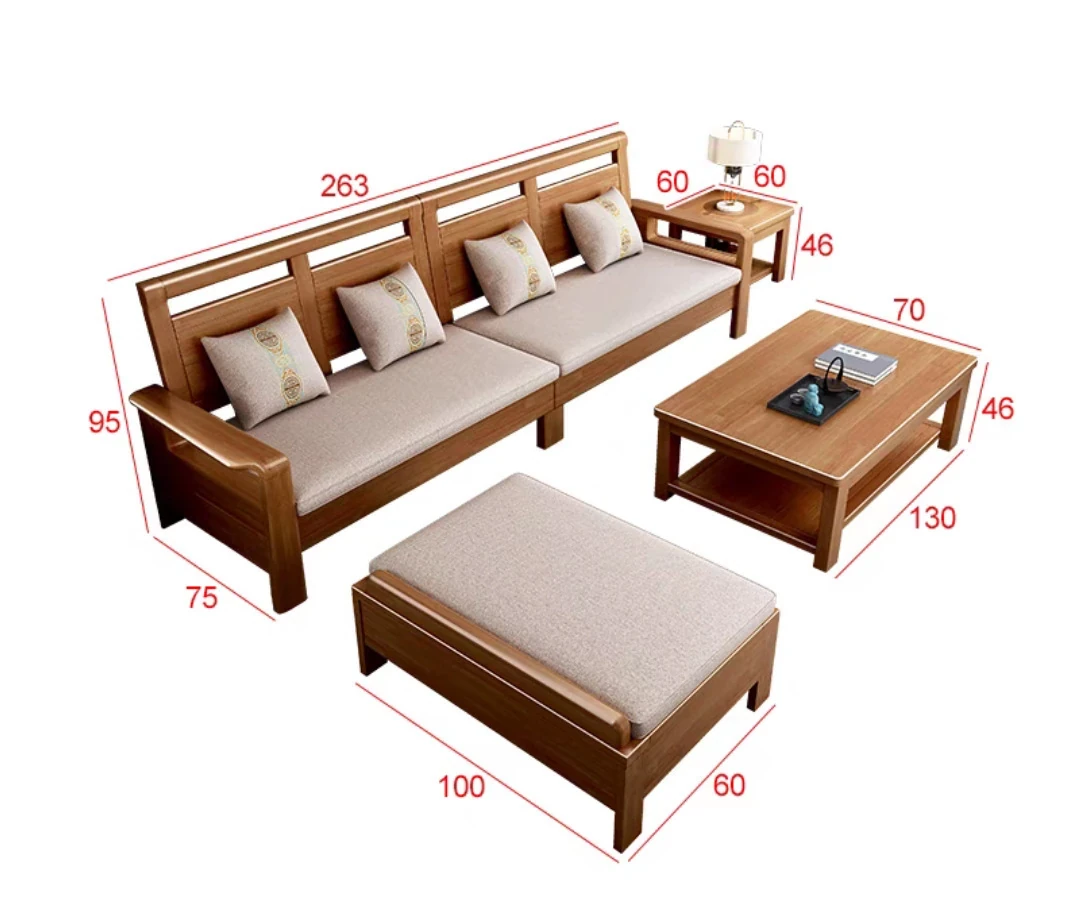 【お得な価格】冬夏兼用の天然木製ソファ+オットマン+コーヒーテーブルセット - 小さなリビングにぴったりなシンプルモダンデザイン!快適さとスタイルを兼ね備えた理想的な組み合わせ。