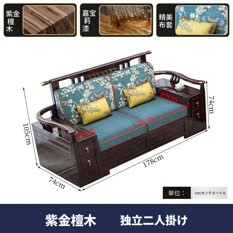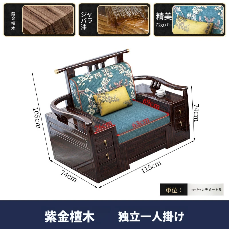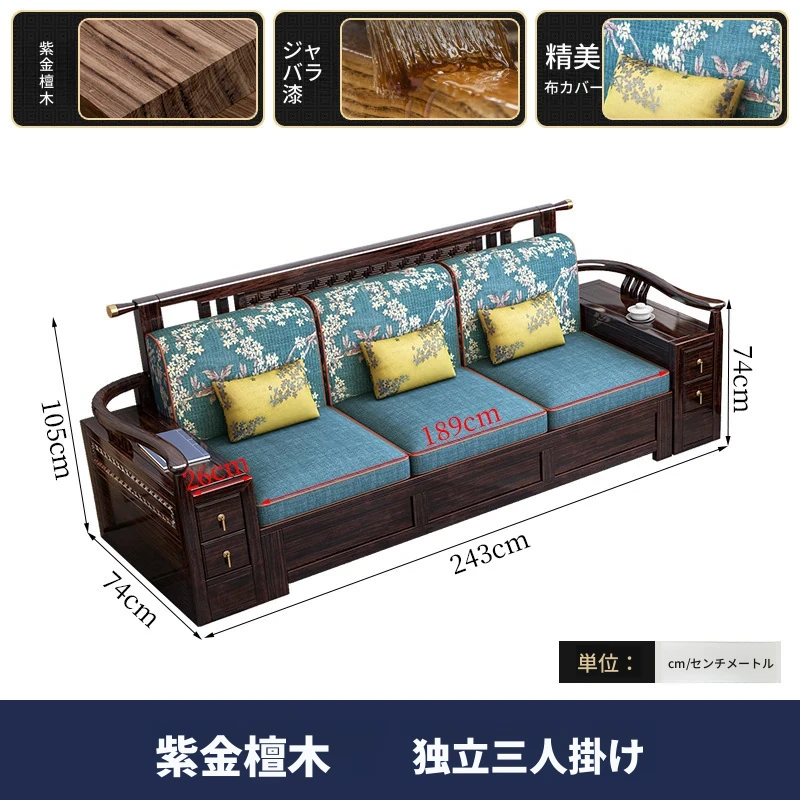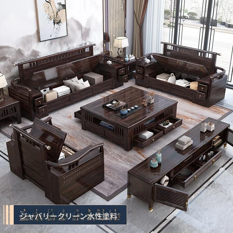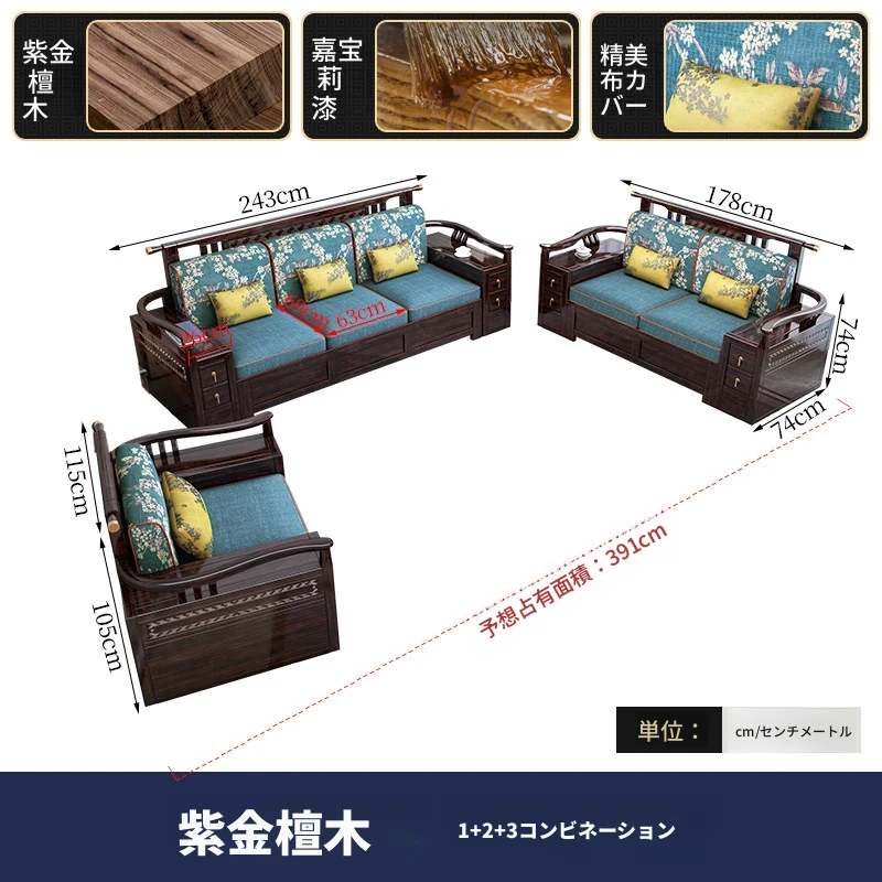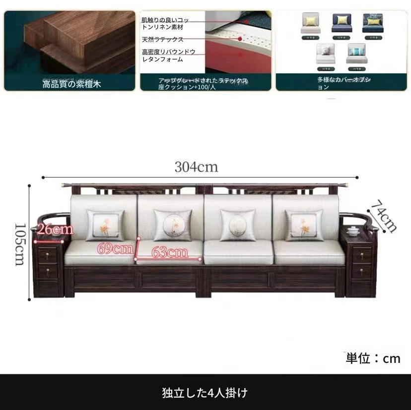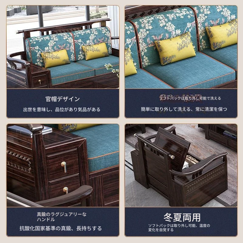 新中式軽奢紫金檀木全実木ソファー|冬夏兼用・収納付き・高級家具・リビングルーム用コンビネーションで、洗練された空間を演出します!