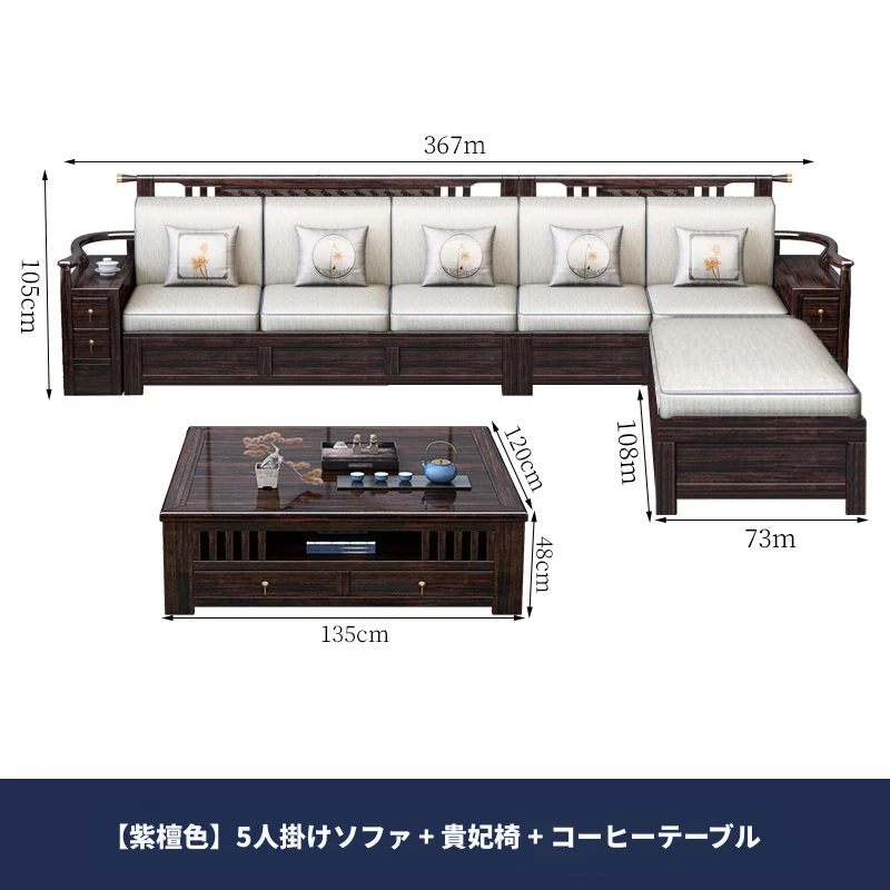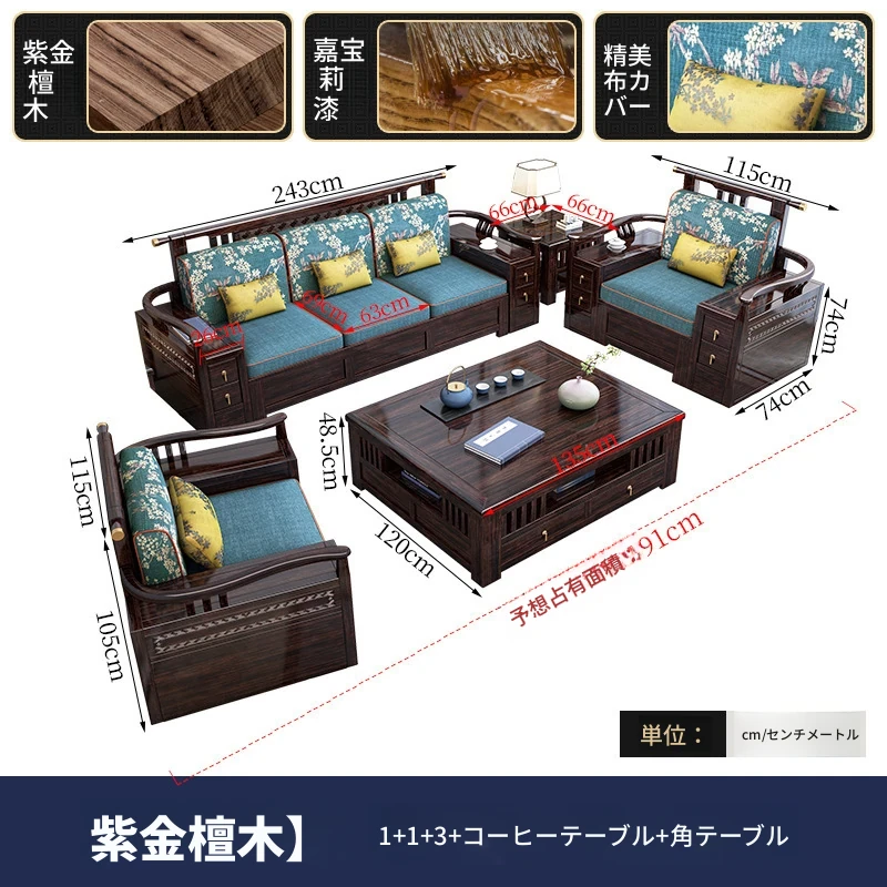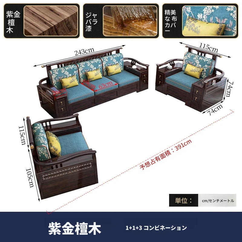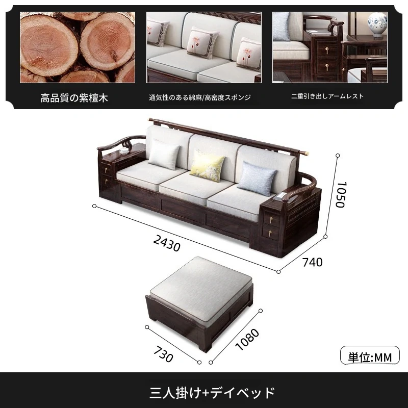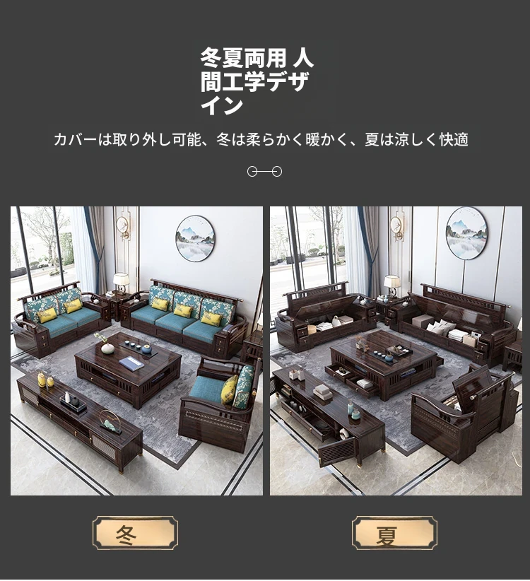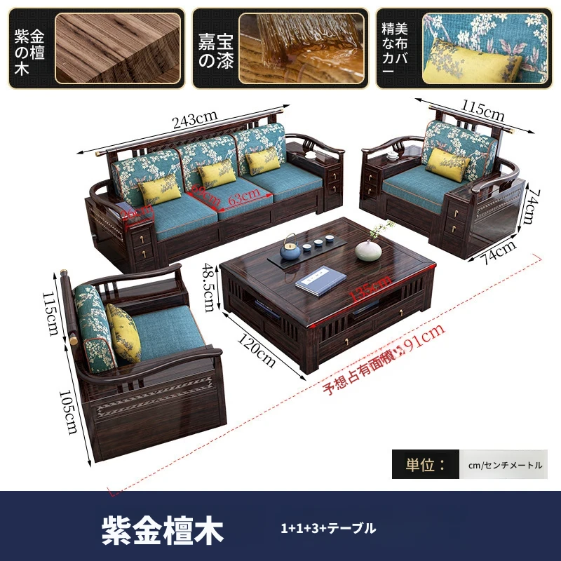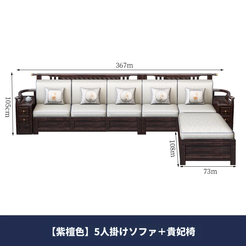 新中式軽奢紫金檀木全実木ソファー|冬夏兼用・収納付き・高級家具・リビングルーム用コンビネーションで、洗練された空間を演出します!