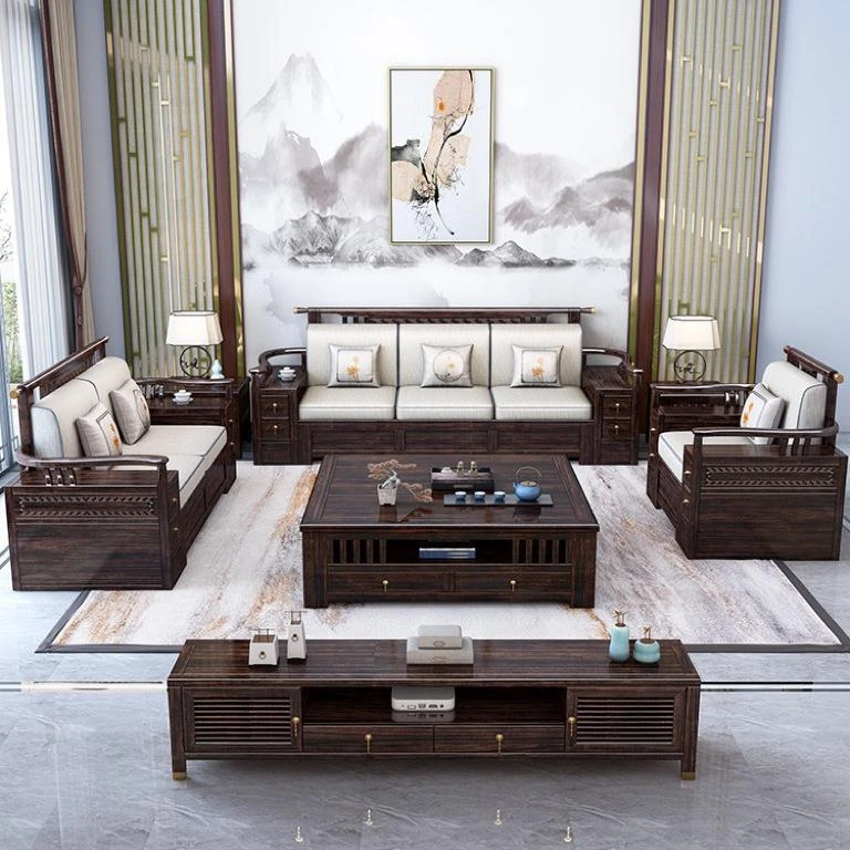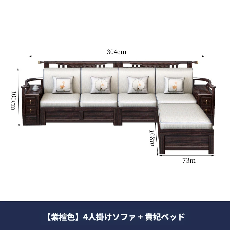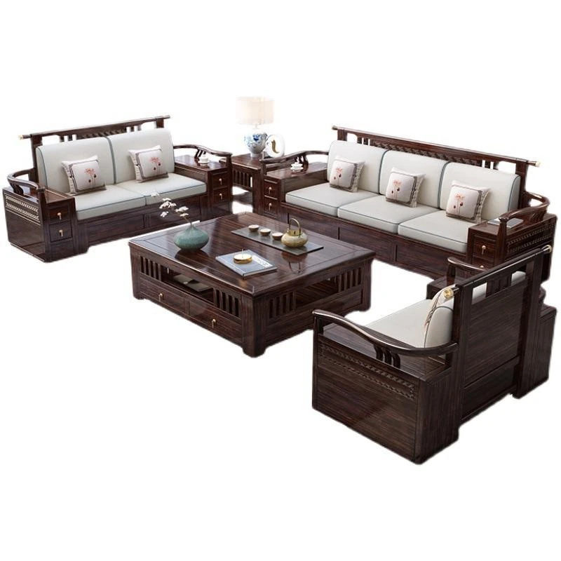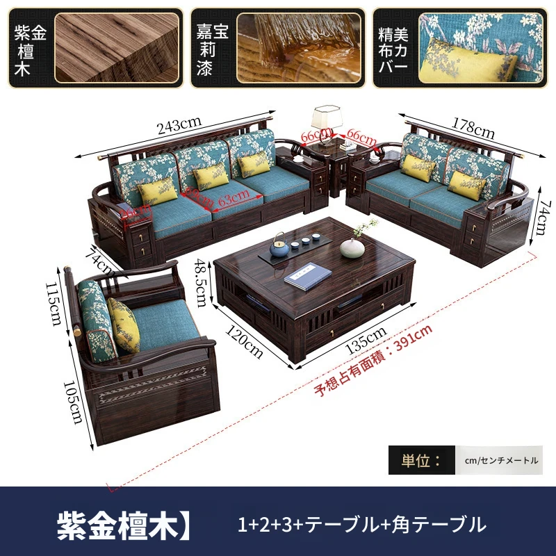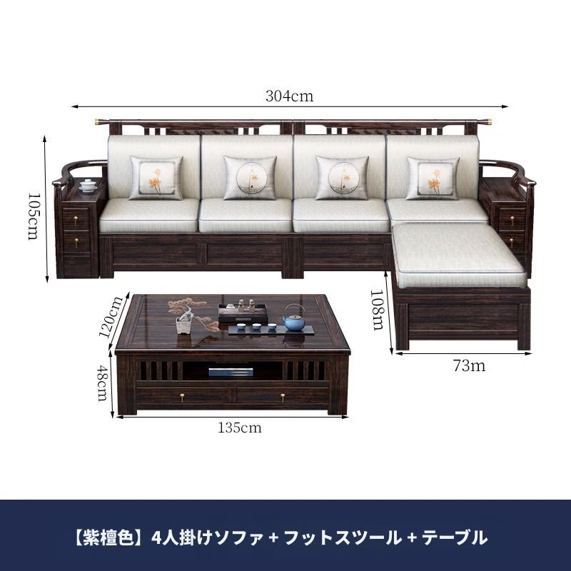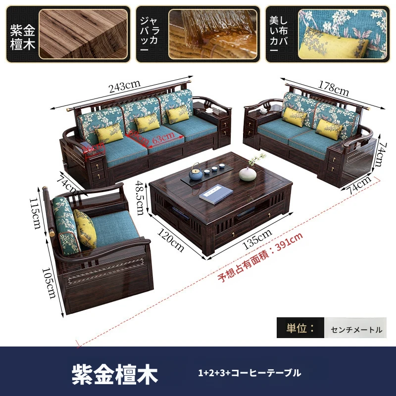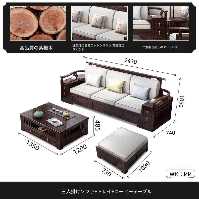 新中式軽奢紫金檀木全実木ソファー|冬夏兼用・収納付き・高級家具・リビングルーム用コンビネーションで、洗練された空間を演出します!