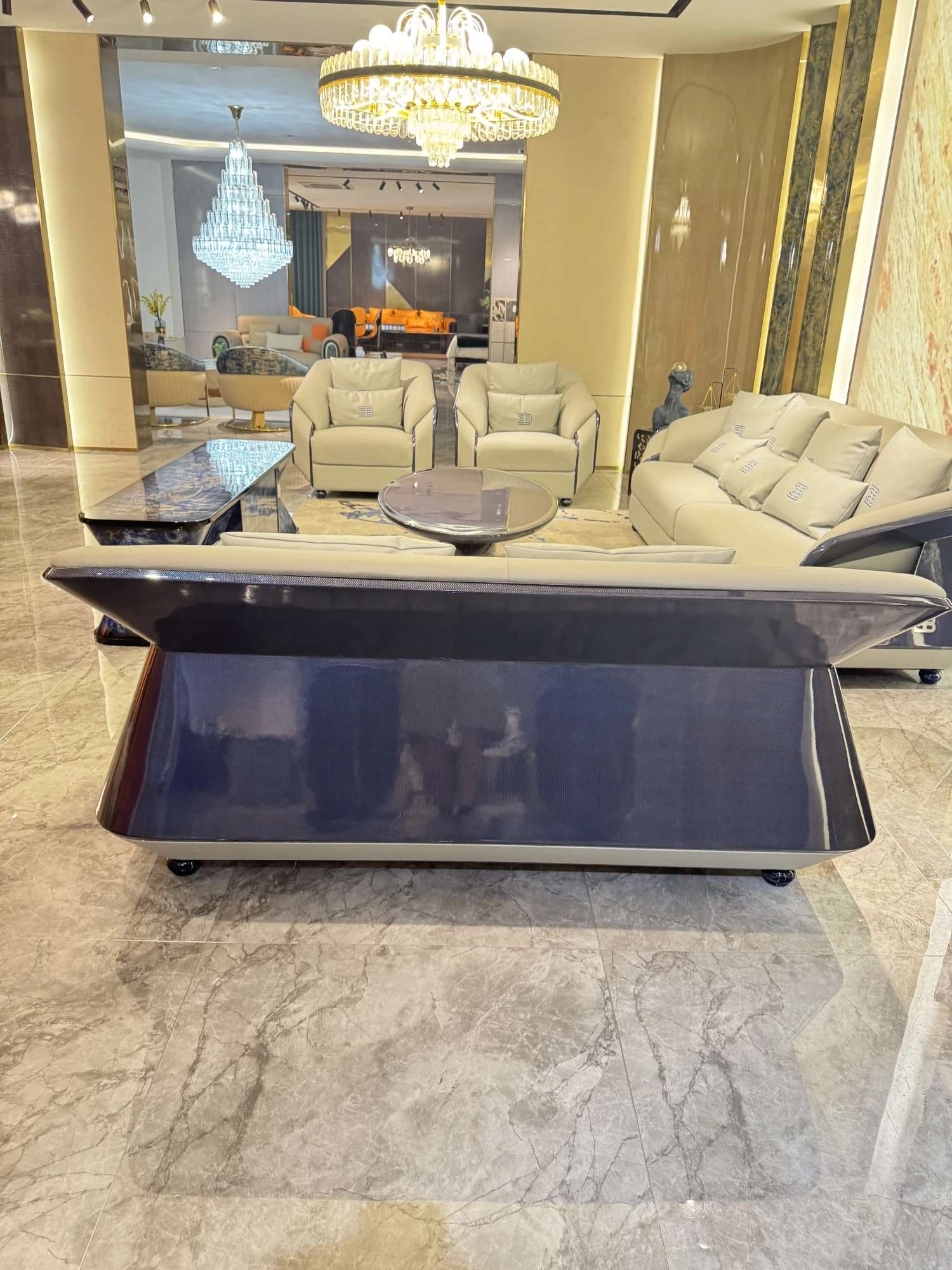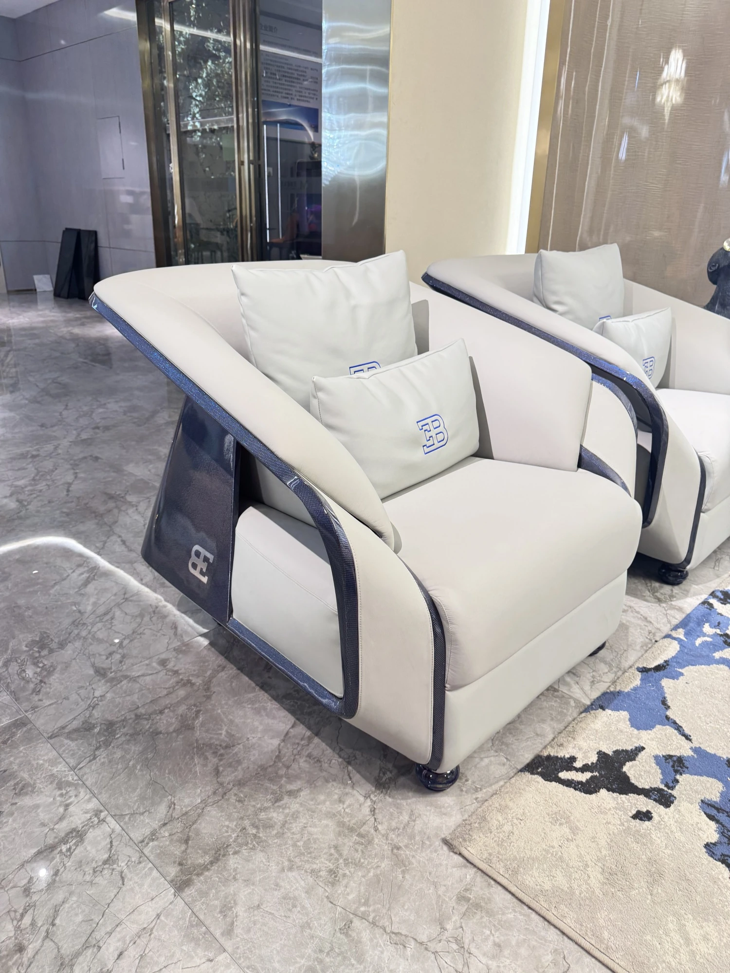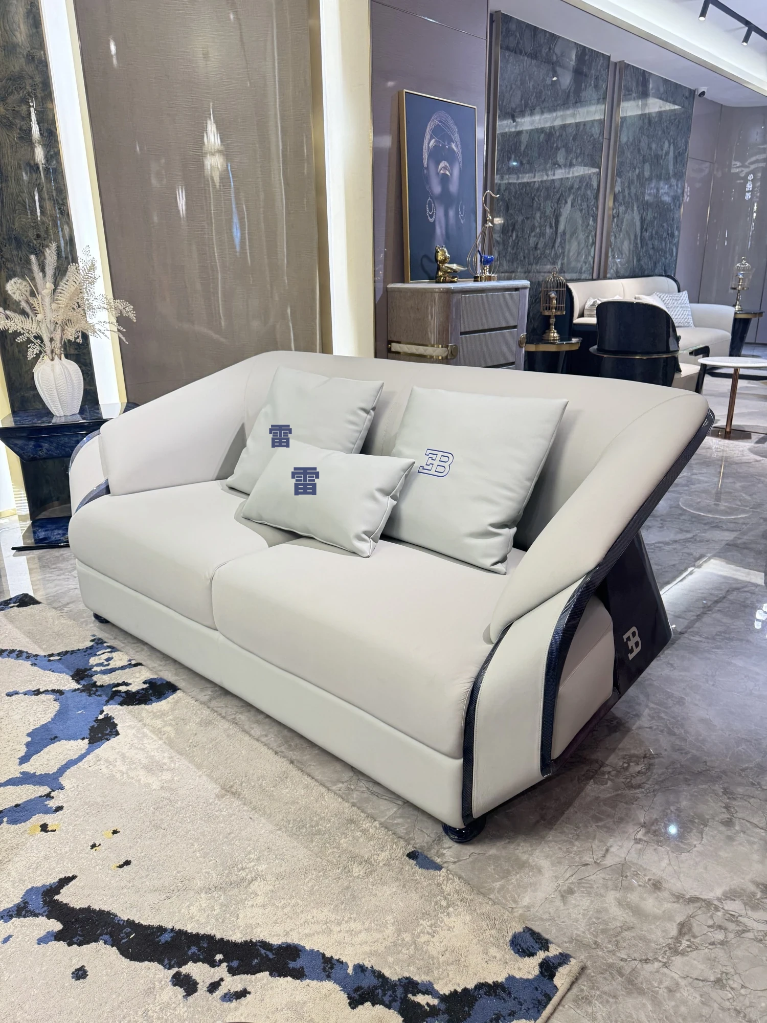 イタリアンラグジュアリー ブガッティ本革ソファセット - 豪華なヴィラや高級マンションにぴったりのリビングルーム用、無垢材の高級家具で特別な空間を演出します。