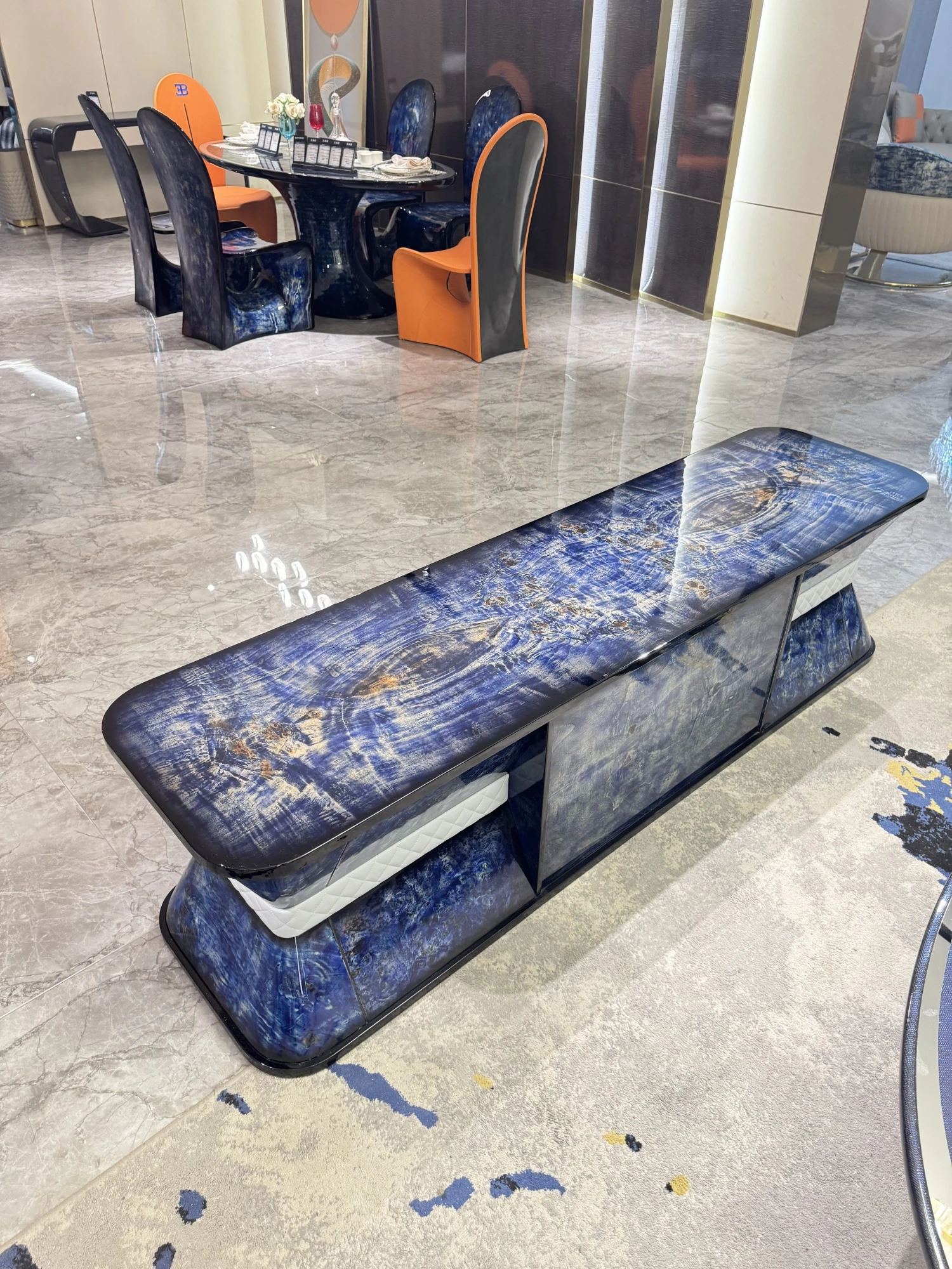 長方形コーヒーテーブル(青色樹瘤ウレタン塗装)