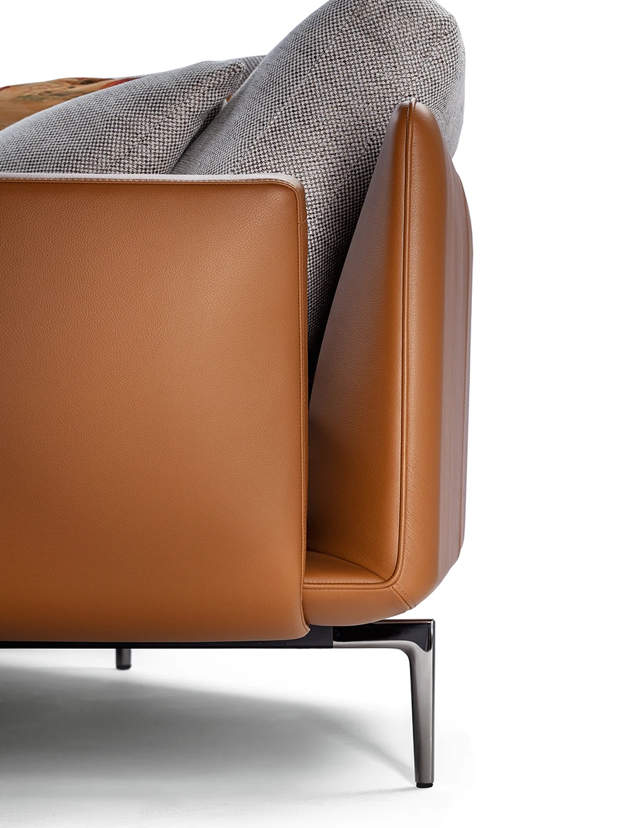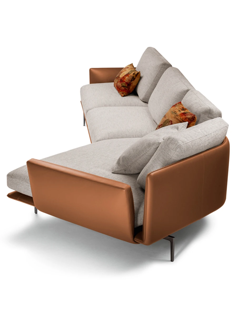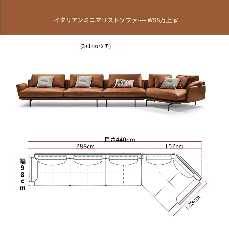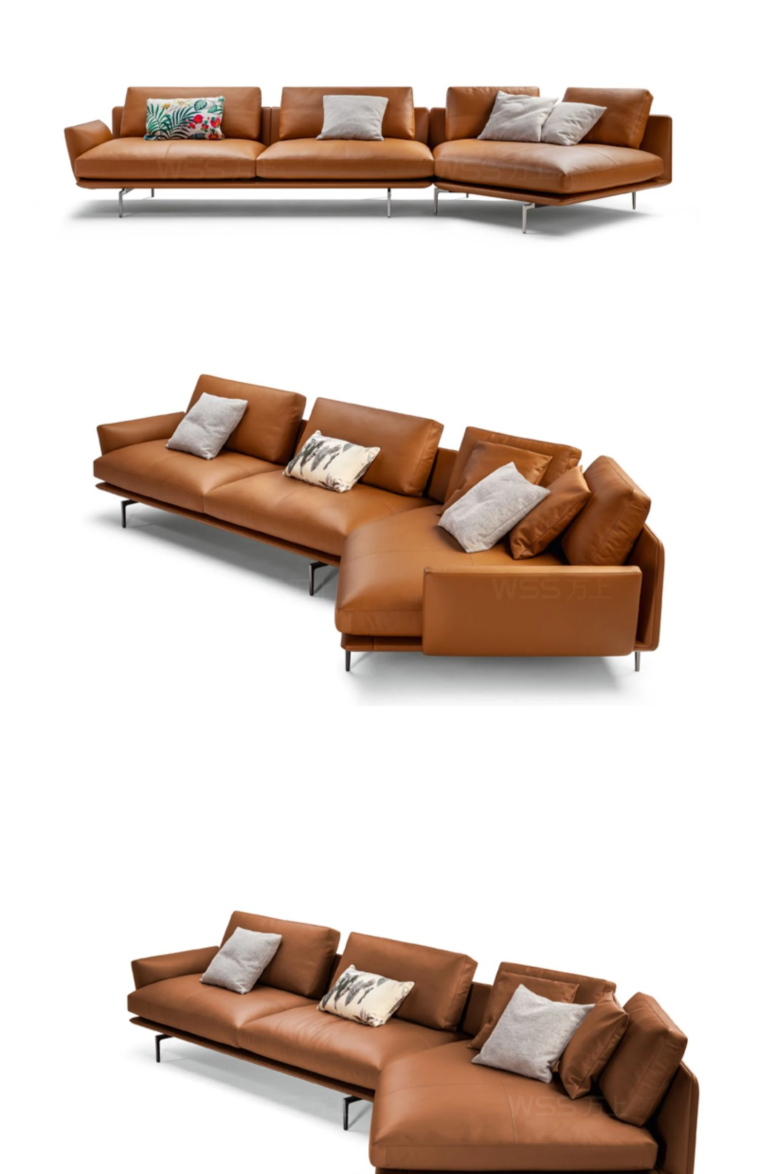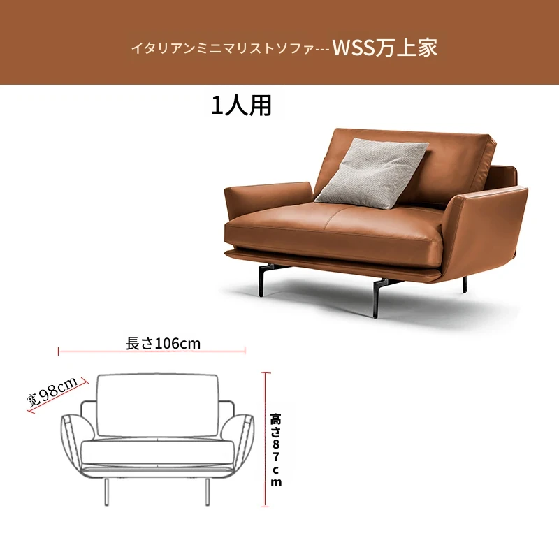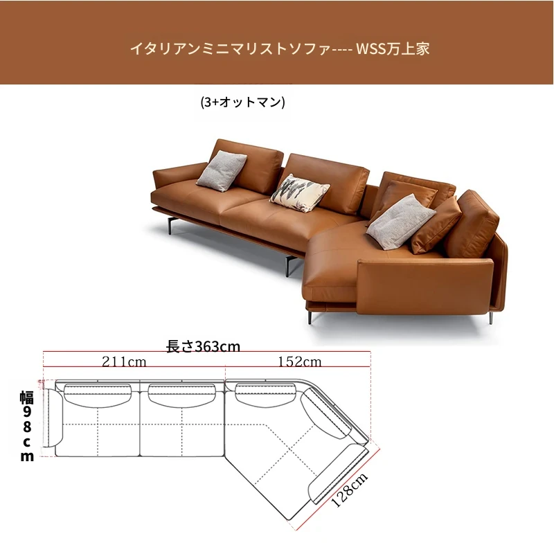 イタリアンライトラグジュアリー本革ソファ 北欧ミニマリスト現代デザイン 小型住宅向け 半円形イタリアンカーブ牛革使用 もっちりとした座り心地で、あなたのリビングをスタイリッシュに演出!