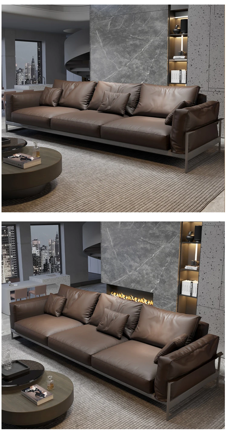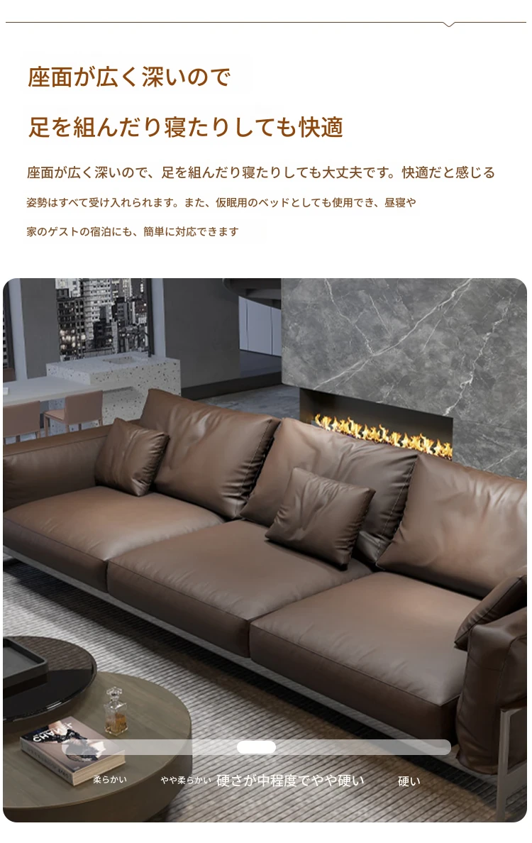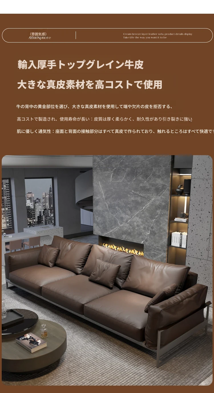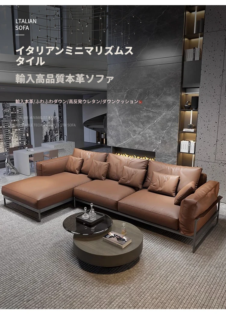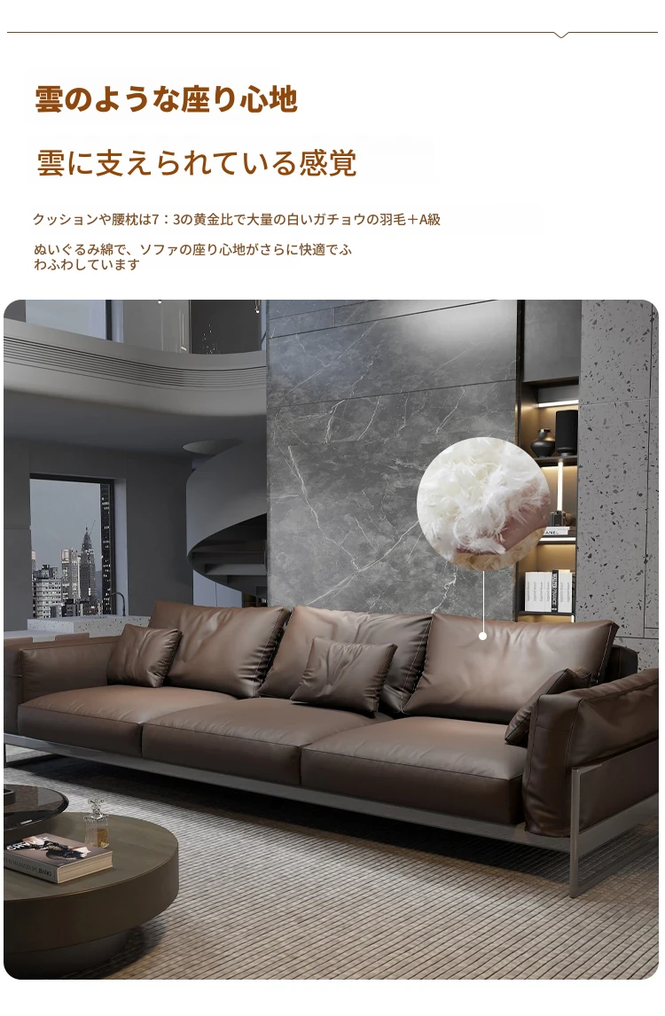 イタリアンシンプルモダン本革ダウンソファ 北欧スタイル高級レザーリビングソファ 軽やかなラグジュアリー感を演出するおしゃれなデザイン!