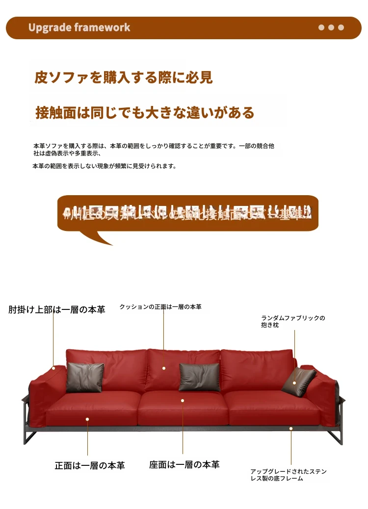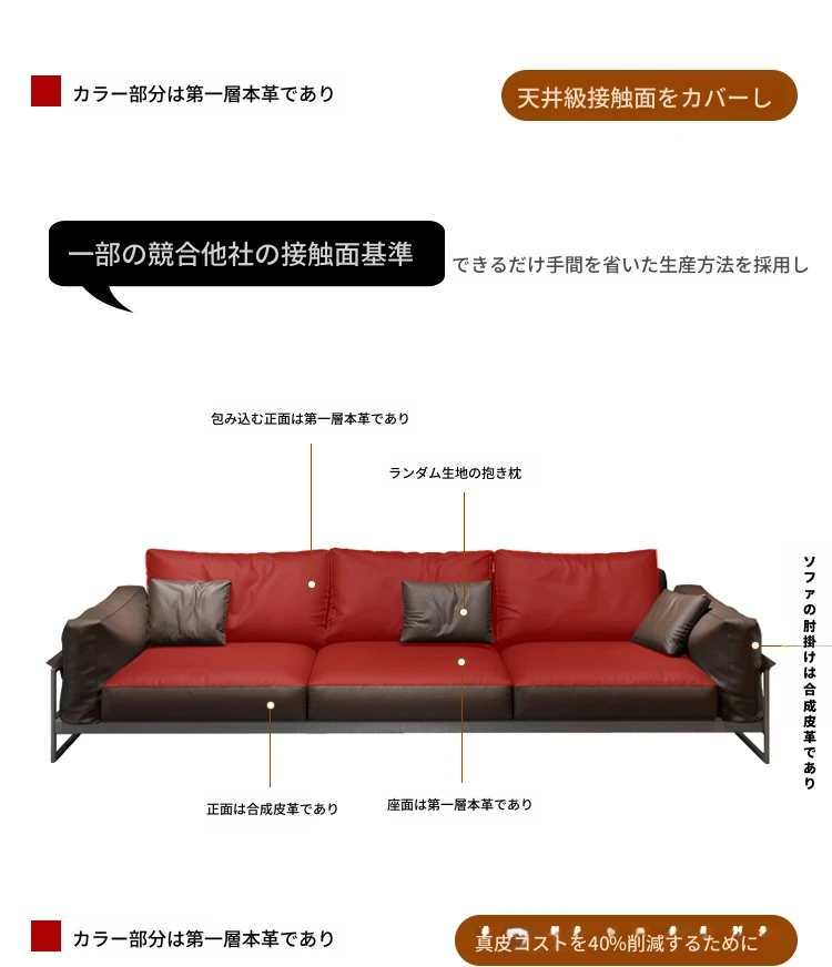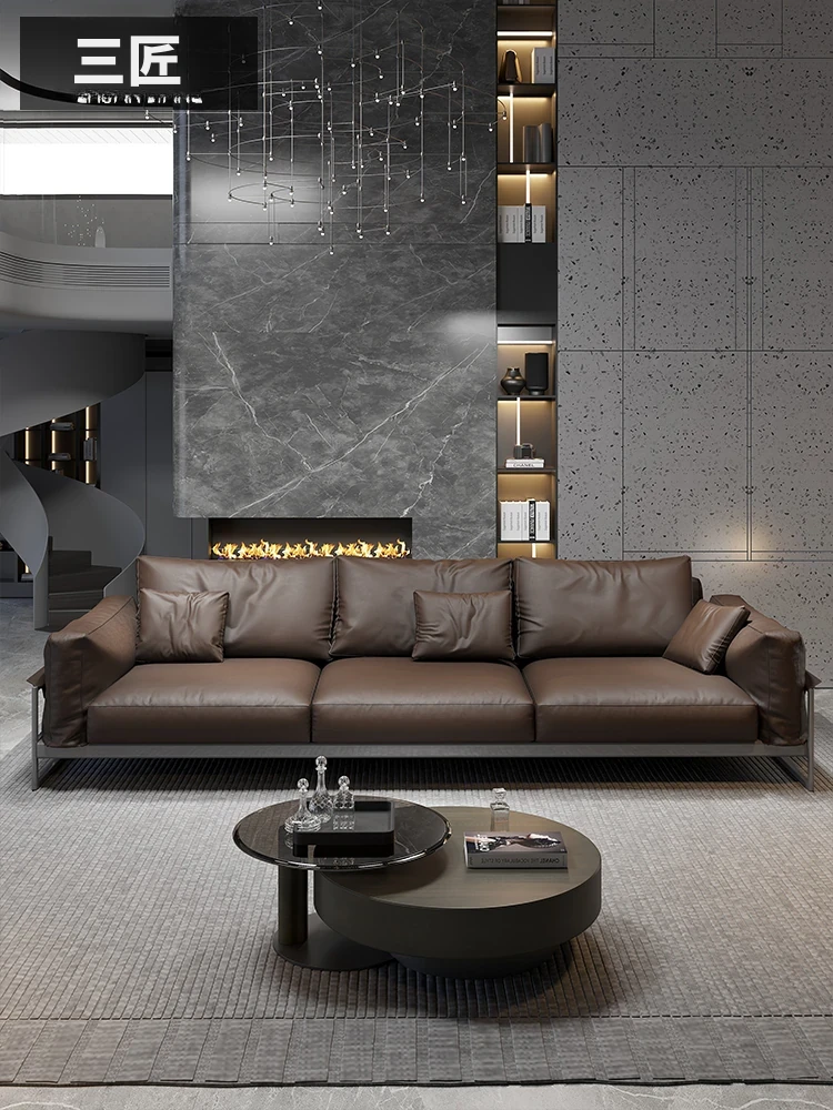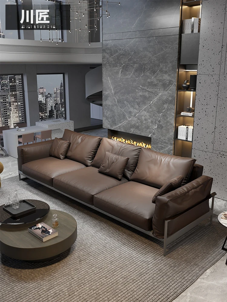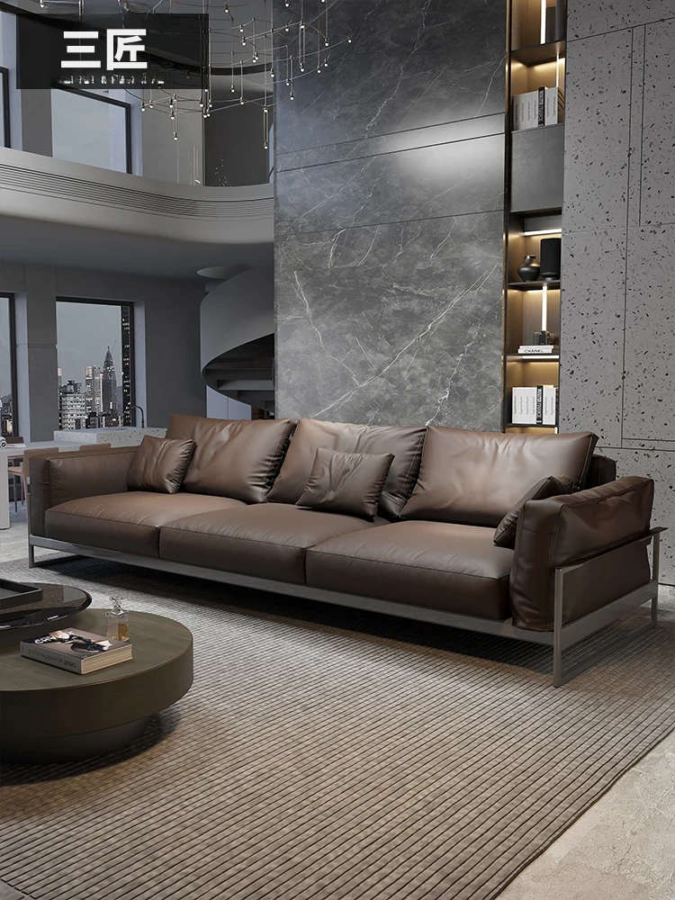 イタリアンシンプルモダン本革ダウンソファ 北欧スタイル高級レザーリビングソファ 軽やかなラグジュアリー感を演出するおしゃれなデザイン!