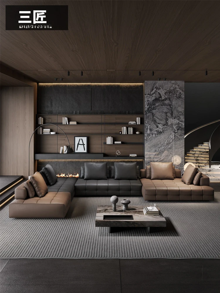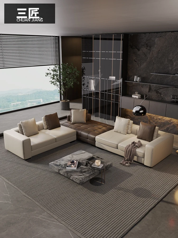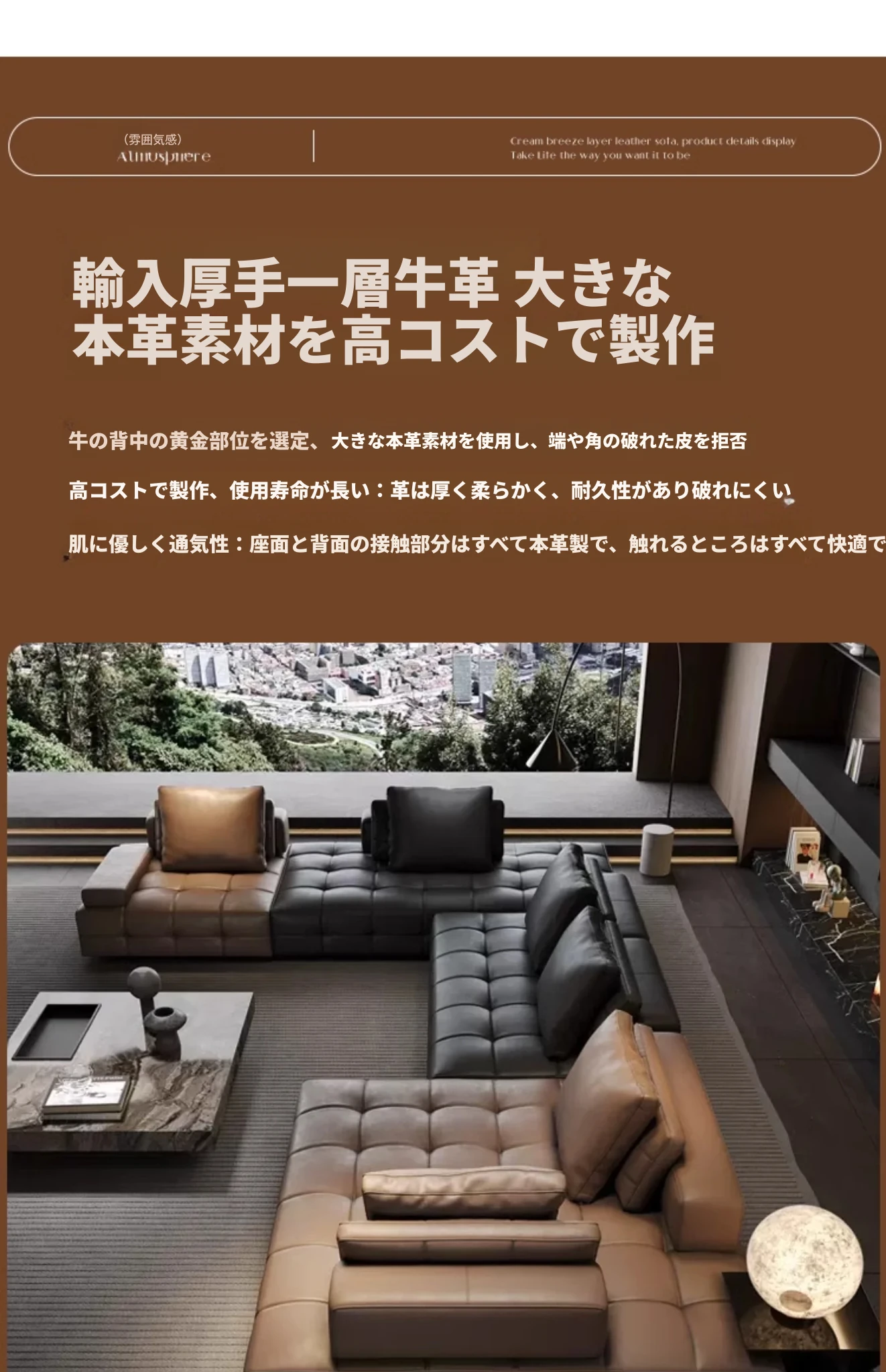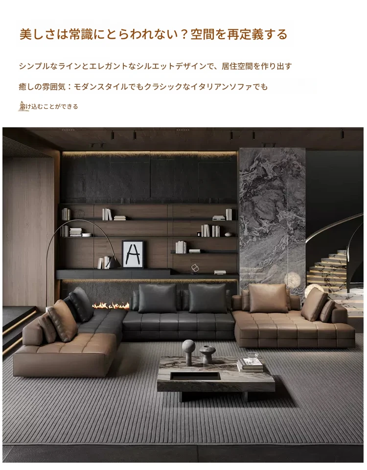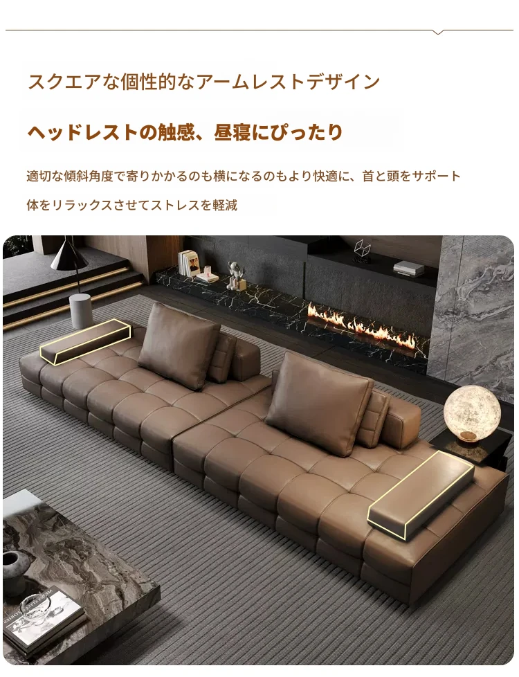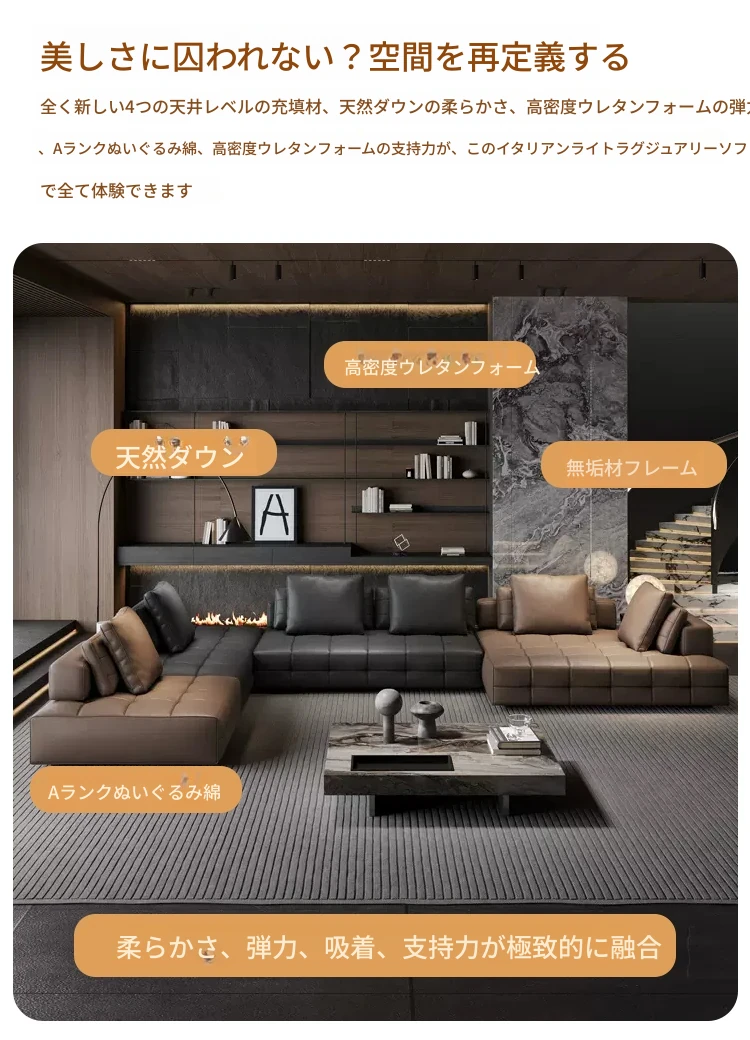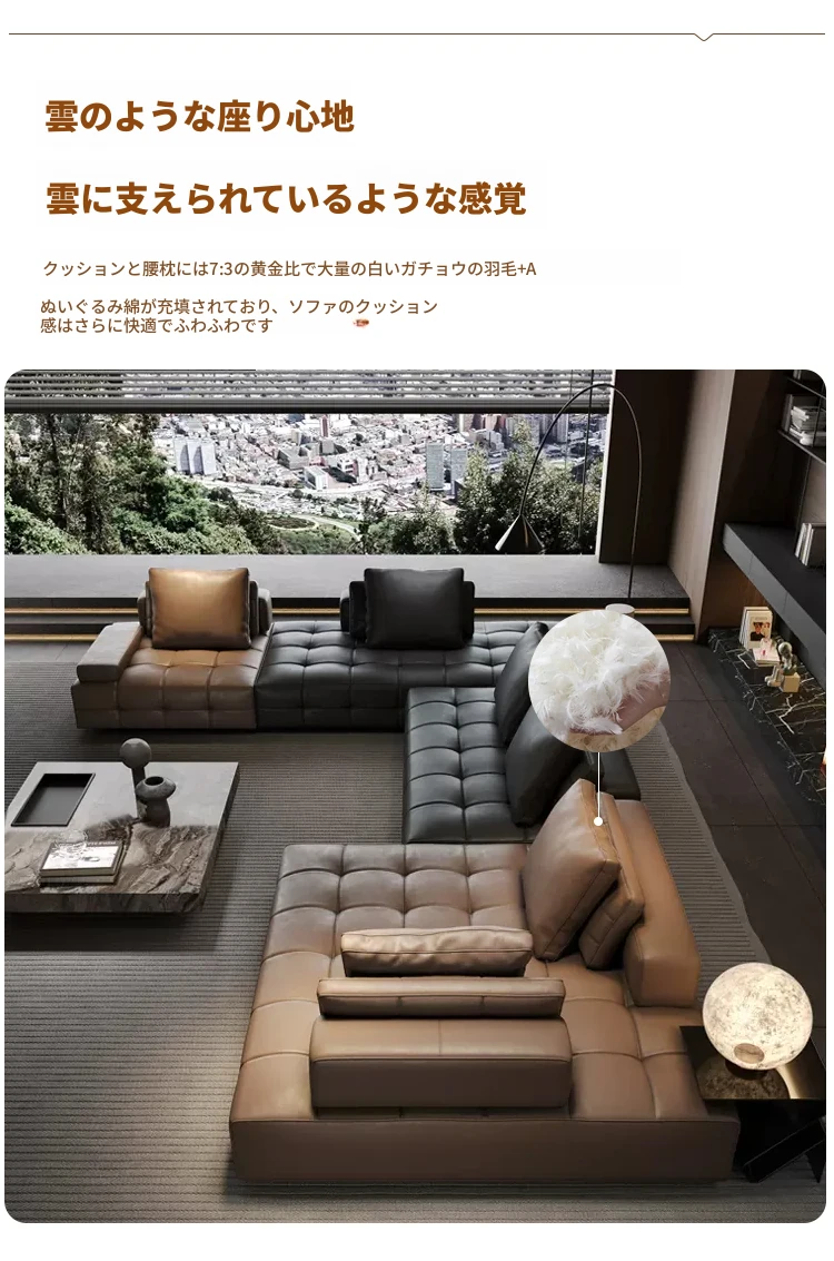 ローレンス イタリアンミニマリズム 本革ソファ 上質な牛革使用 リビングにぴったりの大サイズ モジュール式コンビネーションソファで、あなたの空間をスタイリッシュに演出します。