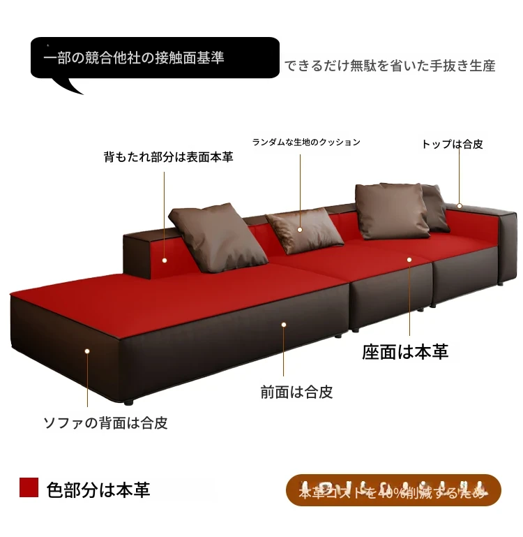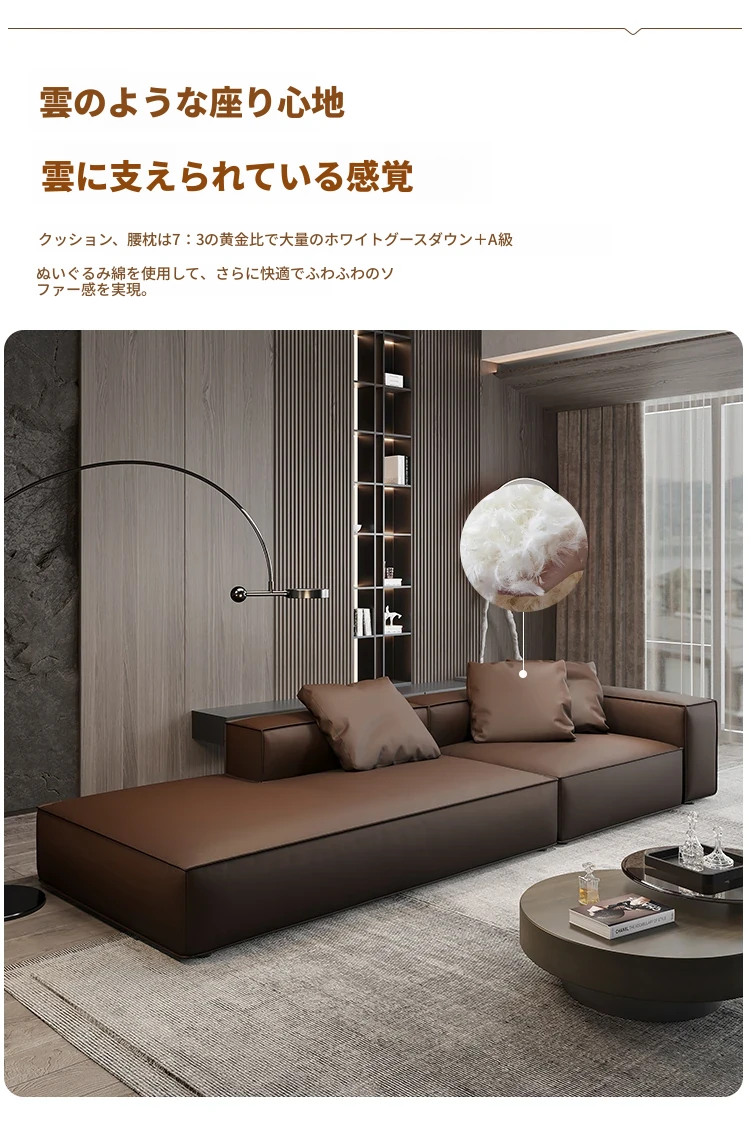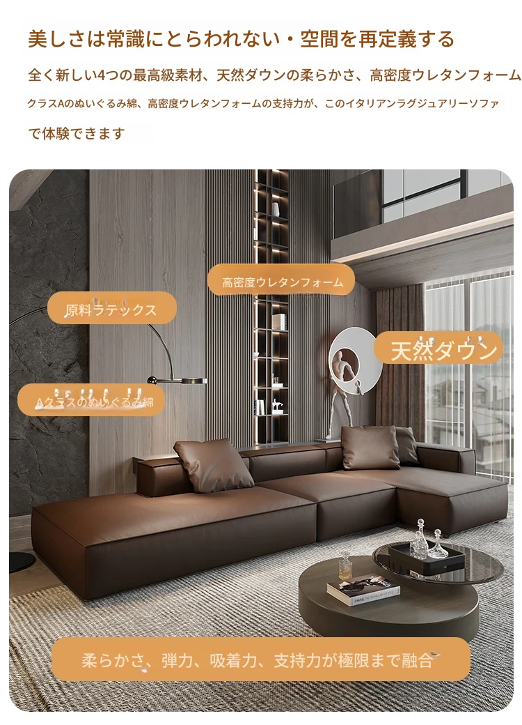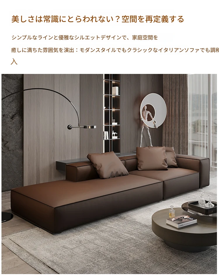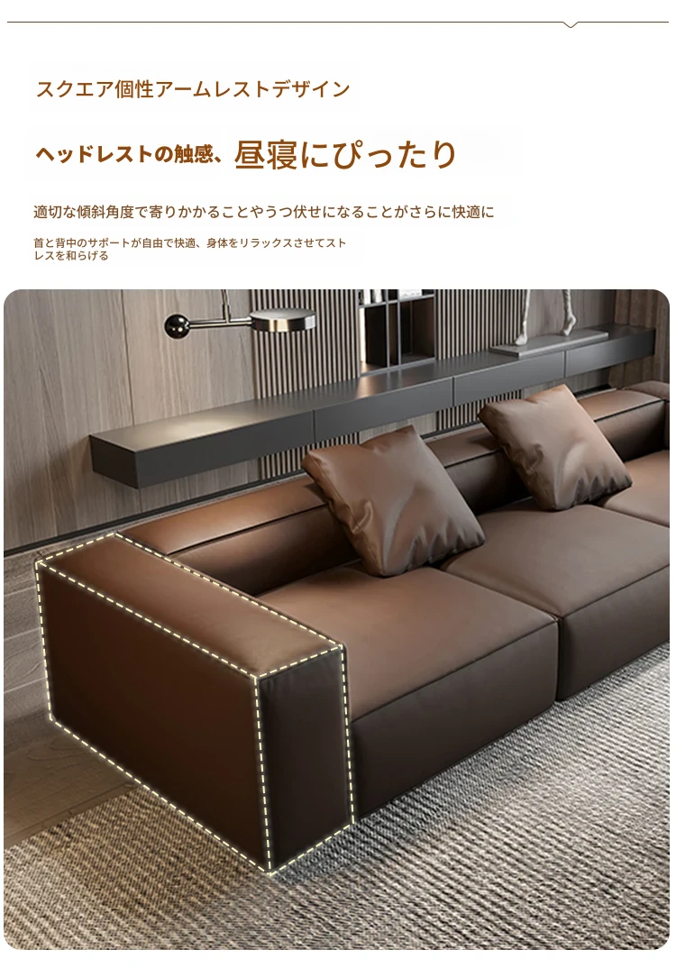 本革製の豆腐ブロックソファー - ラグジュアリーなリビングにぴったり!直置き可能なデザインで、エレガントな貴妃スタイルを引き立てるイタリアンミニマリズムの四角形ソファー。快適さとスタイルを両立させた理想のアイテムです。