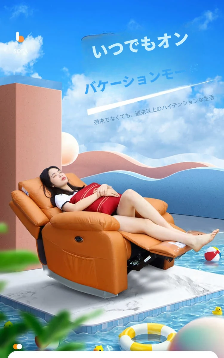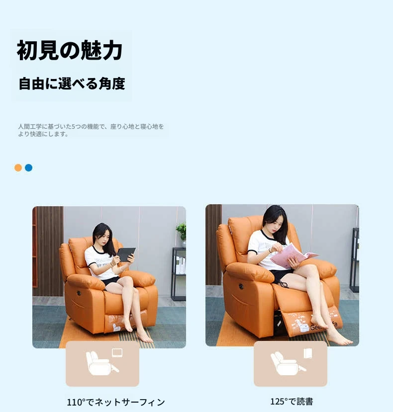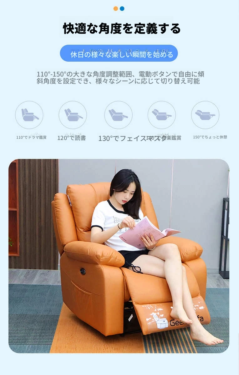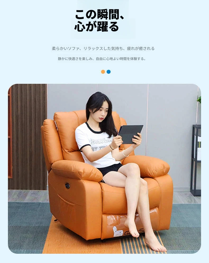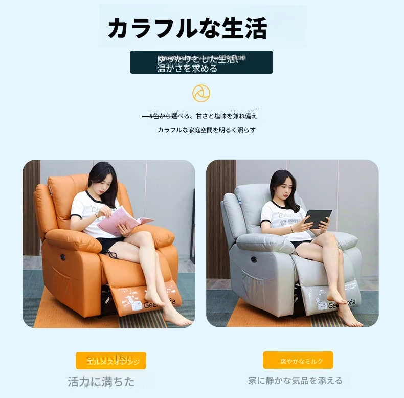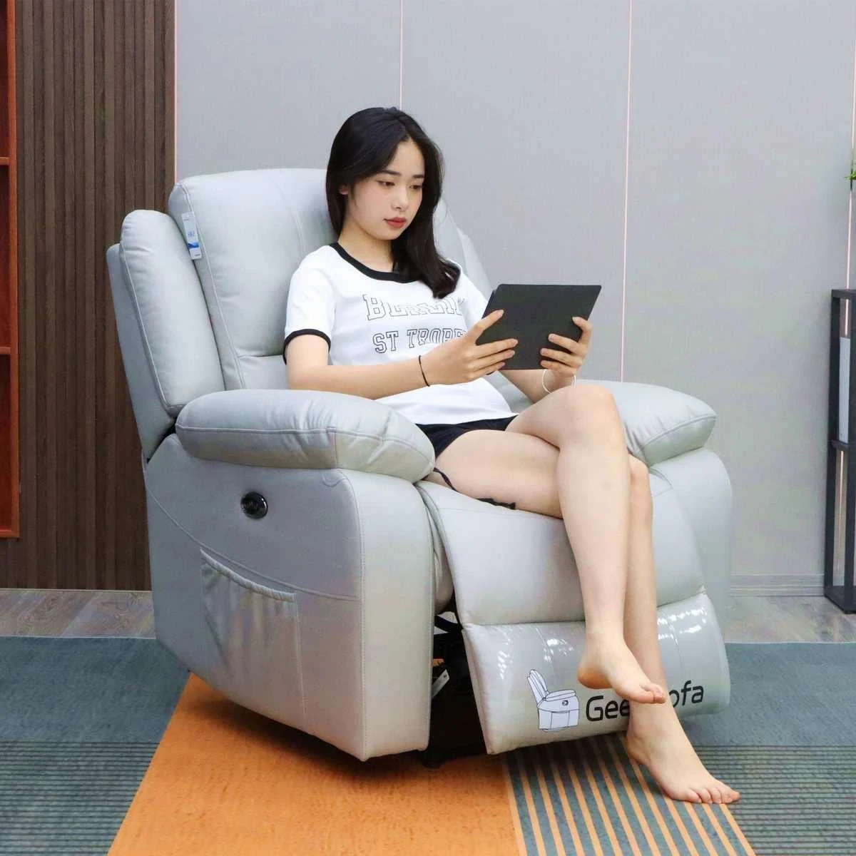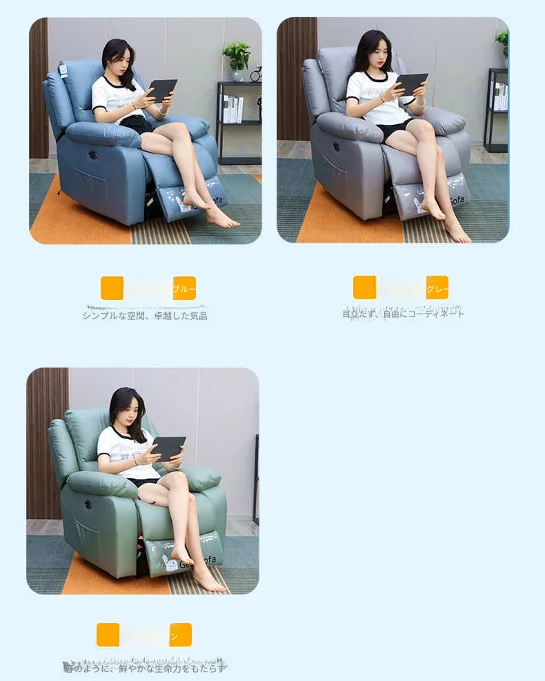 リビングルームに最適!宇宙船デザインの一人用電動ソファ。多機能でリクライニング可能、マッサージ機能付きのシンプルでスタイリッシュなリラックスチェア。あなたのくつろぎタイムを格上げします!
