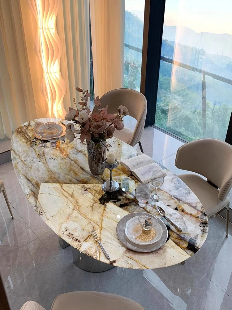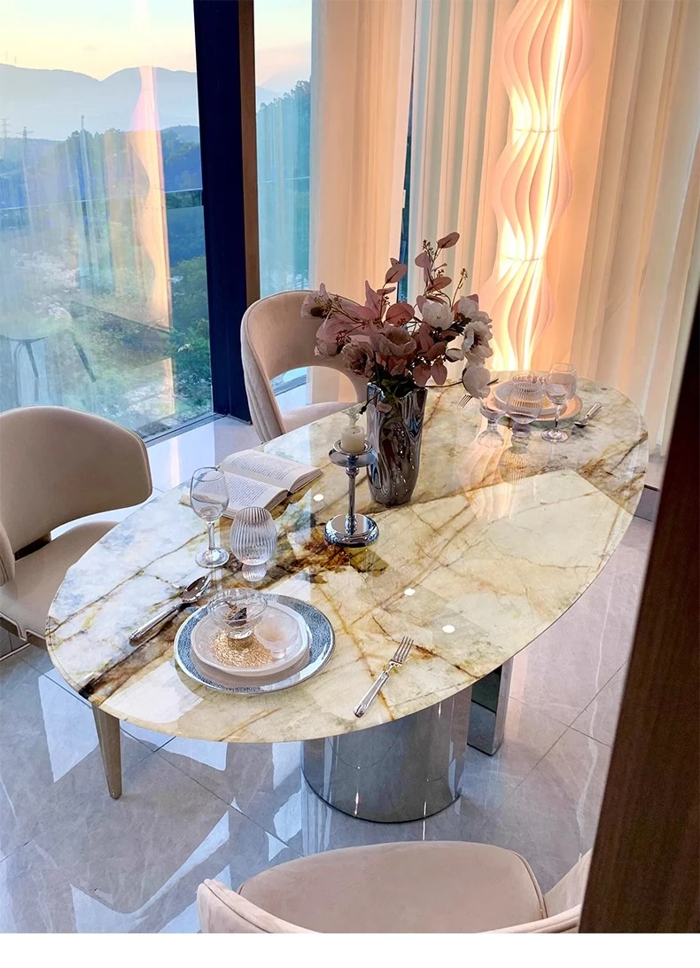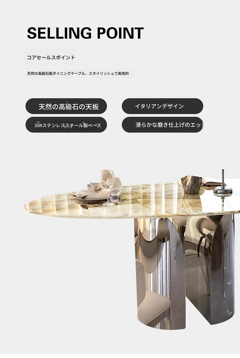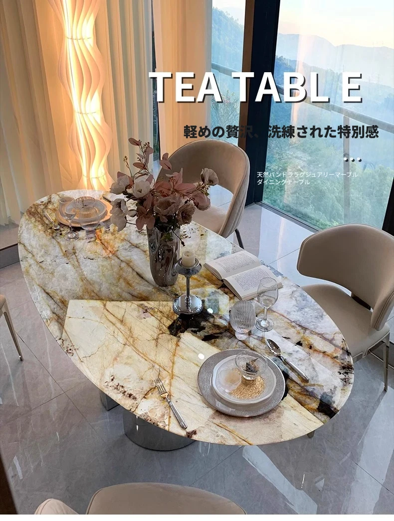 天然パンドララグジュアリーストーンダイニングテーブル 高級感漂う水滴型デザイン テーブルで特別な食事体験を!軽やかなスタイルで、インテリアに最適な一品です。