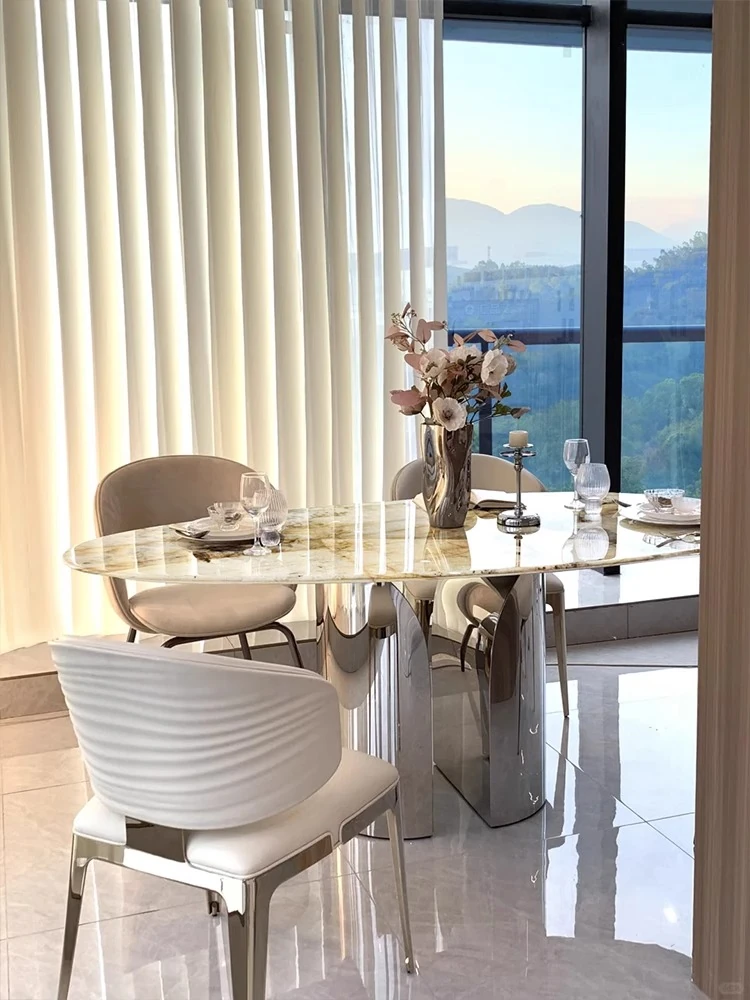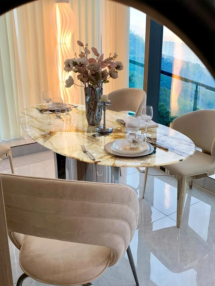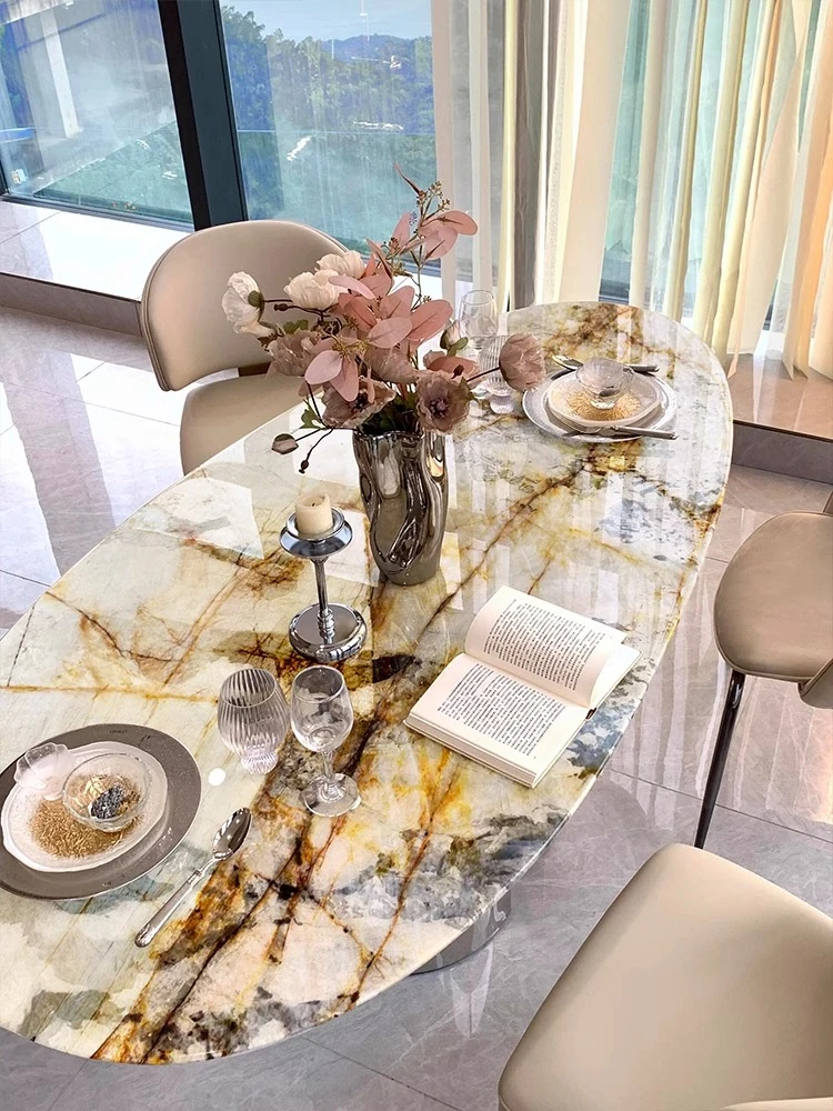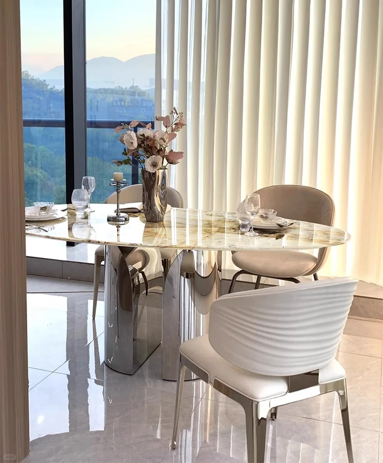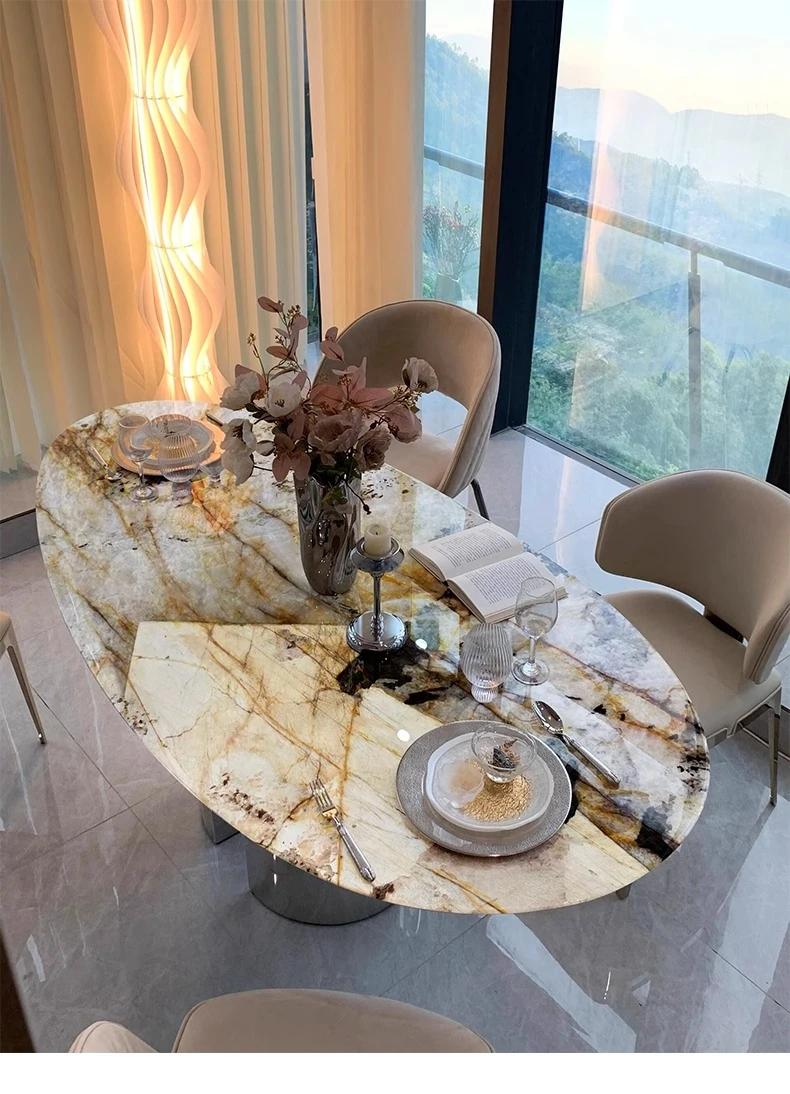 天然パンドララグジュアリーストーンダイニングテーブル 高級感漂う水滴型デザイン テーブルで特別な食事体験を!軽やかなスタイルで、インテリアに最適な一品です。