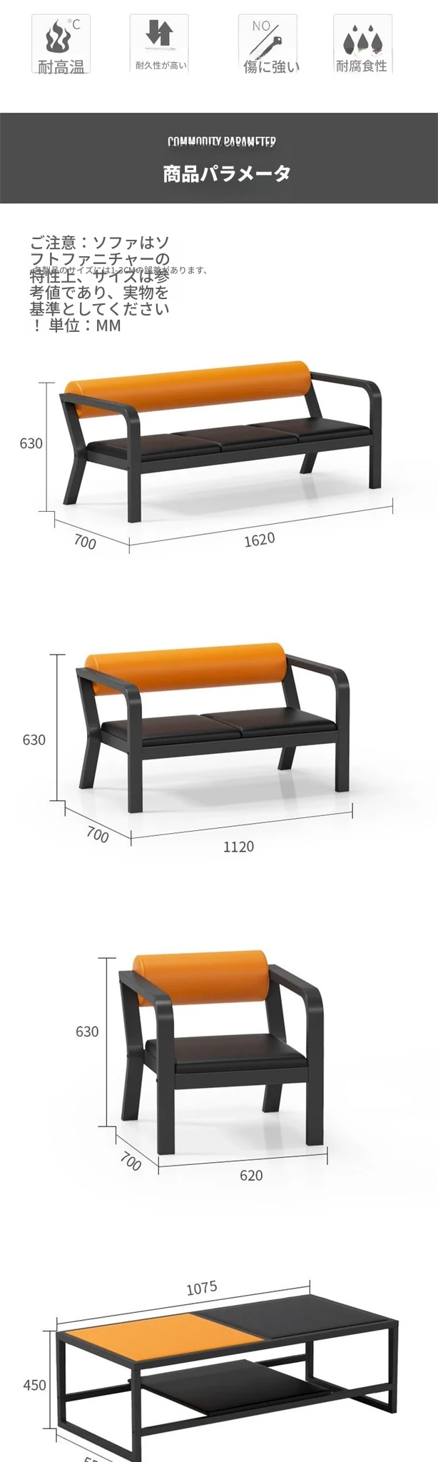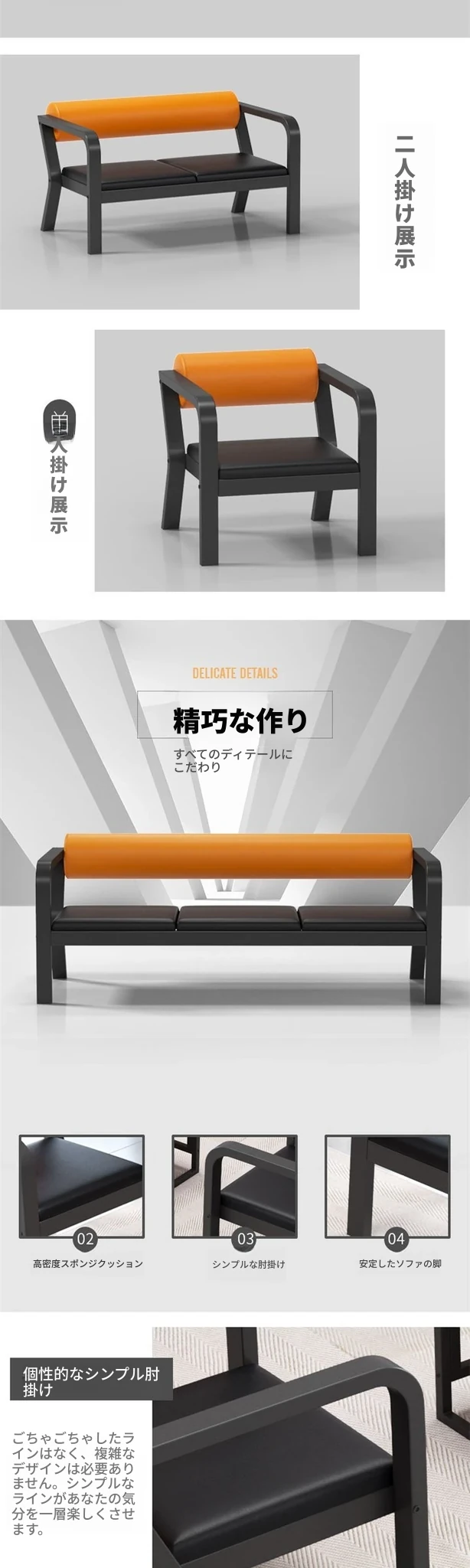 アイアン製オフィスソファ - シンプルでラグジュアリーなデザイン!リビングやオフィスにぴったりのクリエイティブで個性的な3人掛けビジネス接待ソファ。お洒落な空間を演出し、商談やリラックスしたひとときを提供します。