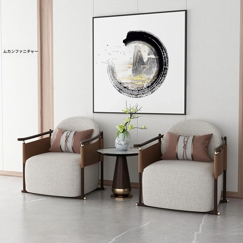 新中式デザインの無垢材ソファセット|現代的なリビングやバルコニーにぴったり!シンプルで高級感あふれるホワイトアッシュの家具で、上質な空間を演出します。あなたの別荘に最適な選択です!