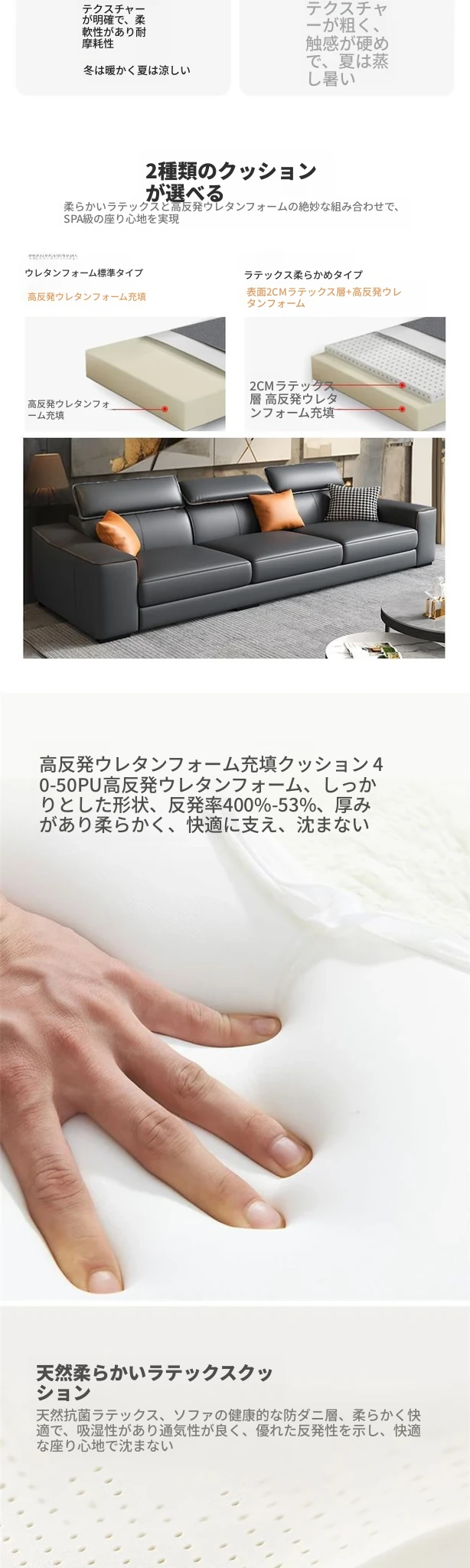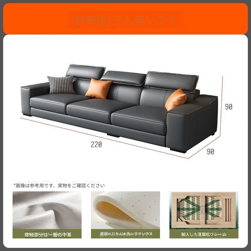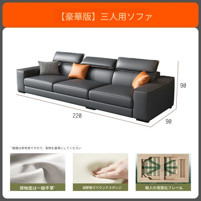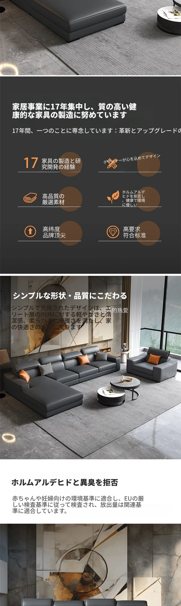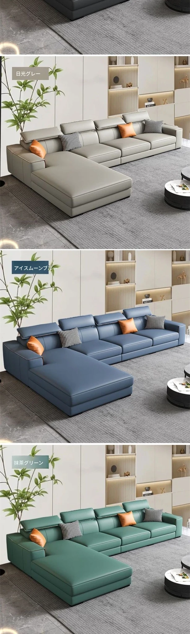 高級本革使用!現代的シンプルデザイン、コンパクトなリビングに最適なM字型コーナー&カウチソファ。快適な座り心地で、上質なひとときを提供します。