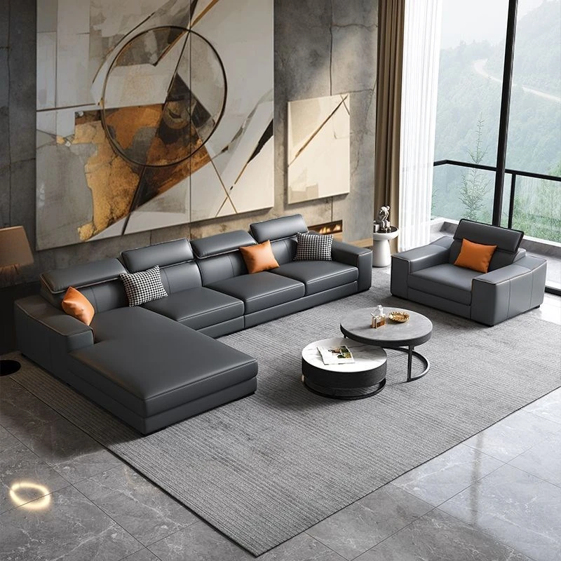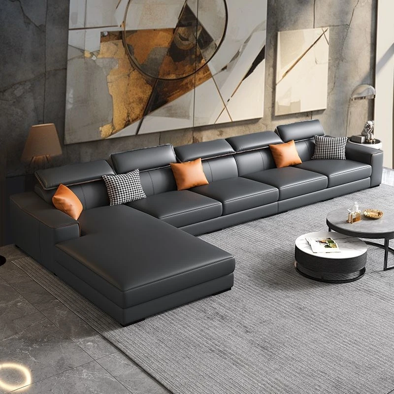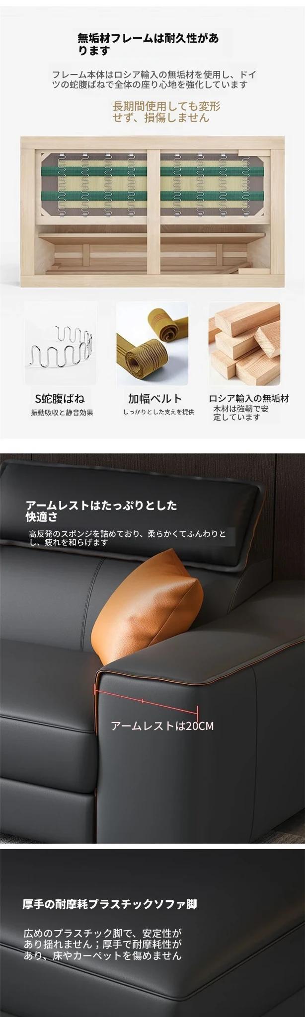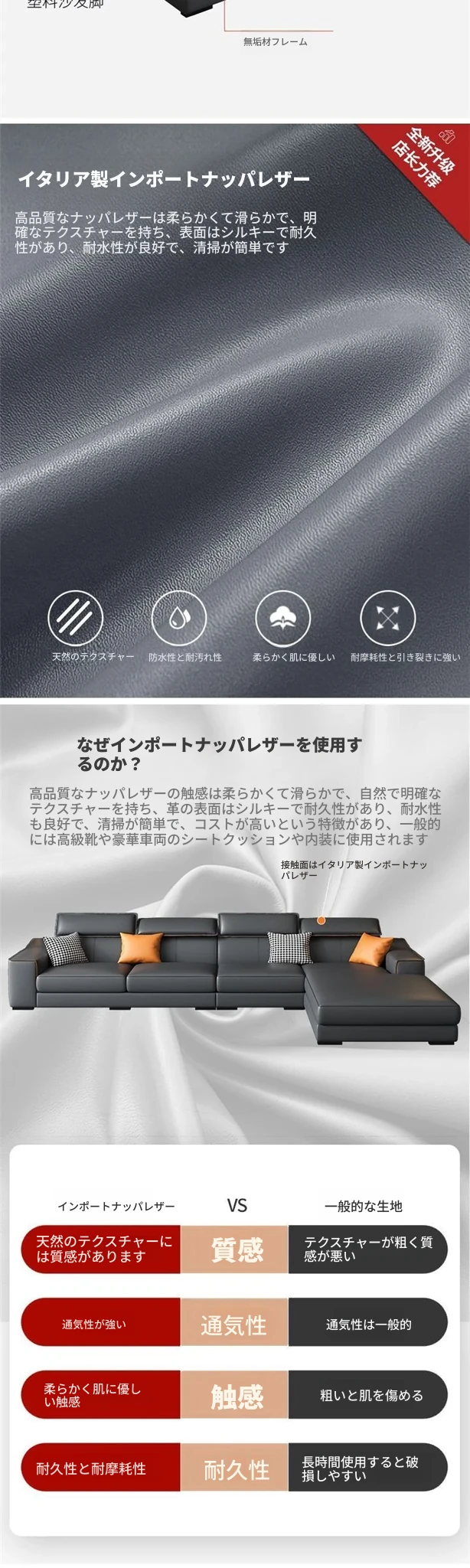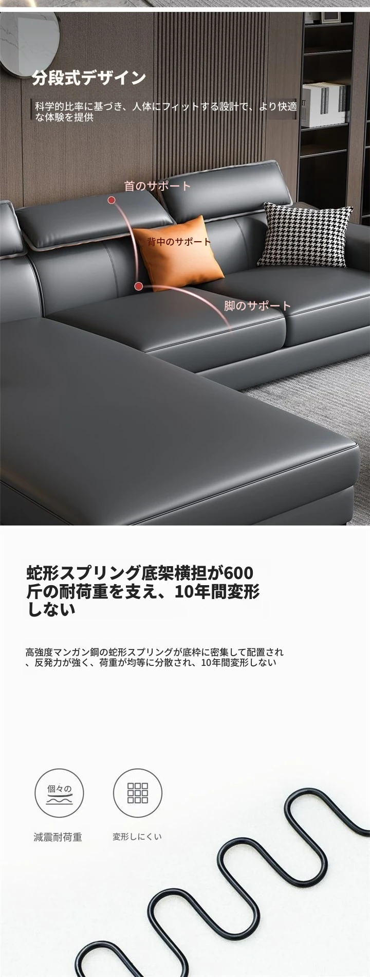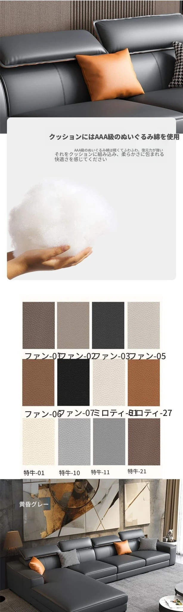 高級本革使用!現代的シンプルデザイン、コンパクトなリビングに最適なM字型コーナー&カウチソファ。快適な座り心地で、上質なひとときを提供します。