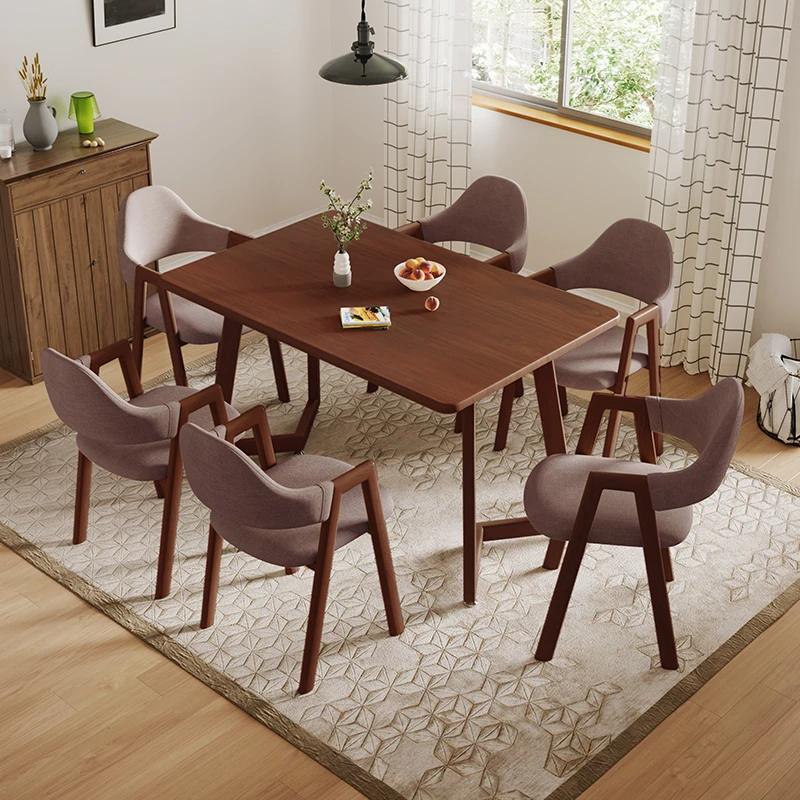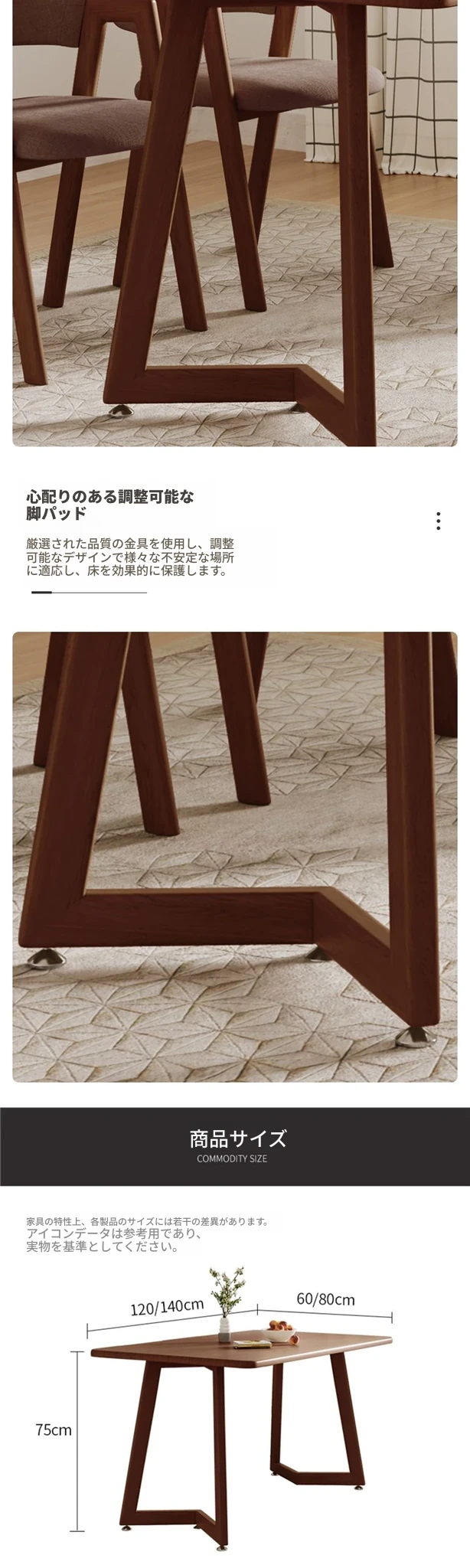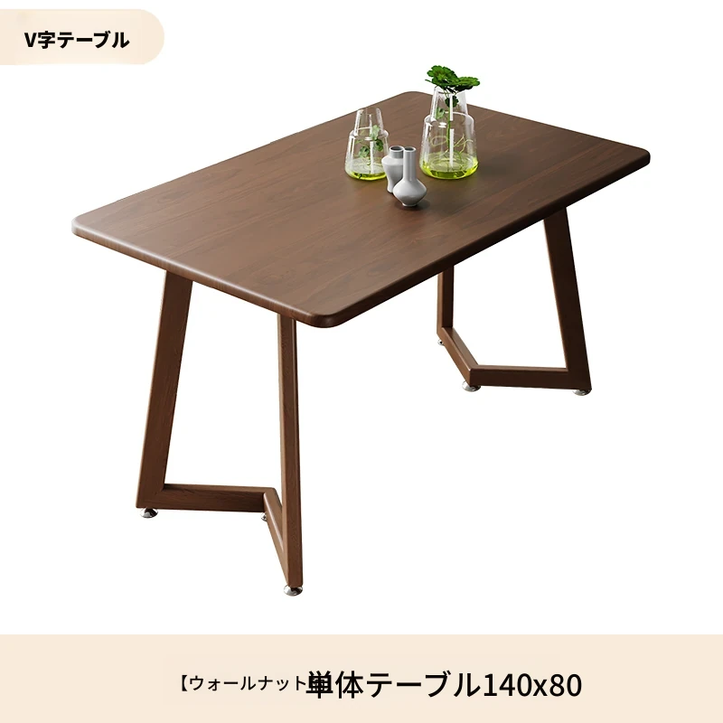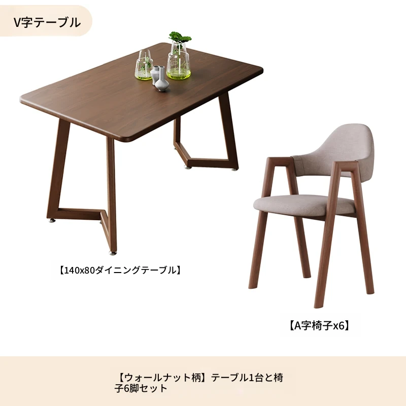 ウォールナットV字140*80+ブラウンA字椅子*6