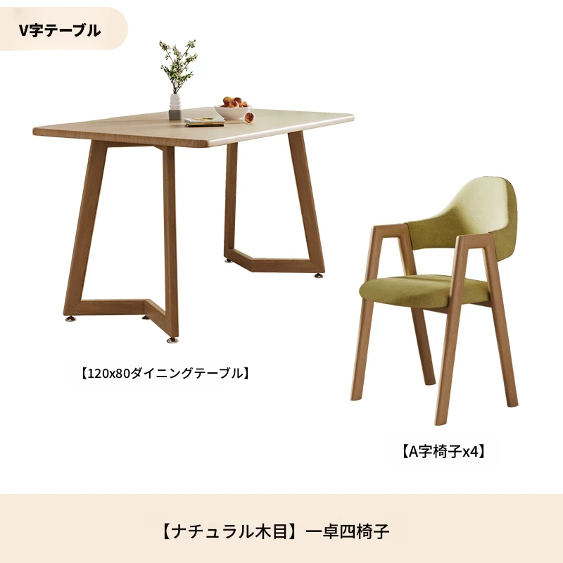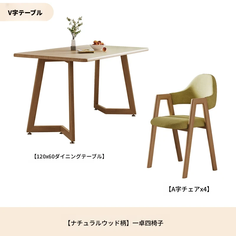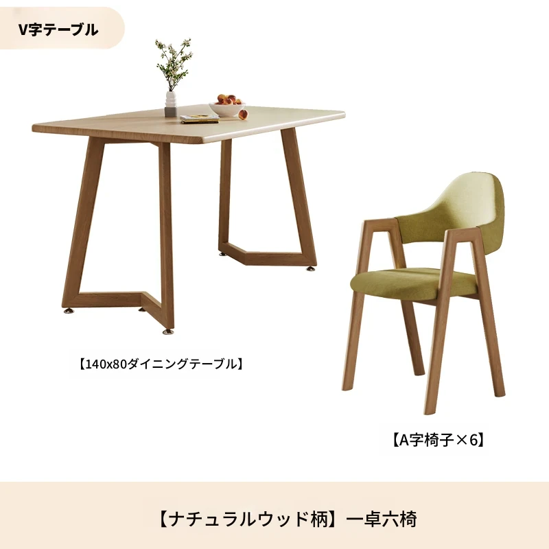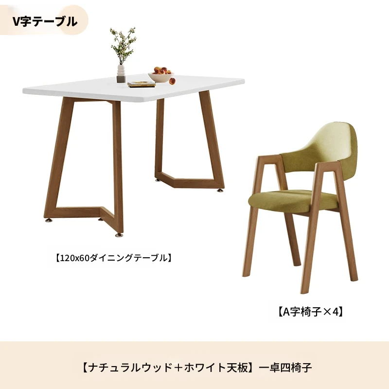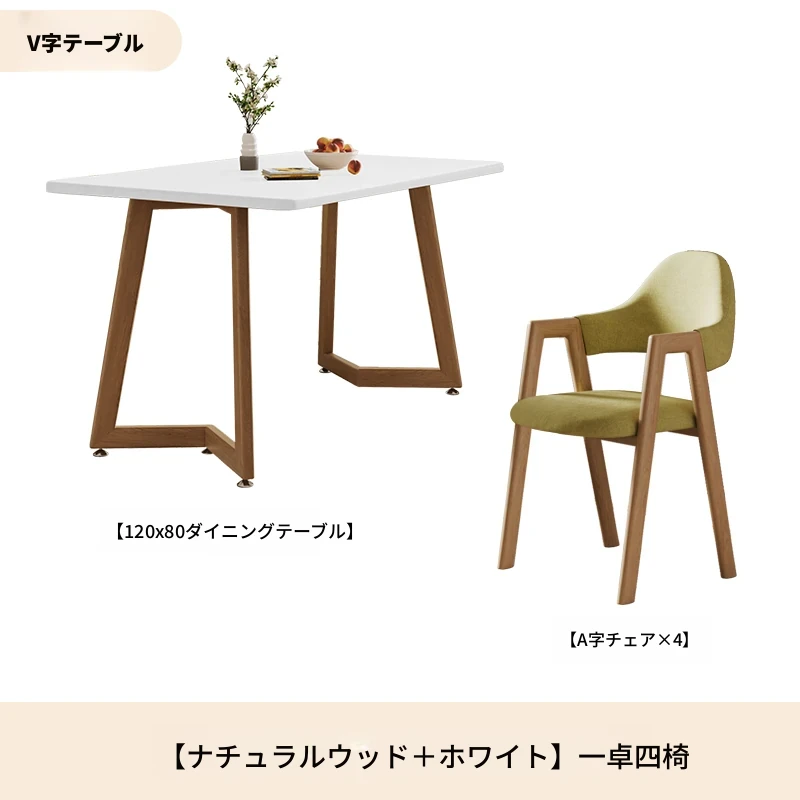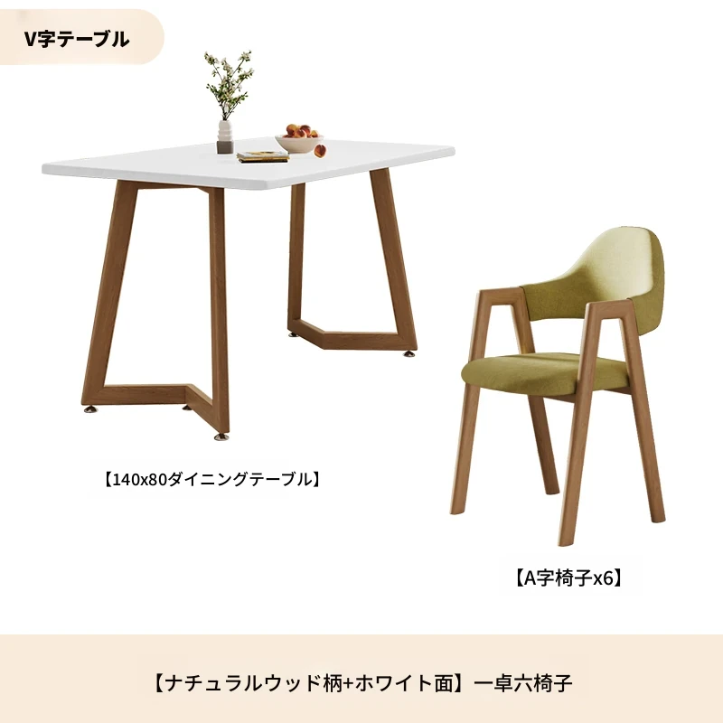 原木ホワイトV字140*80+グリーンA字椅子*6