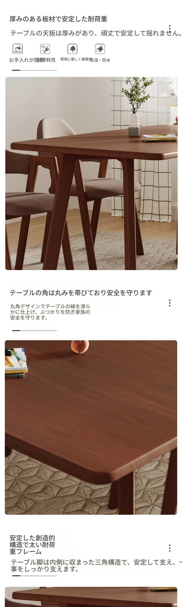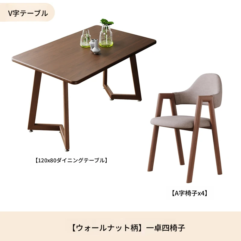 ウォールナットV字120*80+ブラウンA字椅子*4