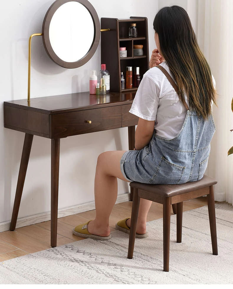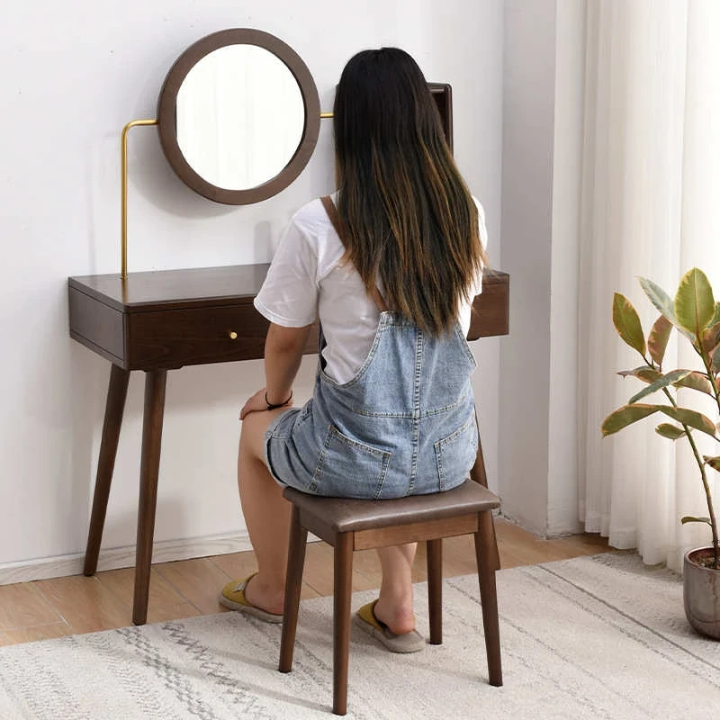 モダンでシンプルな天然木製ドレッシングスツール、柔らかいクッション付き!寝室や書斎にぴったりの北欧スタイル、人気の化粧スツール。快適さとデザイン性を兼ね備えた一品です。