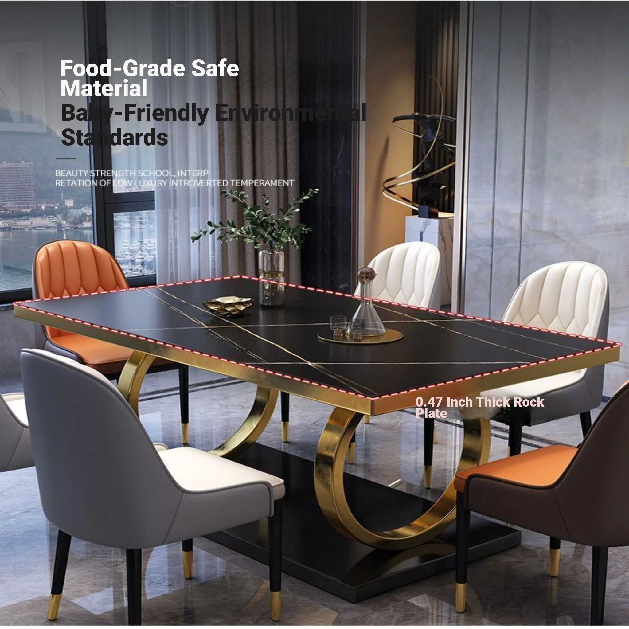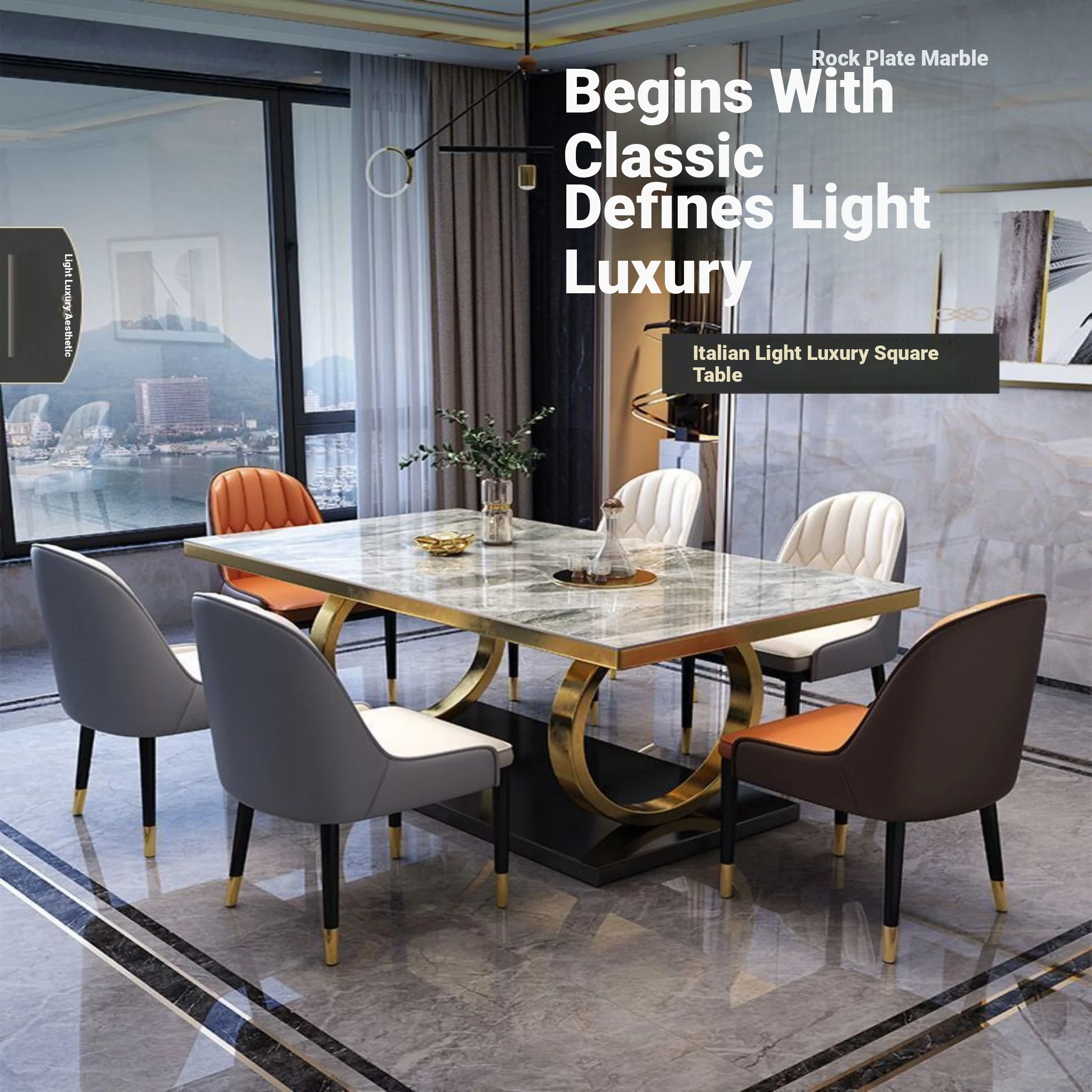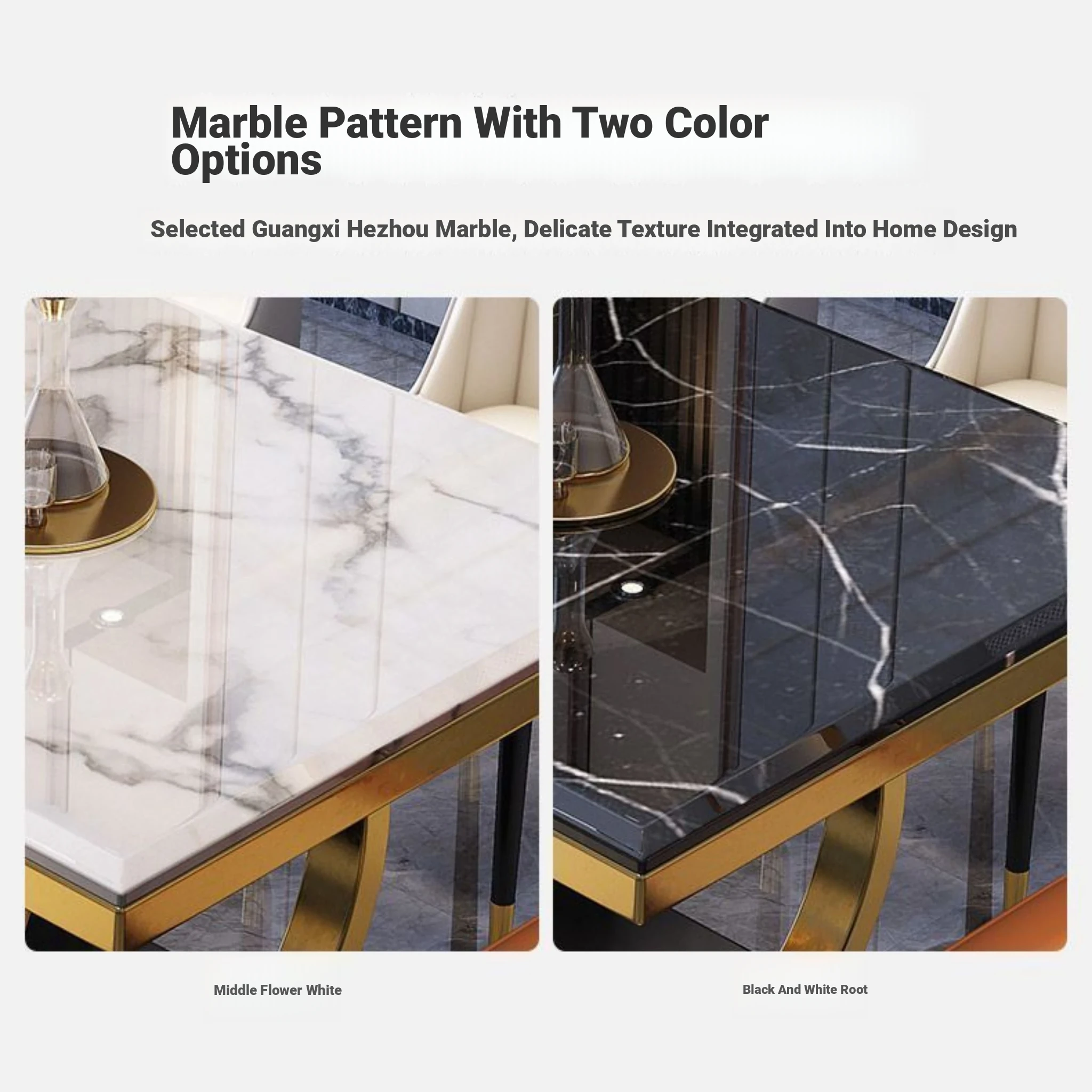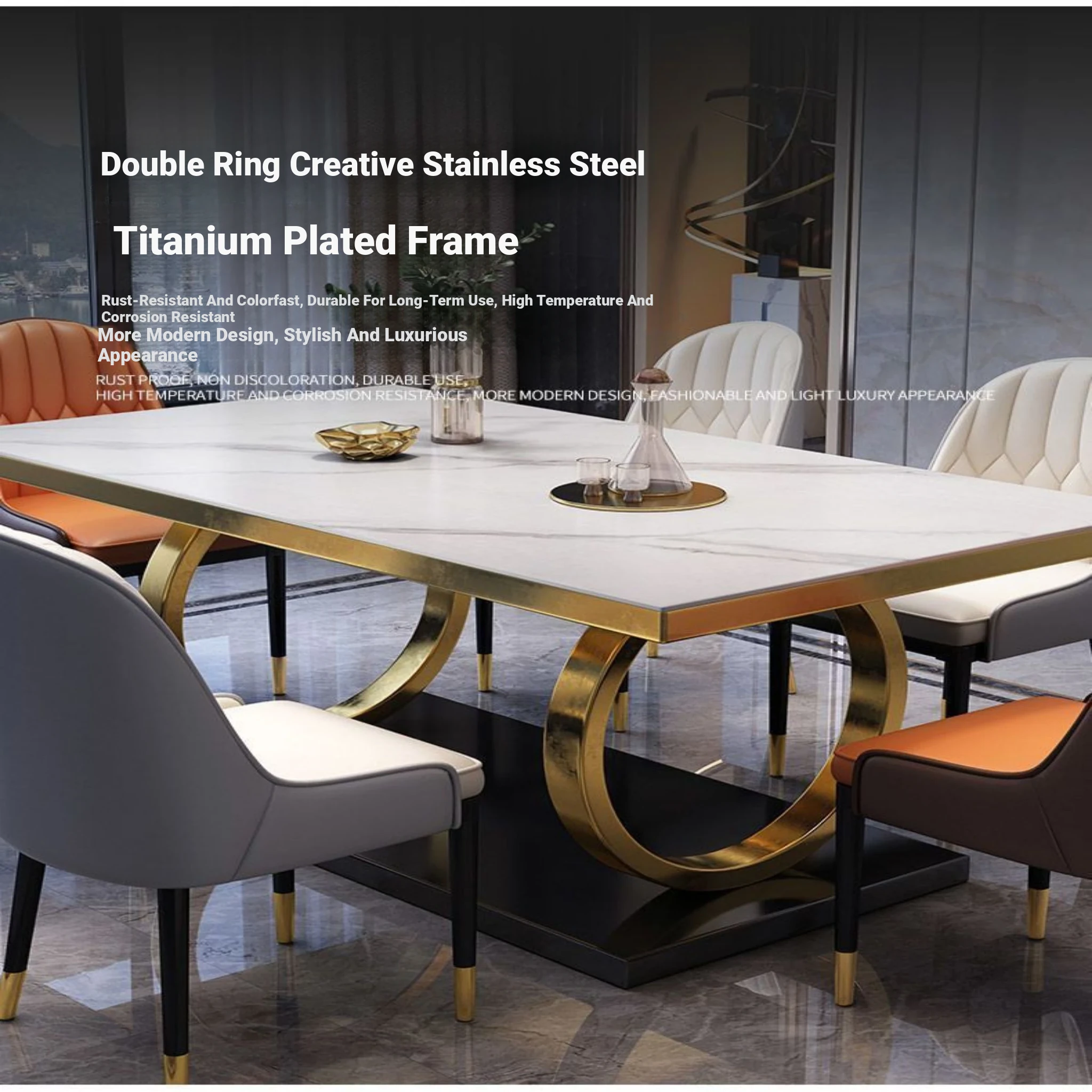 Modern Rectangular Marble Dining Table Set with Chairs - Space-Saving Design for Small Homes, Stainless Steel Legs, Elegant and Durable for Western Dining Experience