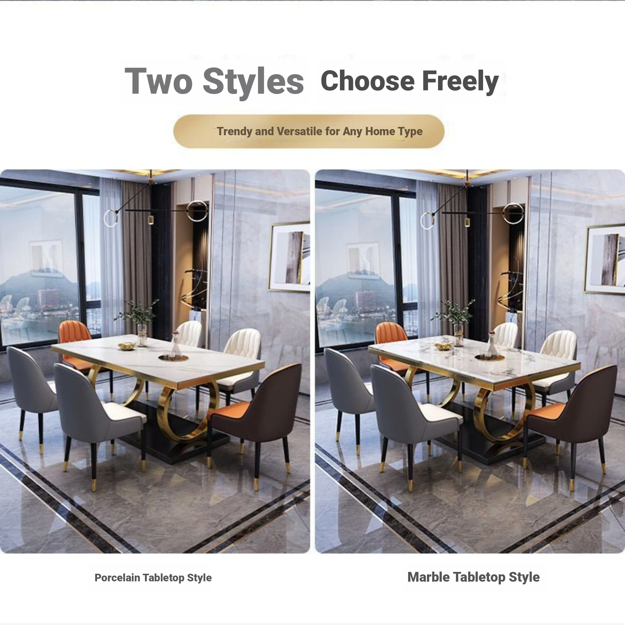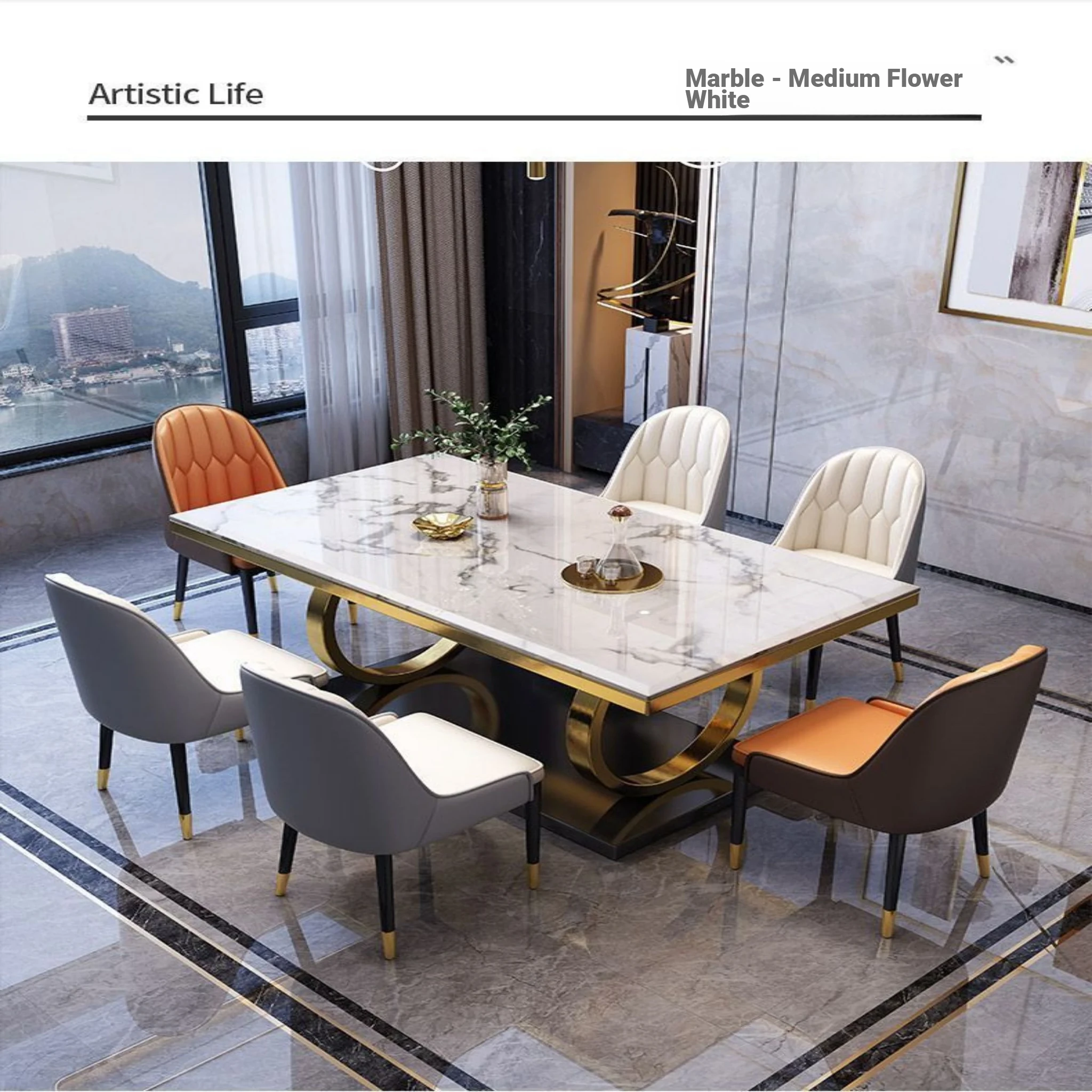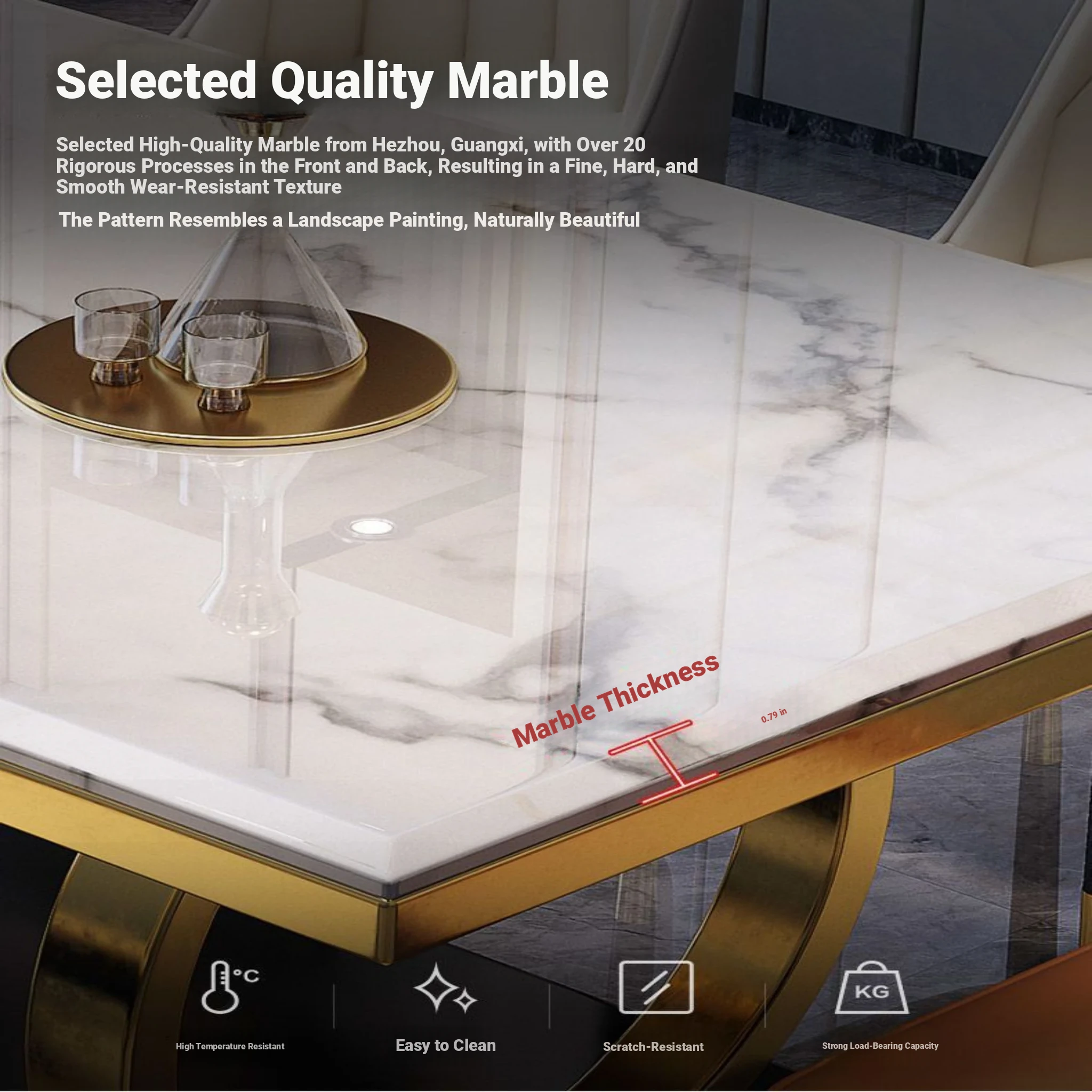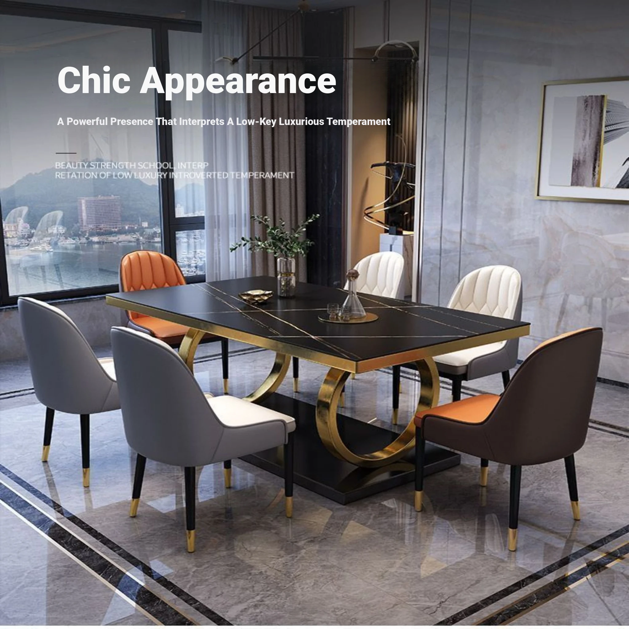 Modern Rectangular Marble Dining Table Set with Chairs - Space-Saving Design for Small Homes, Stainless Steel Legs, Elegant and Durable for Western Dining Experience