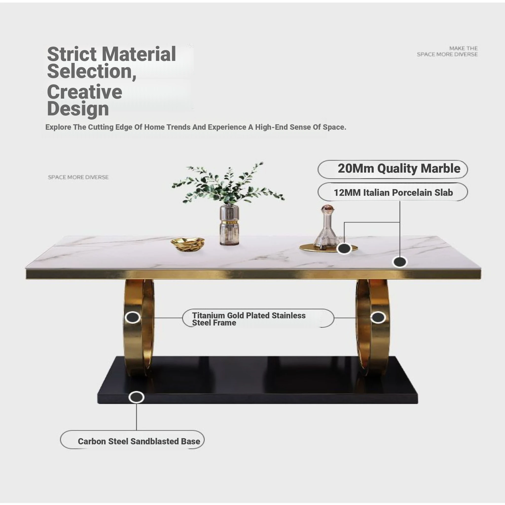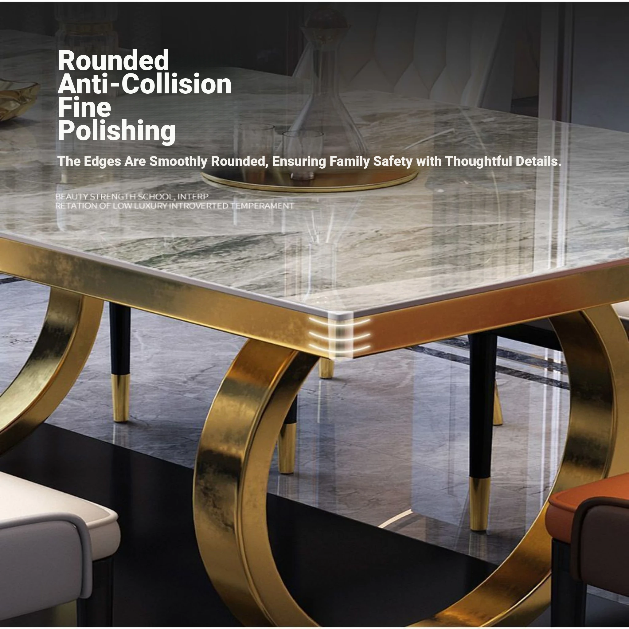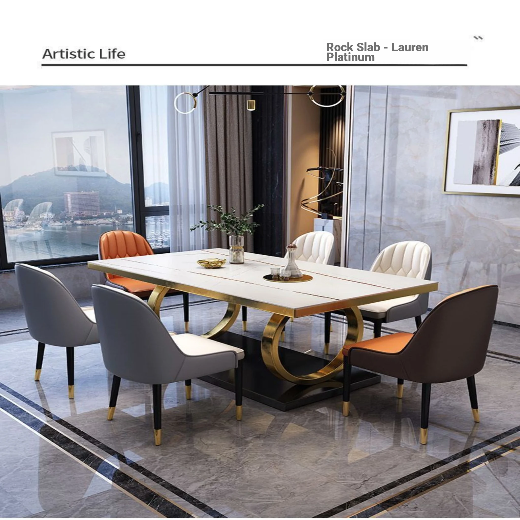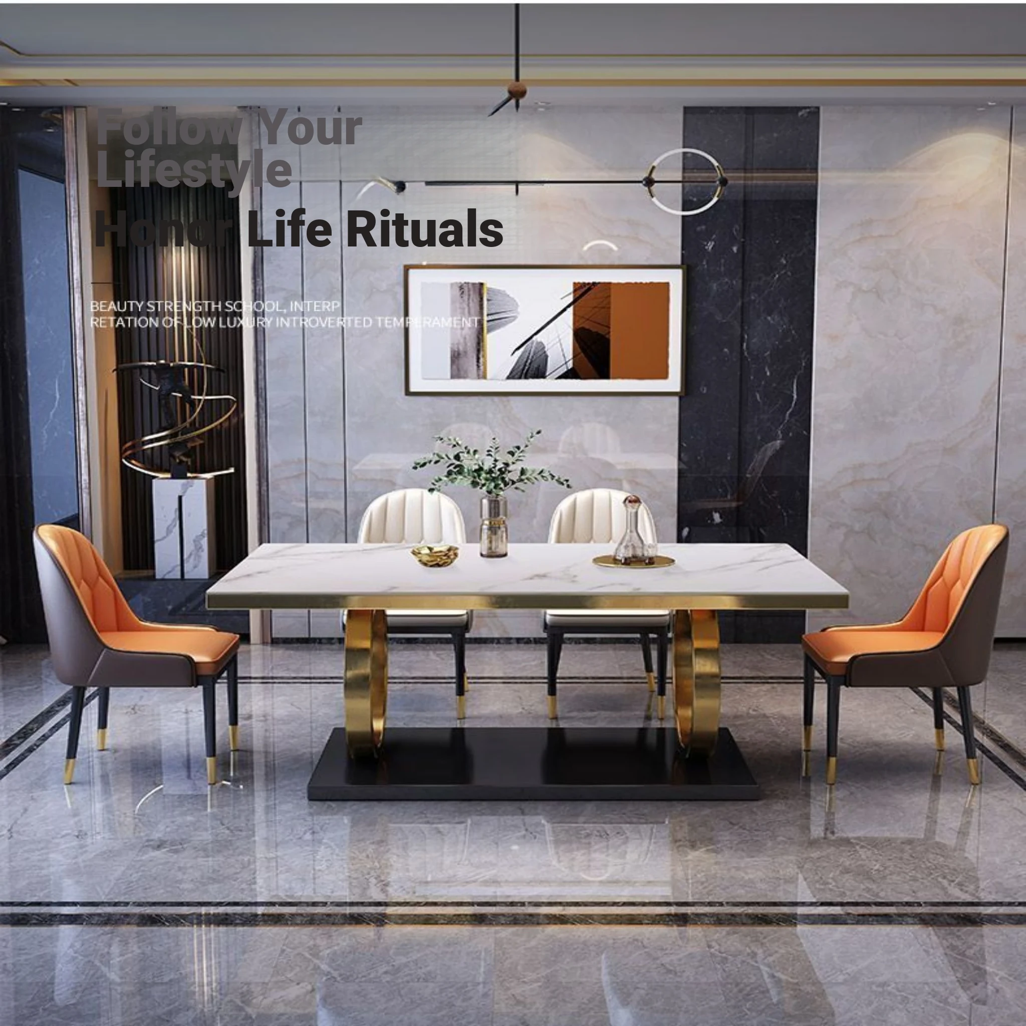 Modern Rectangular Marble Dining Table Set with Chairs - Space-Saving Design for Small Homes, Stainless Steel Legs, Elegant and Durable for Western Dining Experience