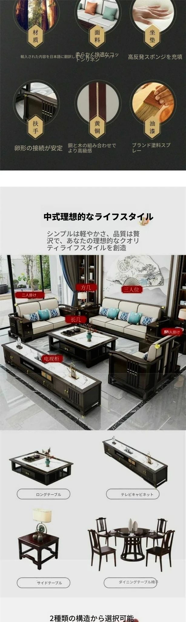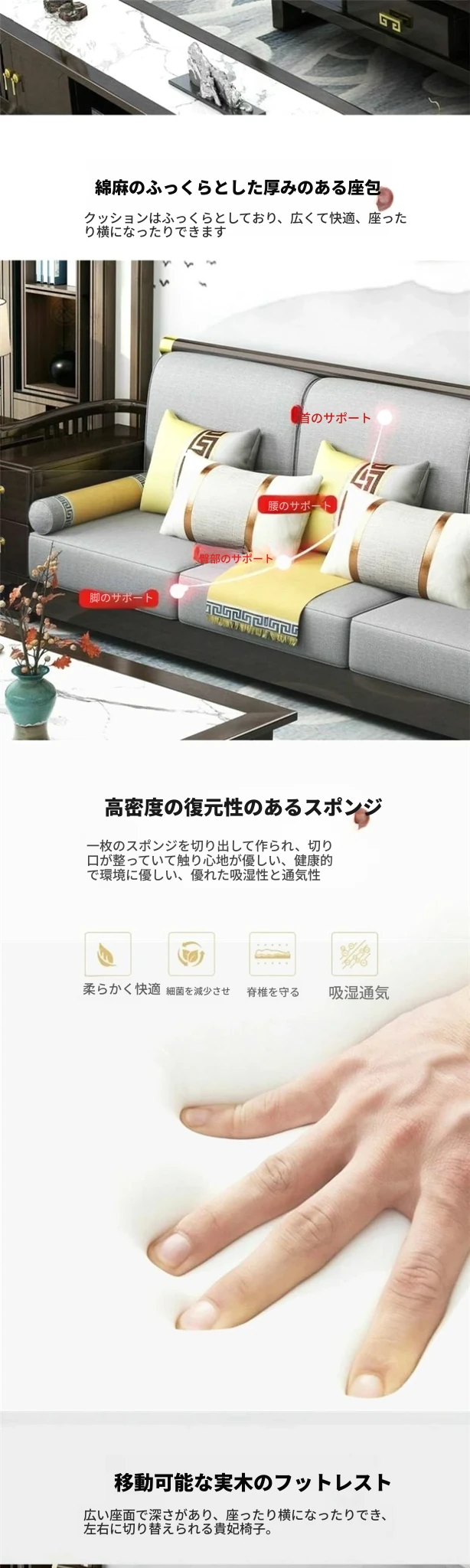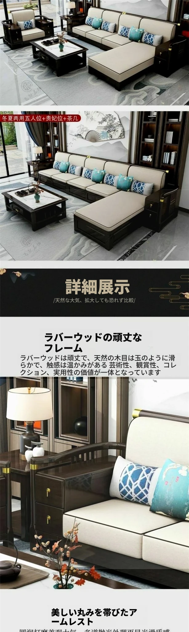 新中式スタイルの全実木製ソファーセット|大小様々な部屋に最適!冬も夏も快適に使える高品質なリビング家具。お部屋を華やかに彩る洗練されたデザイン!