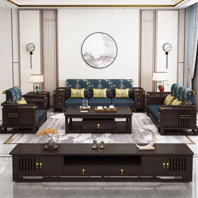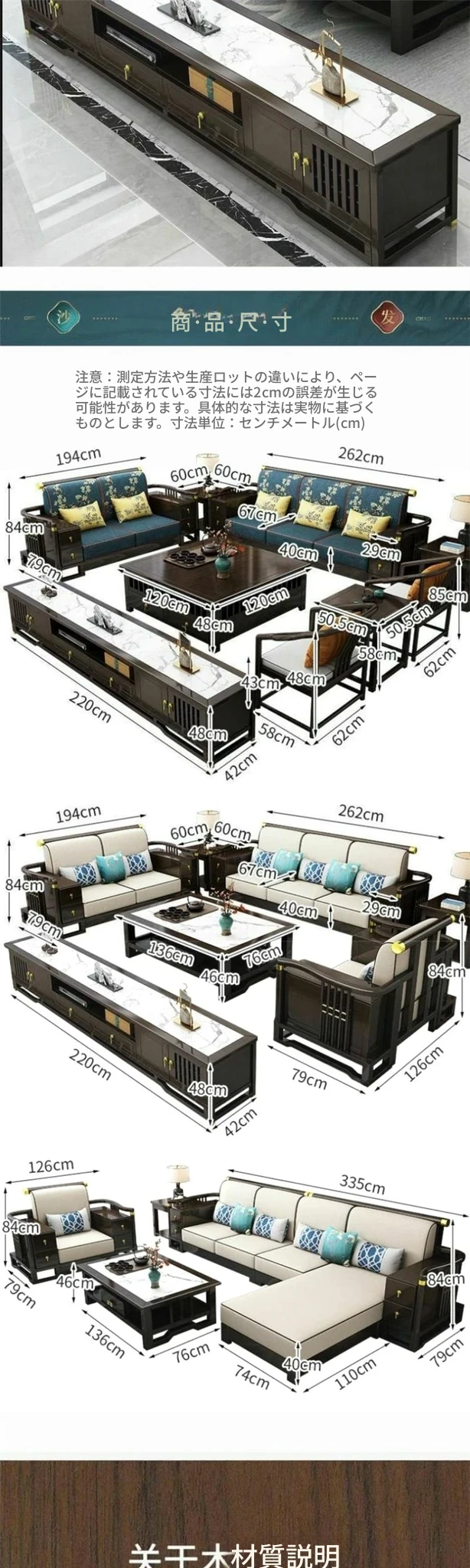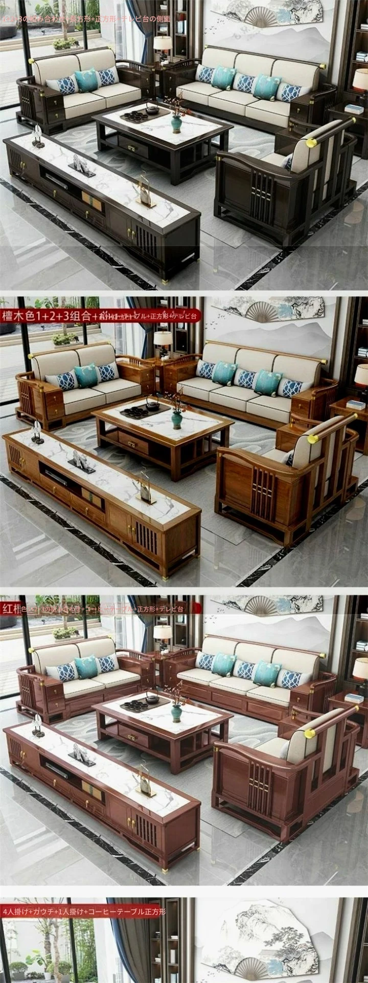 新中式スタイルの全実木製ソファーセット|大小様々な部屋に最適!冬も夏も快適に使える高品質なリビング家具。お部屋を華やかに彩る洗練されたデザイン!