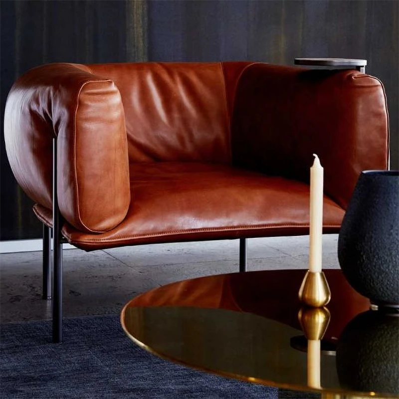 北欧スタイルのラグジュアリーなデザイナーのダウンとレザー製ソファ、シングル&ダブル、広々としたモダンなヴィラのリビングに最適!シンプルで洗練されたデザインで、快適な空間を演出します。