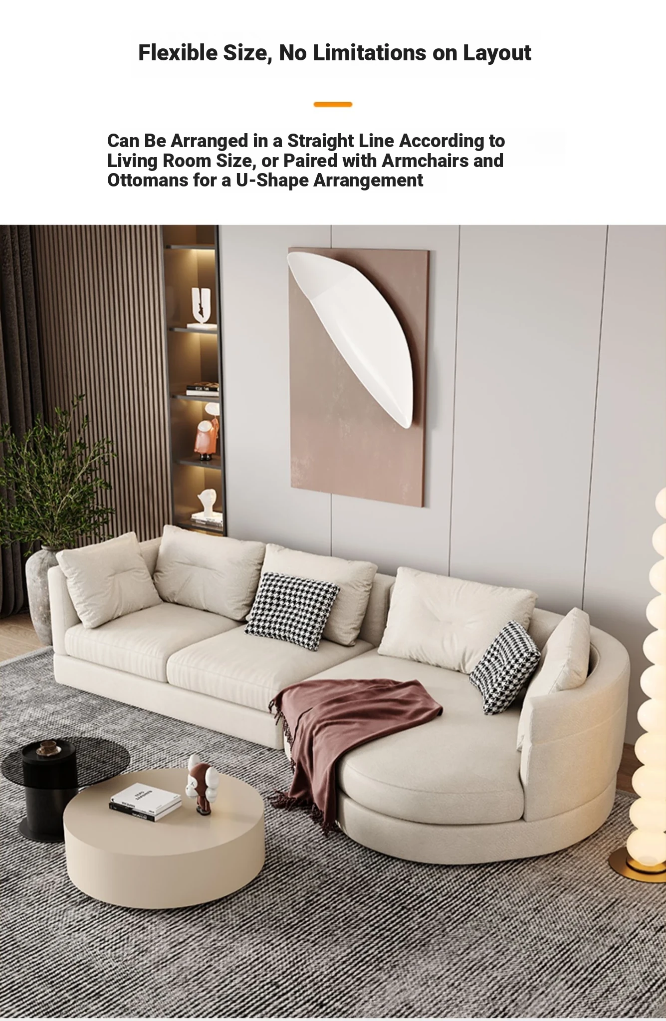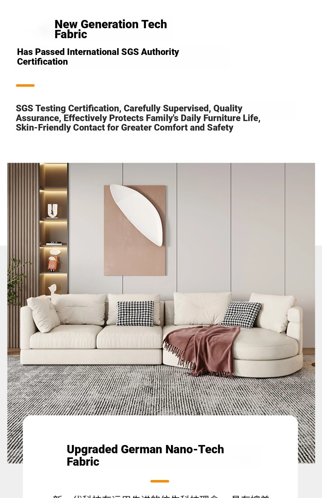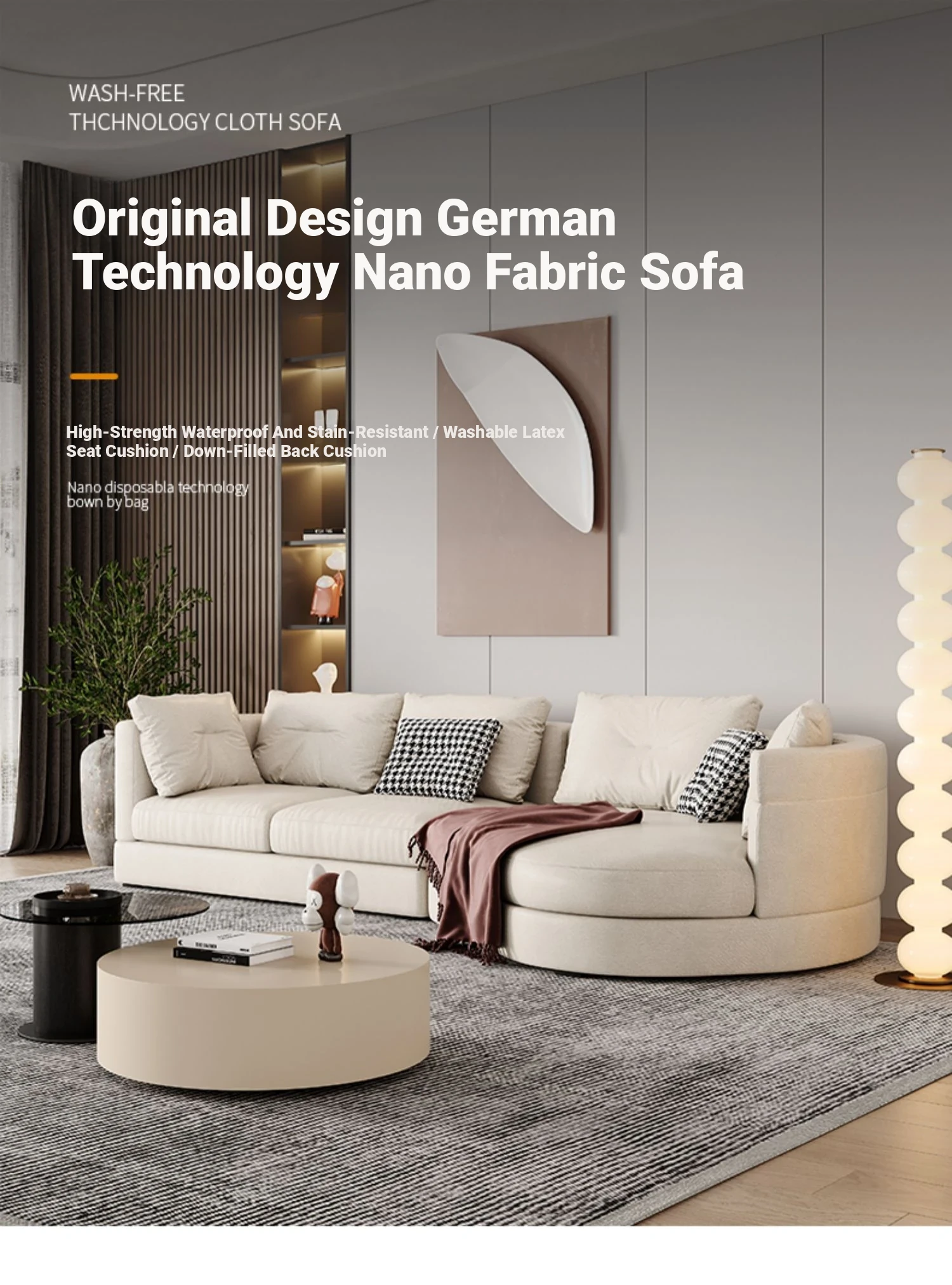 Nordic Modern Minimalist Wabi-Sabi Fabric Sofa - Stylish Chaise Lounge Corner Sofa for Living Room, Ideal for Large Spaces, Featuring Unique Italian-Inspired Design with High-Tech Fabric