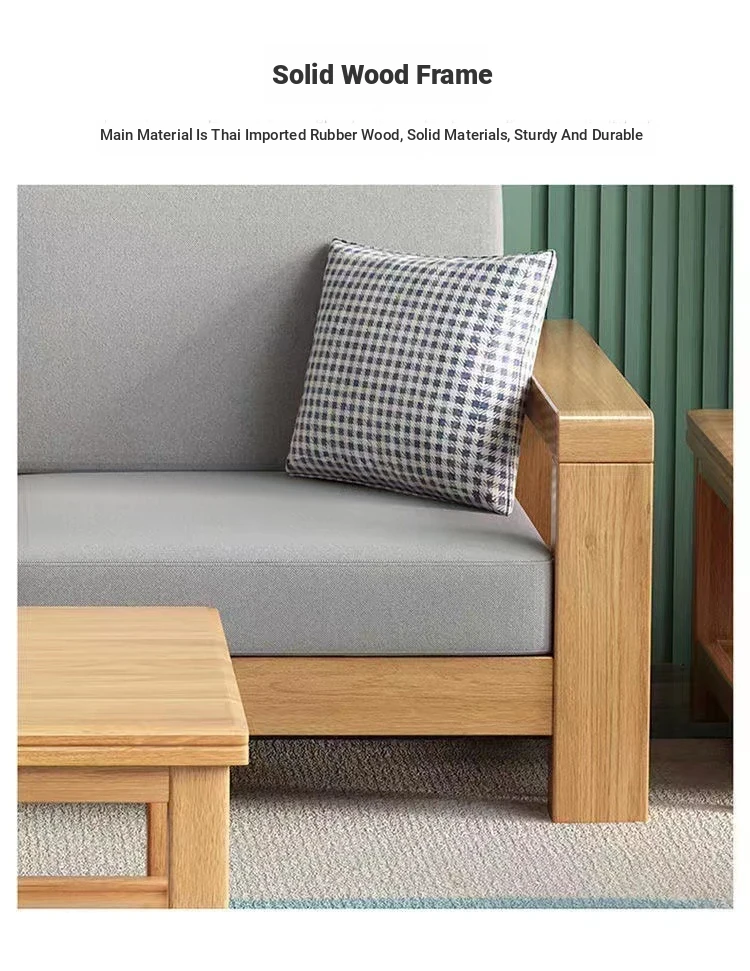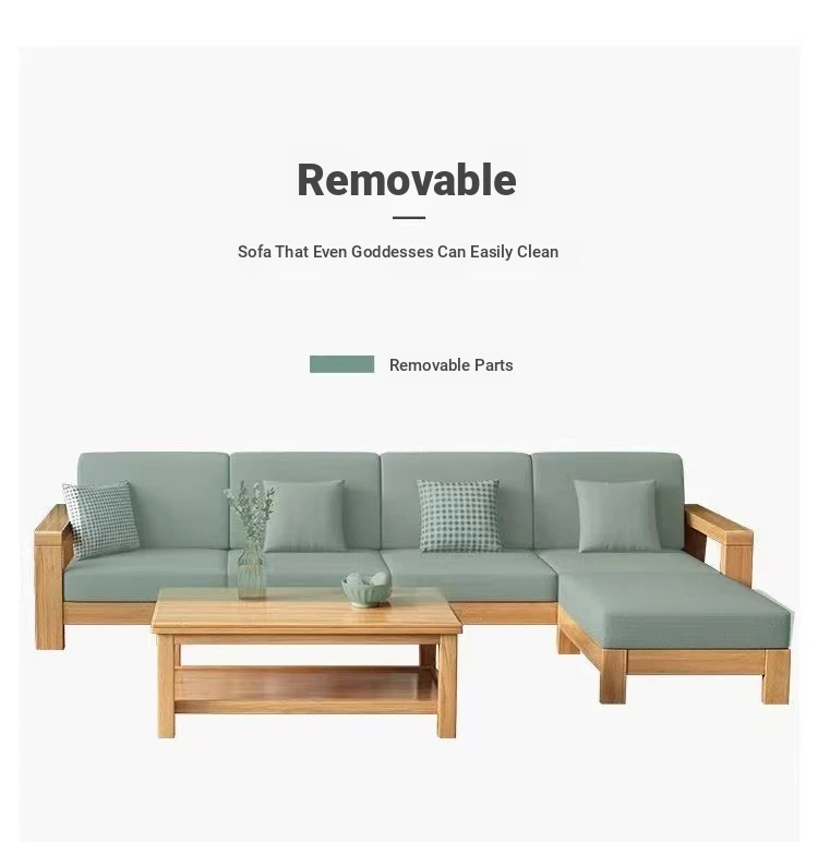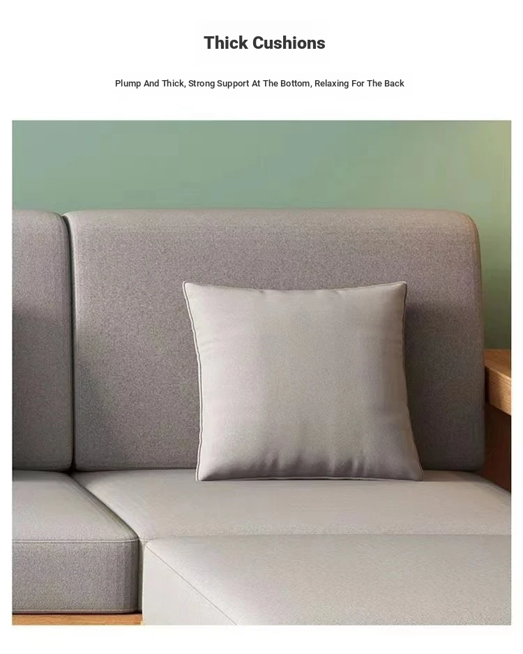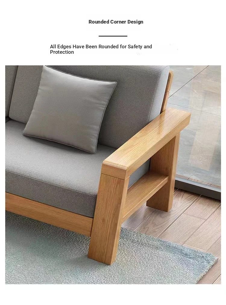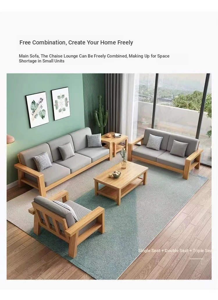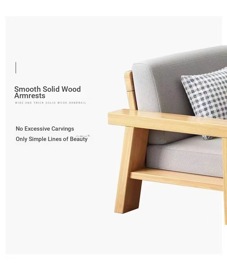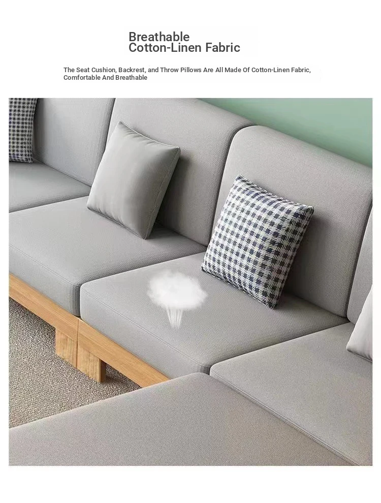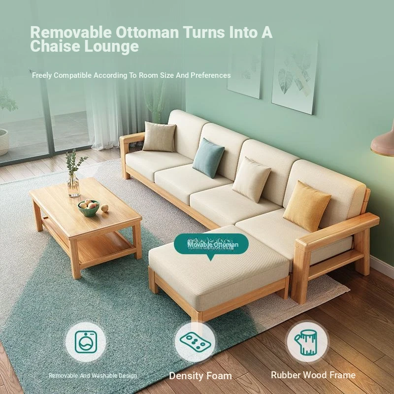Nordic Solid Wood Sofa Set - Removable and Washable Corner Fabric Sofa for Small Spaces, Minimalist Modern Design for Living Rooms, Natural Wood Finish