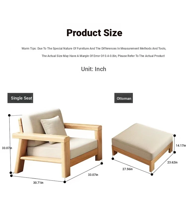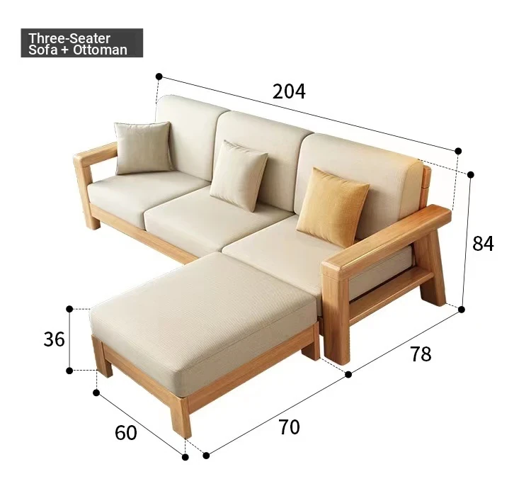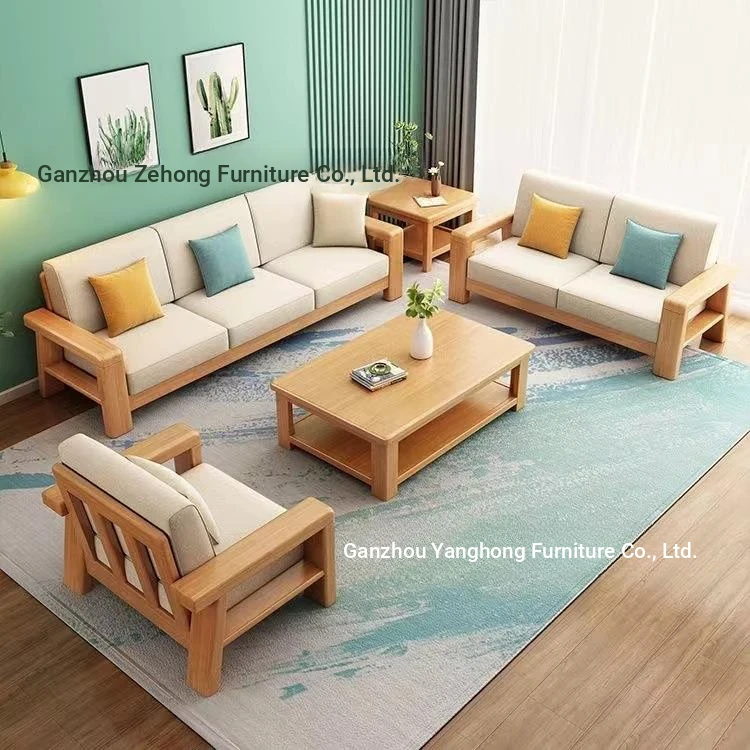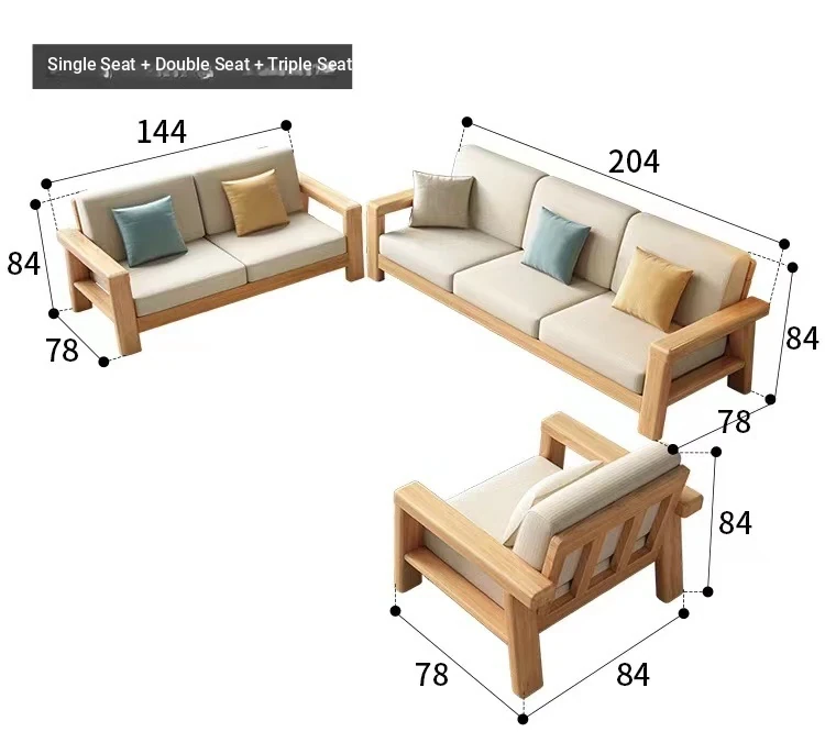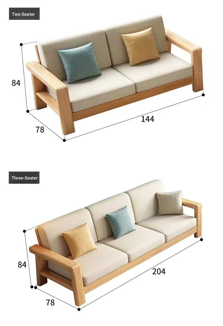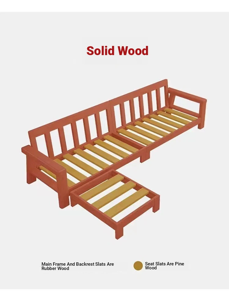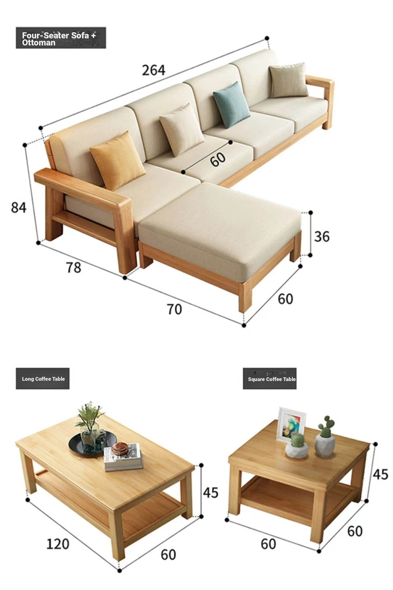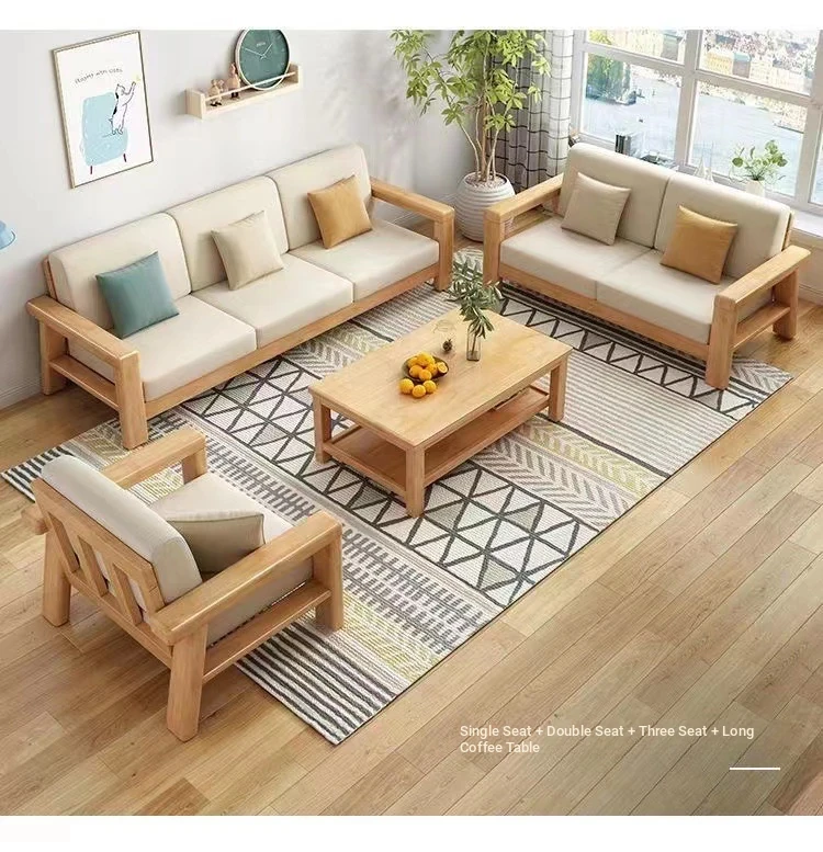 Nordic Solid Wood Sofa Set - Removable and Washable Corner Fabric Sofa for Small Spaces, Minimalist Modern Design for Living Rooms, Natural Wood Finish