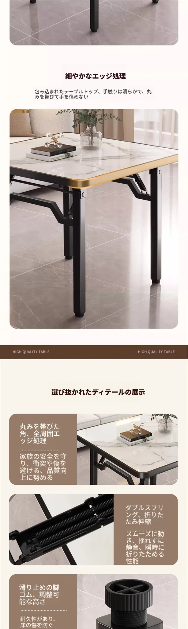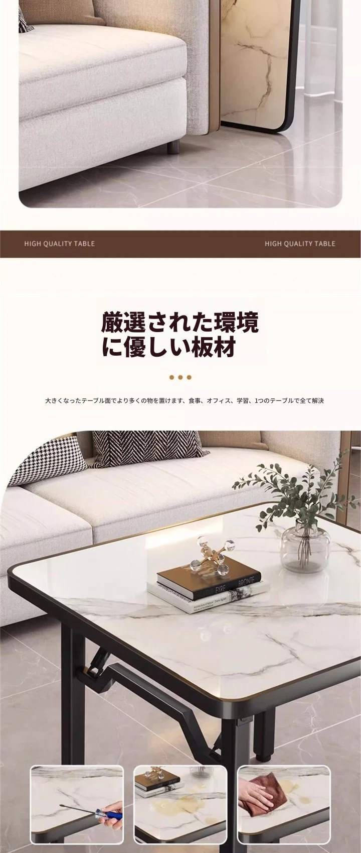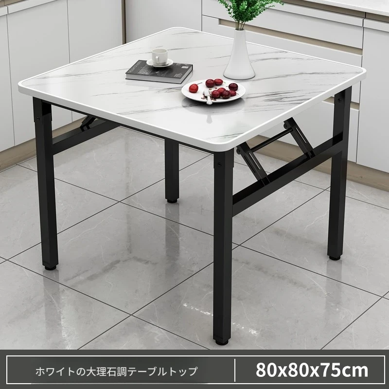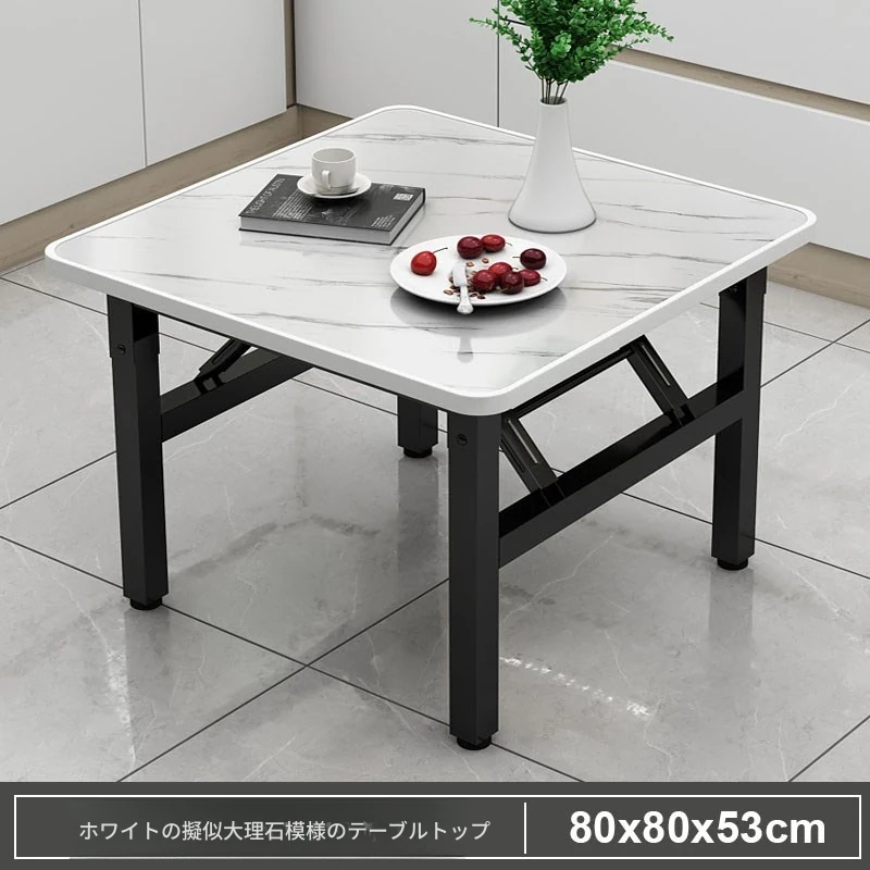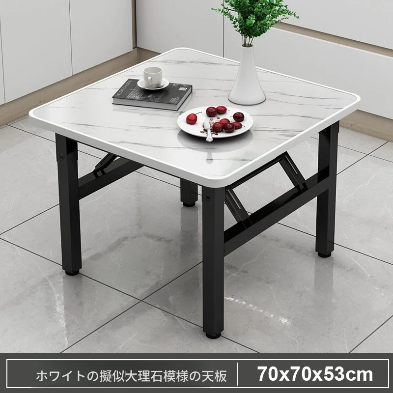 【アップグレード脚部干渉なし】白大理石模様90*90*74cm