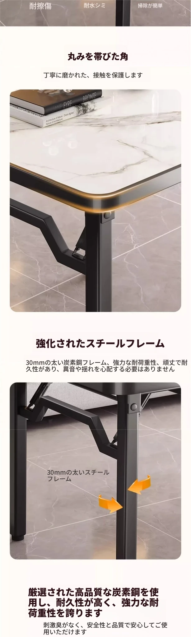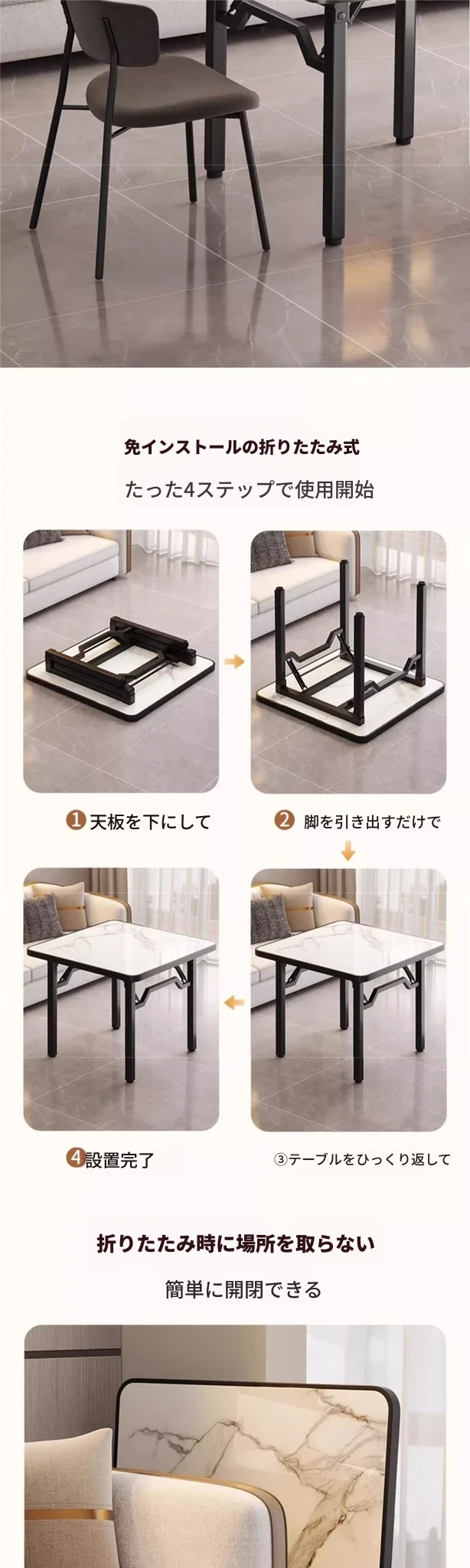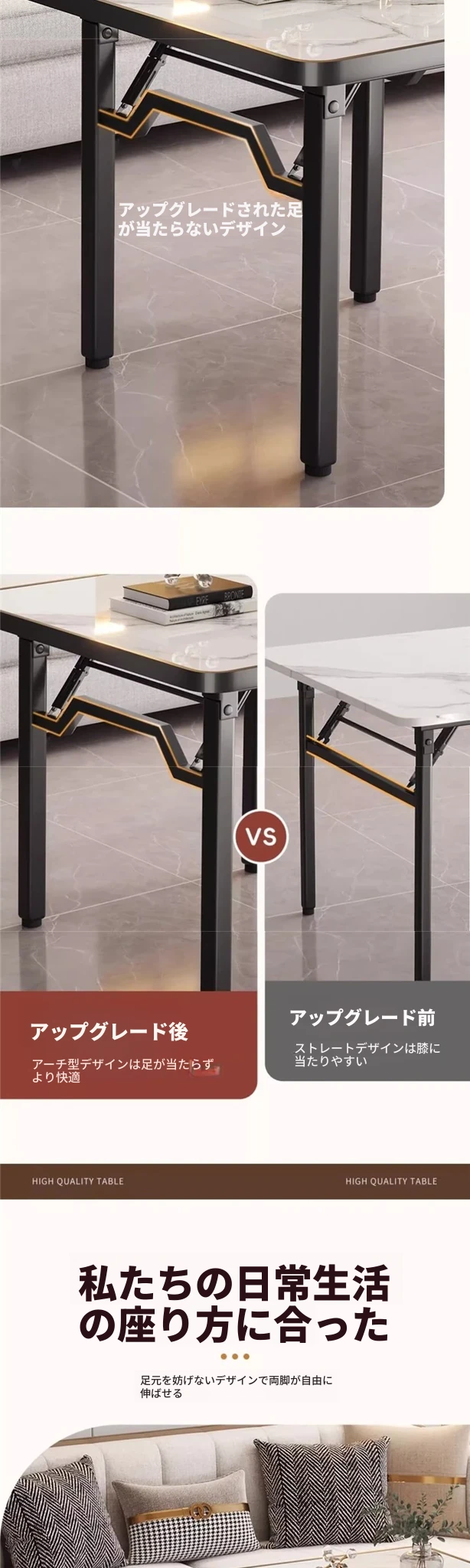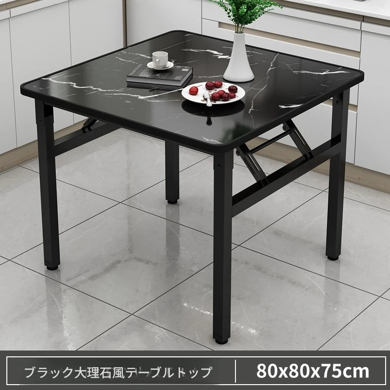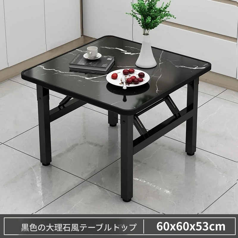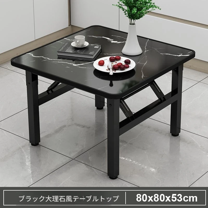 【アップグレード脚部干渉なし】黒大理石模様90*90*74cm