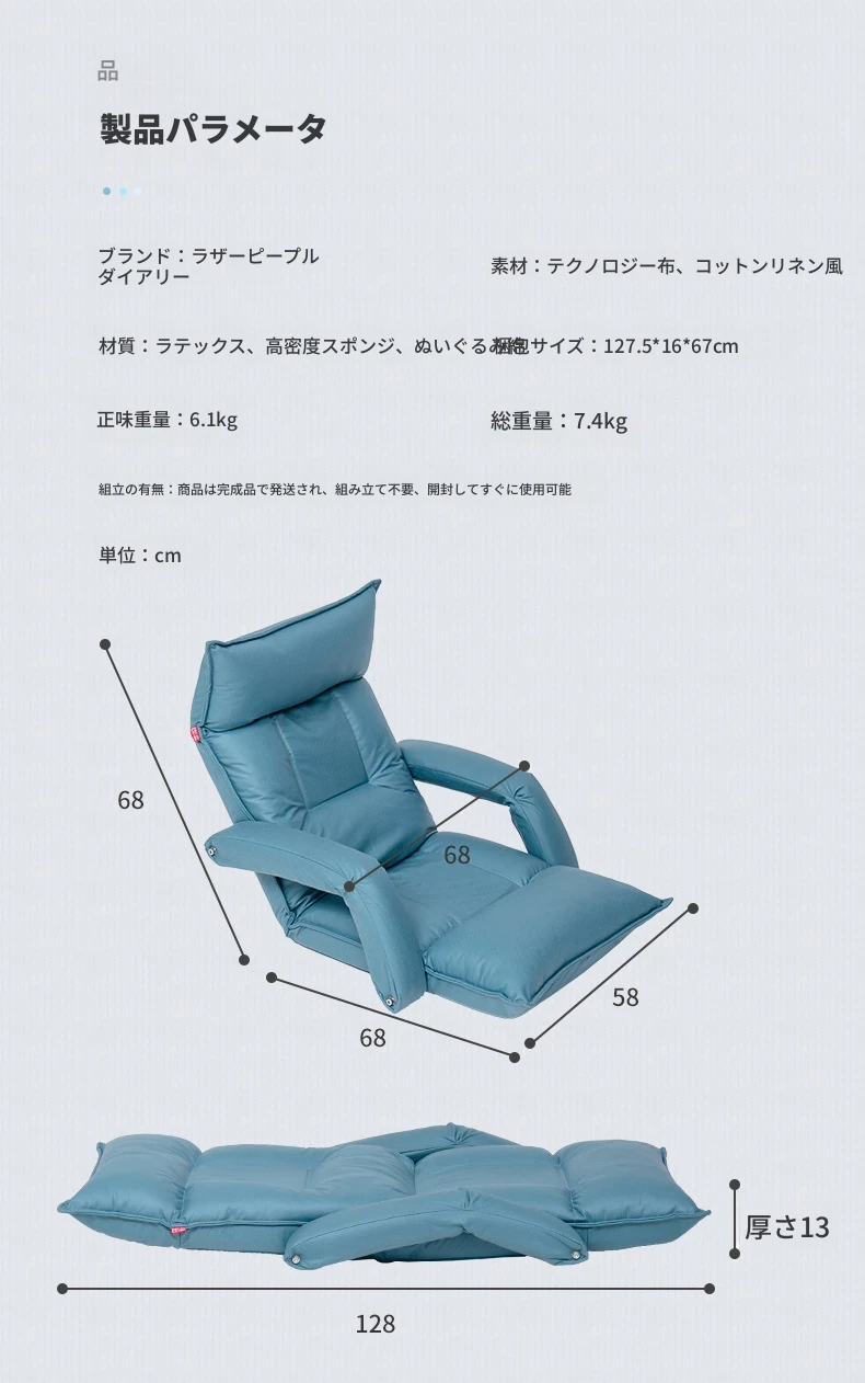 洗濯不要!ふわふわの布製座椅子、折りたたみ式のラザソファ、畳スタイルでリラックス!どんな空間にもフィットし、心地よい座り心地を実現。自宅で手軽にくつろぎの時間をお楽しみください。