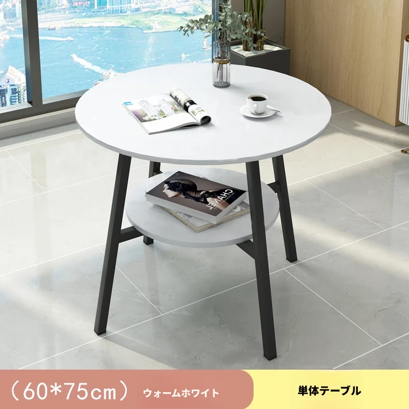 二重構造の洽談用ラウンドテーブル - リビングルームやバルコニーに最適なカフェテーブル!60センチのコンパクトサイズで、ホテルや簡易な2人用のベッドルームにもぴったり。お茶を楽しむ特別なひとときを提供します。