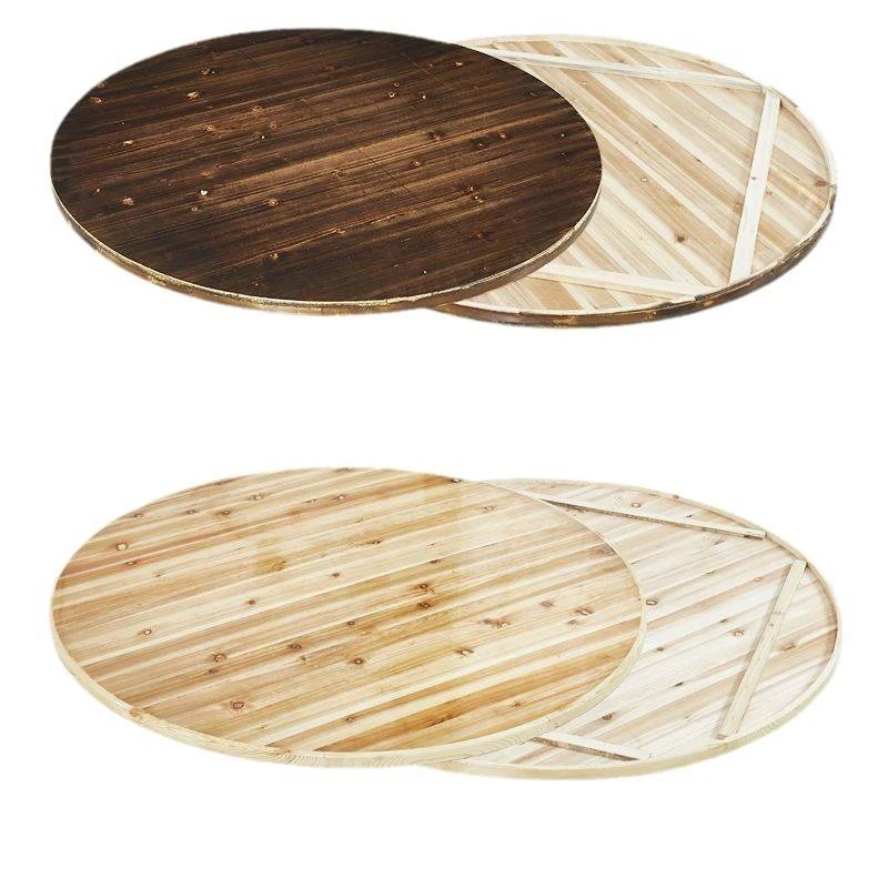 厚手の大判天然木製ラウンドテーブル - 家庭やホテルに最適な杉の木製テーブル天板、強化されたデザインで耐久性抜群!おしゃれで使いやすい回転テーブル。